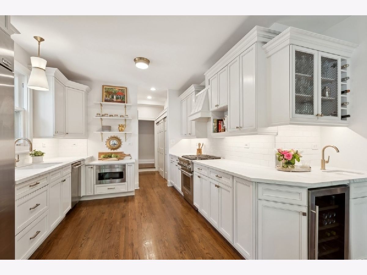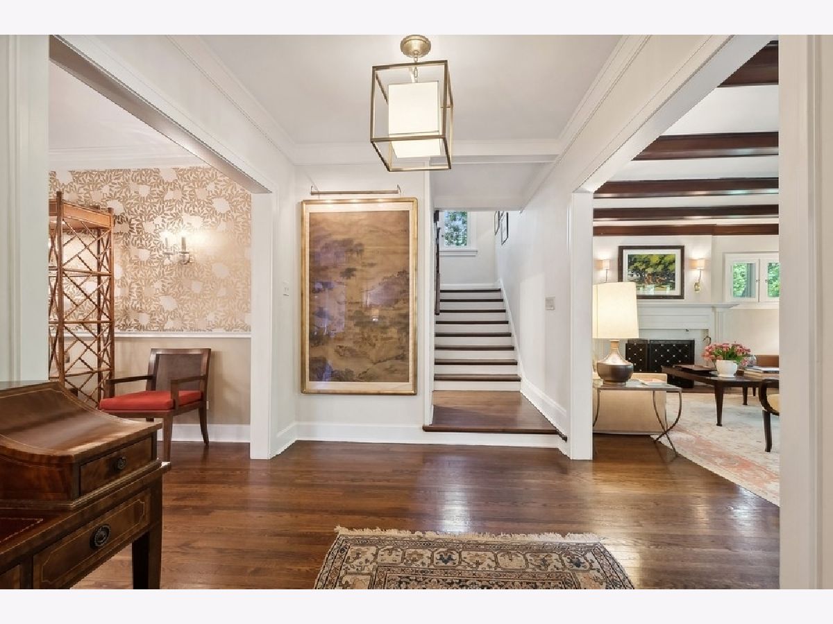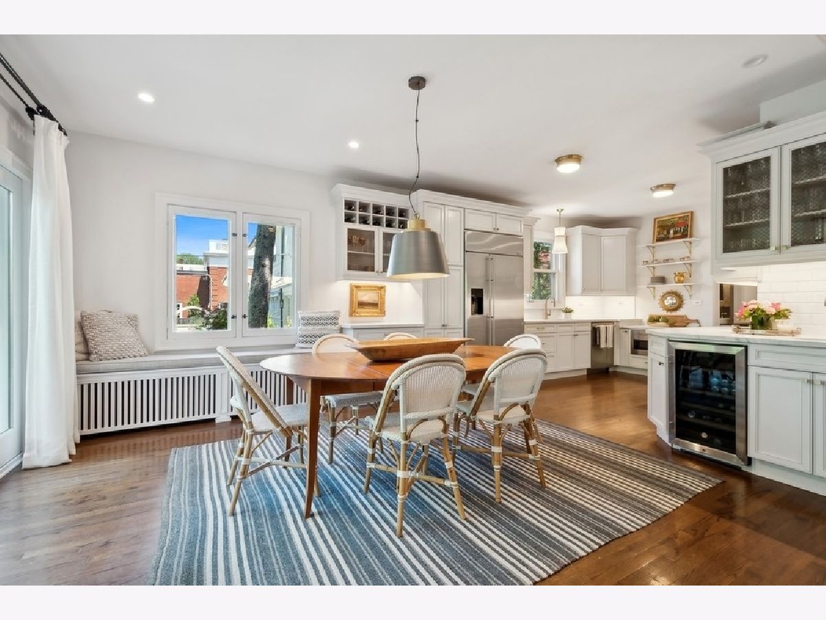 Combining classic elegance with modern conveniences, this South East Evanston gem is steps from Lake Michigan and Lee Street Beach making it a wonderful family home! Upon entering, you are welcomed into the gracious foyer with hardwood floors throughout and an open floor plan making this home perfect for entertaining. The living room, with one of the home's three wood burning fireplaces, has beautiful windows and French doors that lead to the outdoor porch. The dining room has a wood burning fireplace. The gourmet eat- in kitchen includes custom cabinets, Carrara marble counter tops and wet bar. Adjoining the kitchen is the family room with a built-in bookcase and a wood burning fireplace. The Second floor has a gracious primary suite with double vanity, shower and walk in closets. Three additional bedrooms, full bathroom, and laundry. Third floor has two bedrooms, office, and full bathroom. Basement is unfinished but freshly painted and with good ceiling height, laundry, loads of storage and utility room. Professionally landscaped yard includes deck, patio area, outdoor shower and fully fenced. Two car garage. This home is ideally situated, walk to train, schools, restaurants, and shops.