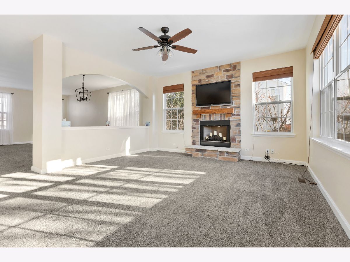Beautiful McIntosh model by Town & Country Homes located in Huntley's desirable Cider Grove subdivision. This 4-bedroom, 3.5-bath home offers scenic views with no homes directly in front and a side-load garage. The open floor plan welcomes you from the charming front porch into formal living and dining spaces with 9' first-floor ceilings, recessed lighting, and abundant natural light. The living room features a gas fireplace, while the gourmet kitchen showcases a large island, 42" upgraded cabinetry, a walk-in pantry, and stylish finishes. Upstairs includes a spacious loft, an oversized laundry room, and a generous primary suite with a large walk-in closet and spa-like bath. The finished basement offers a kitchenette, full bathroom, and ample storage. 2025 updates include a kitchen remodel with quartz countertops and backsplash, new stainless steel appliances, updated lighting, fresh paint, new window treatments, a new garage door, and a new furnace. Additional highlights include a fenced yard, a stamped concrete patio with a pergola, and a new patio door (2021). Prime neighborhood location with access to Cider Grove's clubhouse and fitness center. One-year home warranty included.