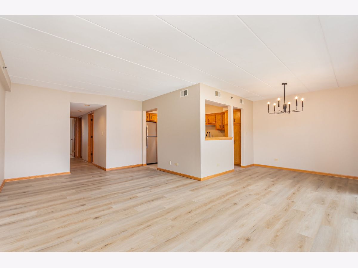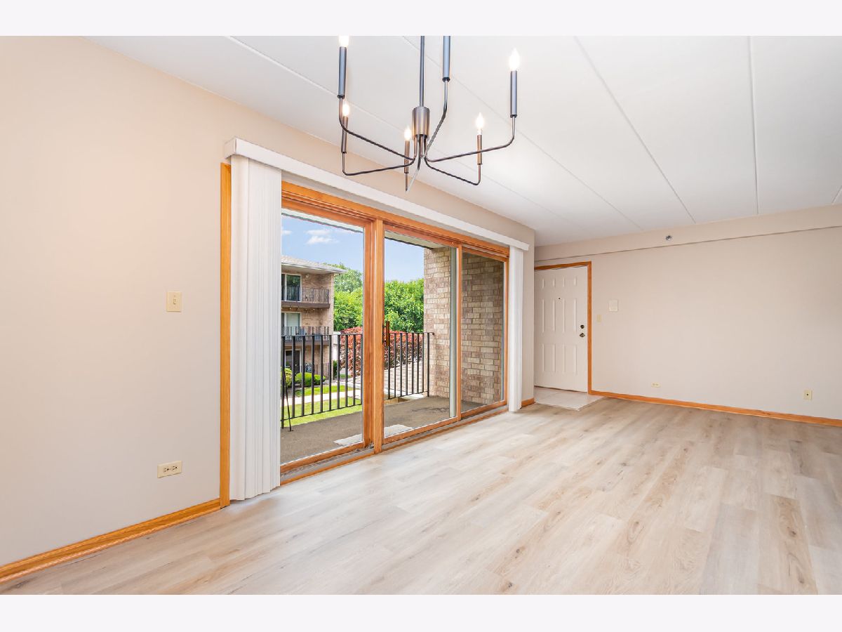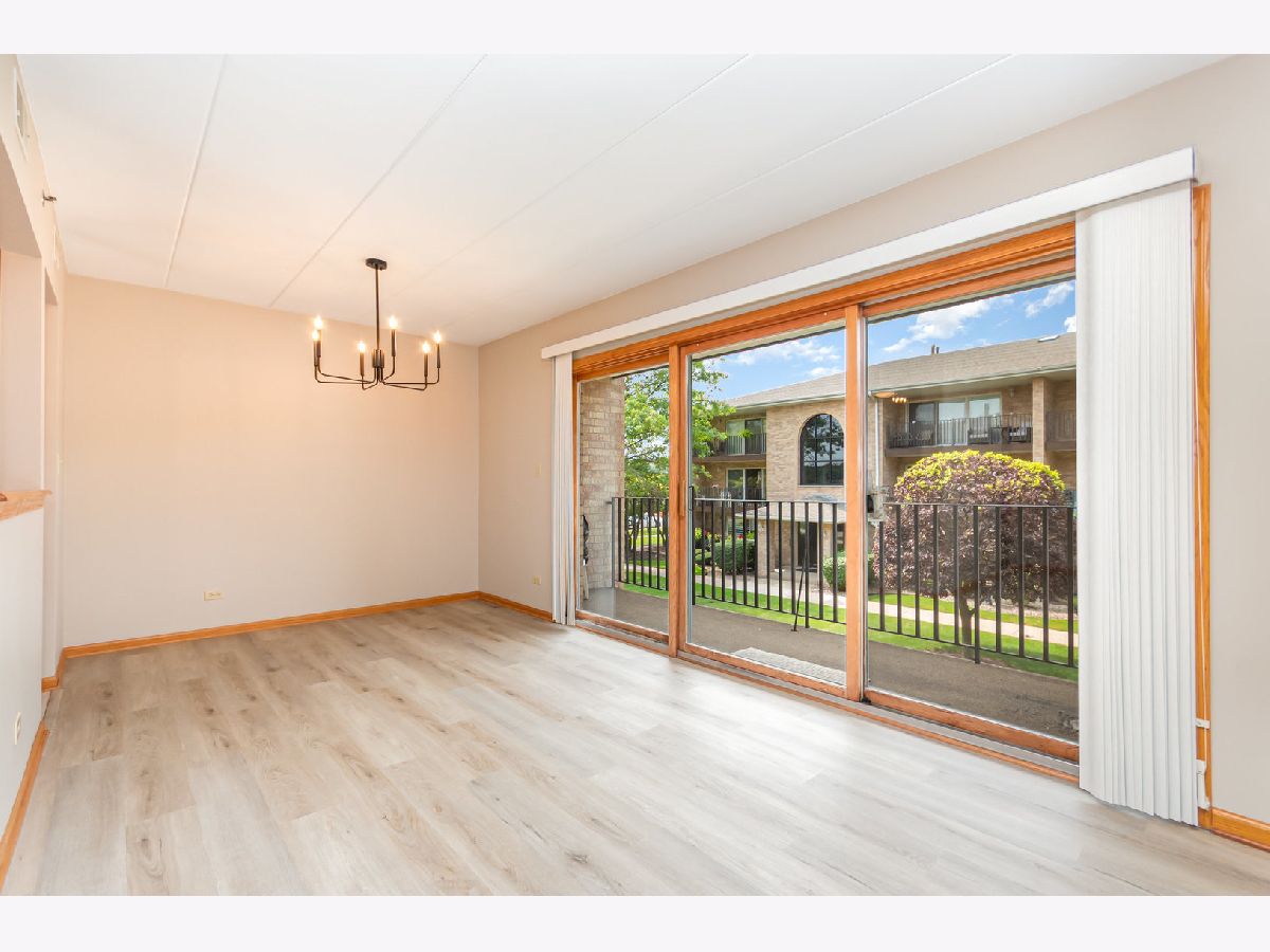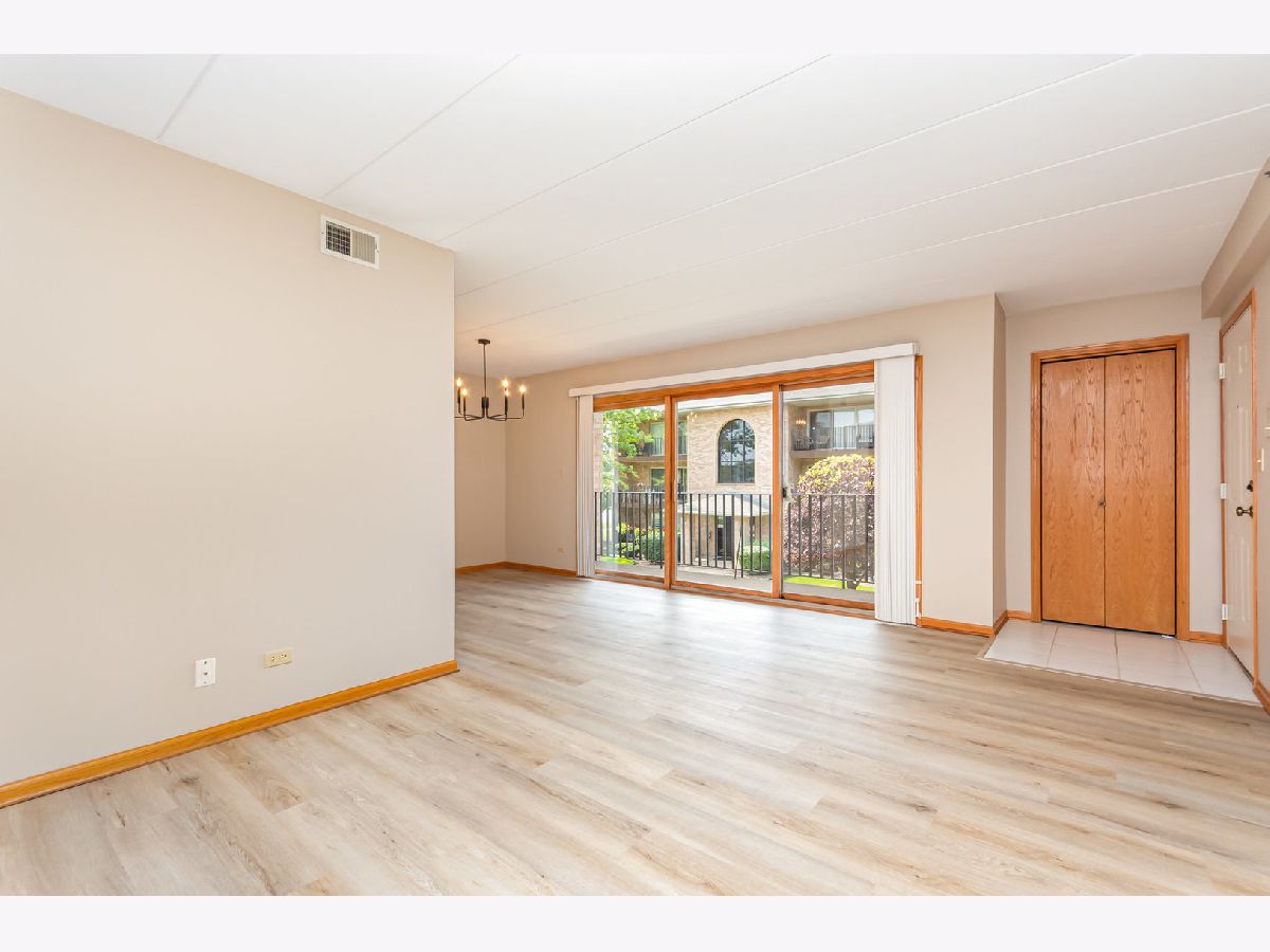 Here's the one you've been waiting for! Very spacious second floor unit with 2 bedrooms and 2 bathrooms in much desired Timber Falls. New additions include fresh paint throughout, new flooring in living room, dining room, and laundry room. New appliances in kitchen as well as new sink, faucet, light fixtures, and cabinet handles. Bathrooms feature new vanity in hall bathroom, new lighting and mirrors in both bathrooms and new faucet. Both bedrooms have brand new windows. Both bedroom carpets have been professionally deep cleaned. Master bedroom has its own bathroom as well as a second closet. Washer/dryer are 1 year old. Enjoy the convenience of a nice sized in-unit laundry room that includes a second door that leads to your private 1 car garage. All appliances included. Relax and enjoy peaceful views from your large private balcony. Very clean and well-maintained building. Close to shopping, train, interstate, parks and restaurants. Condo is not FHA eligible. No rentals allowed.