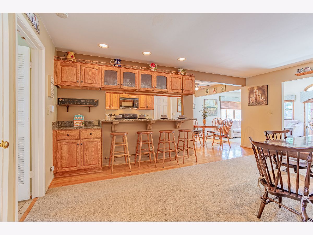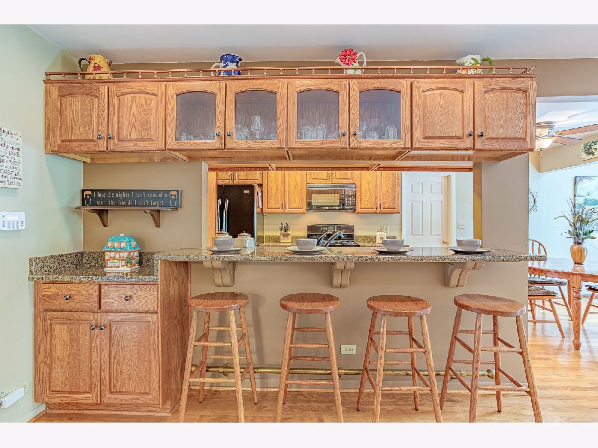 Well maintained and loved by long time owner. The entertainment home of your dreams is nestled on a quiet street with great curb appeal. Four bedroom, 2 full bath home with master bedroom/home office/workout room on the main level with a full bath. Updated, open floor plan kitchen with hardwood floors, granite, large eat in table area plus seating for 4 at the large breakfast bar and private butler station. Three large private bedrooms on second level - all with lots of closet space plus second full bath. Large Great Room Addition with brick fireplace, sky light and sliding door to a backyard oasis with beautiful views to a tranquil garden haven. Large beautiful deck with room for patio set and swing to watch beautiful sunrises or sunsets. Large Shed. Two car garage with work room. Close to all major expressways, library, award winning park district and schools. Lots to love!