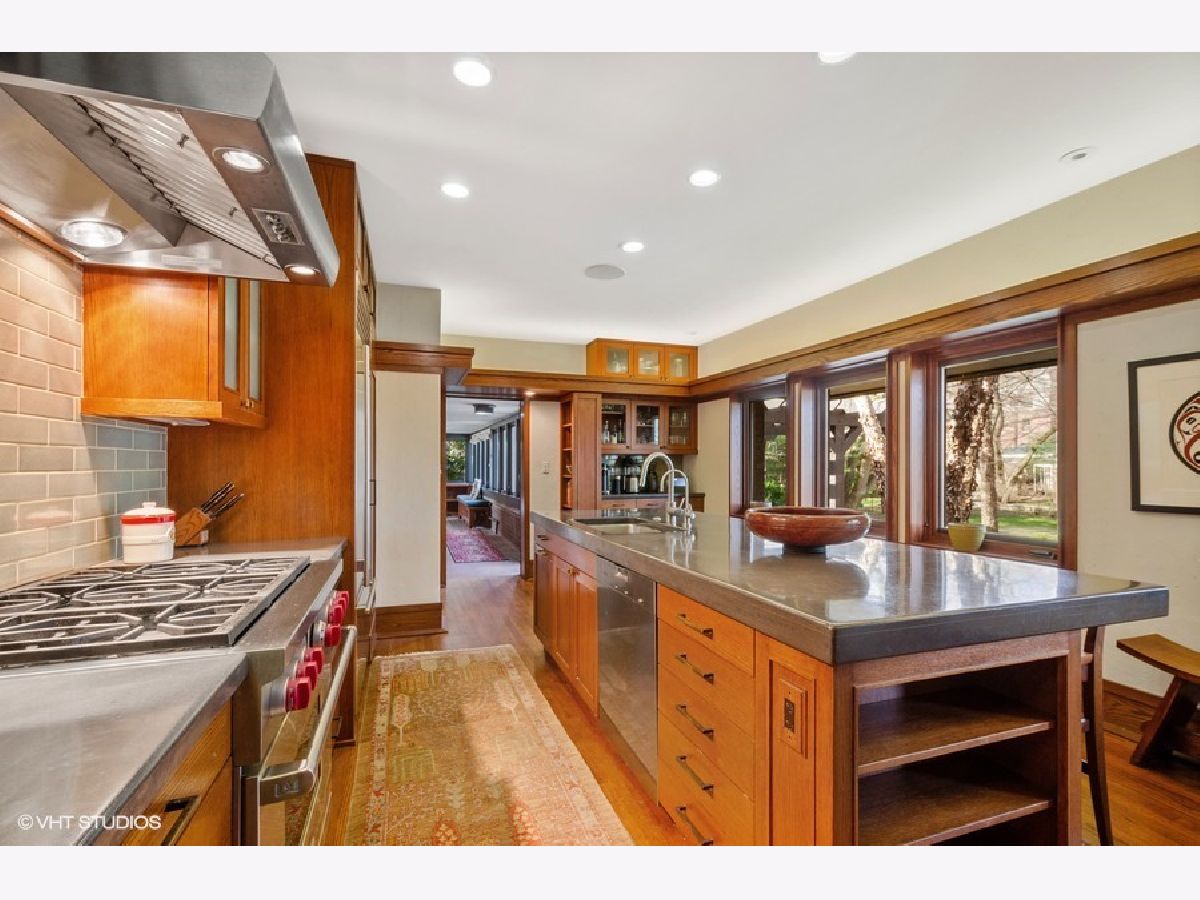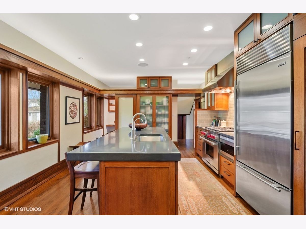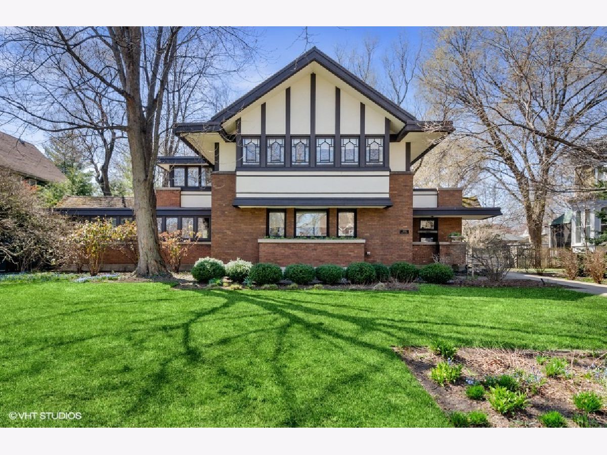 Architectural landmark and one of the most distinctive homes in South East Evanston. Listed on the National Register of Historic Places, this house, known as the Carter House, was designed in 1910 by architect Walter Burley Griffin and is a recognized leading example of Prairie School architecture. The home has been completely restored with exquisite attention to detail, preserving the character of the home while adding modern conveniences. The first floor features a large living room with huge wood burning fireplace, built-in benches and bookshelves. The dining room has marvelous built-in cabinets. Prominent oak soffits with indirect lighting tie all the rooms together on the first floor. The family room, originally built as an open veranda, has beautiful windows and heated tile floors. The kitchen includes high end appliances, custom oak cabinets, concrete countertops, and wonderful views of the backyard. Architect-designed office space off the kitchen. The light-filled second floor has four bedrooms and two full beautiful bathrooms. The primary suite comprises three rooms: large bedroom, office, and bathroom. Lower-level features mudroom, recreation/exercise room, spacious laundry, workshop, and lots of storage. The home sits on an expansive double lot with beautifully landscaped yard, patio, and tree house. The amazing coach house sits above an unbelievable heated four-car garage and includes sitting room, open kitchenette, bedroom, full bathroom and balcony over the backyard. Truly a special home just a short walk to the beach, train, restaurants, and shops.