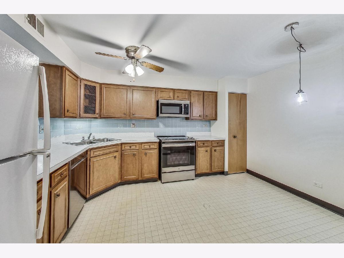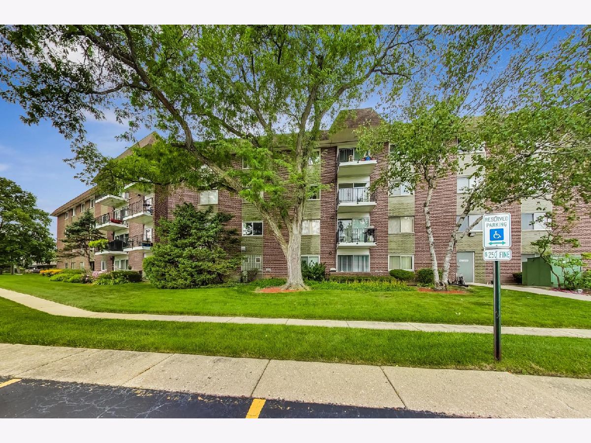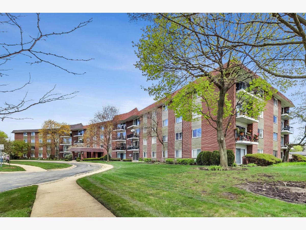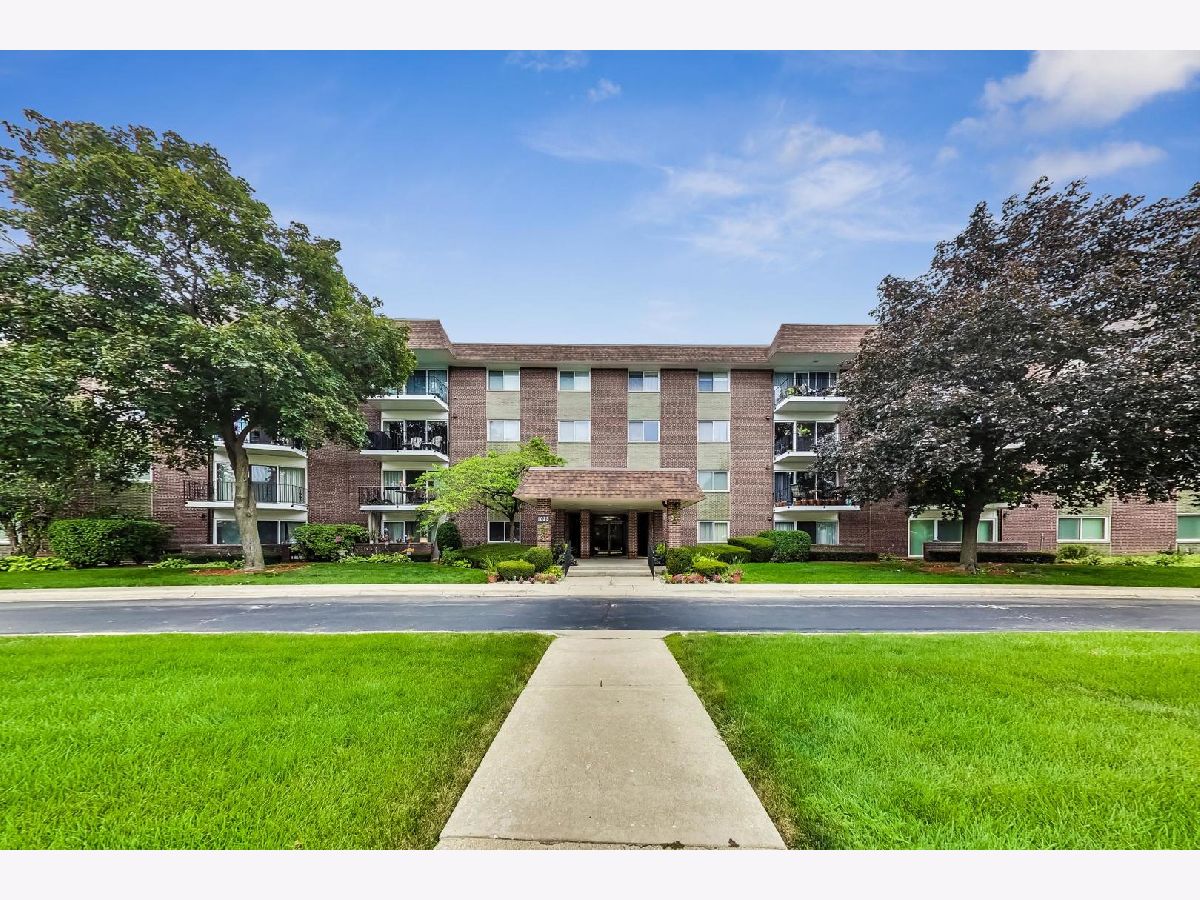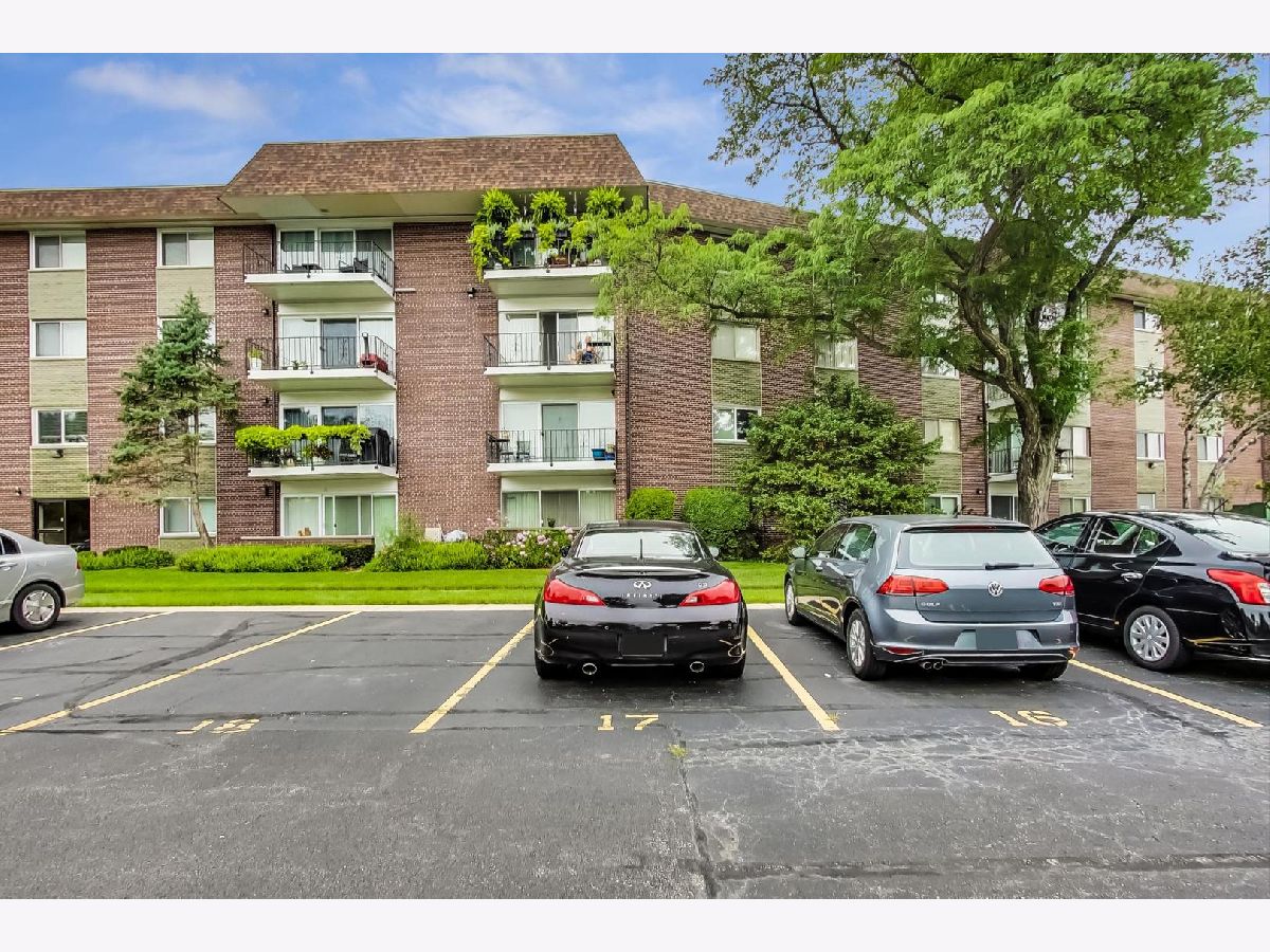 Spacious one bed, one bath 3rd floor unit in Elevator building. Eat-in kitchen features new Stainless Steel Stove, Microwave and Dishwasher, table space and pantry for storage. Huge living area with balcony perfect for grilling. Primary bedroom with wall-to-wall closets will easily accommodate a king-size bed and furniture. New carpet, newer windows and updated lighting. One assigned exterior parking space, #17, and storage unit in Garage building, #3G. Building amenities include coin laundry and secure entry. Ideal location in a quiet residential neighborhood. Minutes to downtown Arlington Heights with Alfresco dining, shops, restaurants, parks, entertainment, library, and Metra station! No rentals or pets.