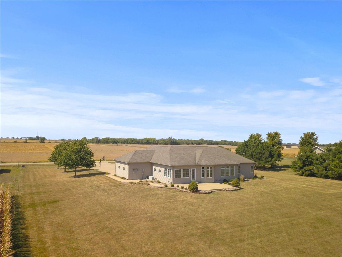 Do you want the perks of being close to town but not in town? Check out this beautiful 4 bedroom ranch right on the edge of El Paso that sits on 2 acres. Sitting deep within the lot, there is a long concrete driveway for plenty of parking and a basketball court. Upon entering the home, you will notice the brick exterior and lovely landscaping. Coming into the foyer, you have an office off to the left that could be a 5th bedroom if needed. To the right is the formal dining room. The large living room has tons of natural light and leads into the kitchen where you will find custom Amish cabinetry, a large island, and a breakfast nook. To sip your morning coffee, come on into the sunroom that looks into the large backyard. With 2 acres, you will need some toys, and what better than a huge 1400sq ft heated garage to store all of them! Off of the garage is the laundry room with a large sink. On the other side of the house, you'll find the two bedrooms. The master offers large closets. The master bathroom, has his and her sinks, a jacuzzi tub and separate shower. In the basement are two large bedrooms ,one with a walk in closet and the other that has two. There is a Jack and Jill bathroom. in between them. The egress windows offer steps for easier exit. The enormous family room has so many possibilities! If you are needing an extra room for crafts, there is a 11x10 room off of the family room. The utility room has the water heaters for the Geothermal system and the heated floors in the garage. The storage room is so large, you can even use it as a gym! There is a whole house generator as well.