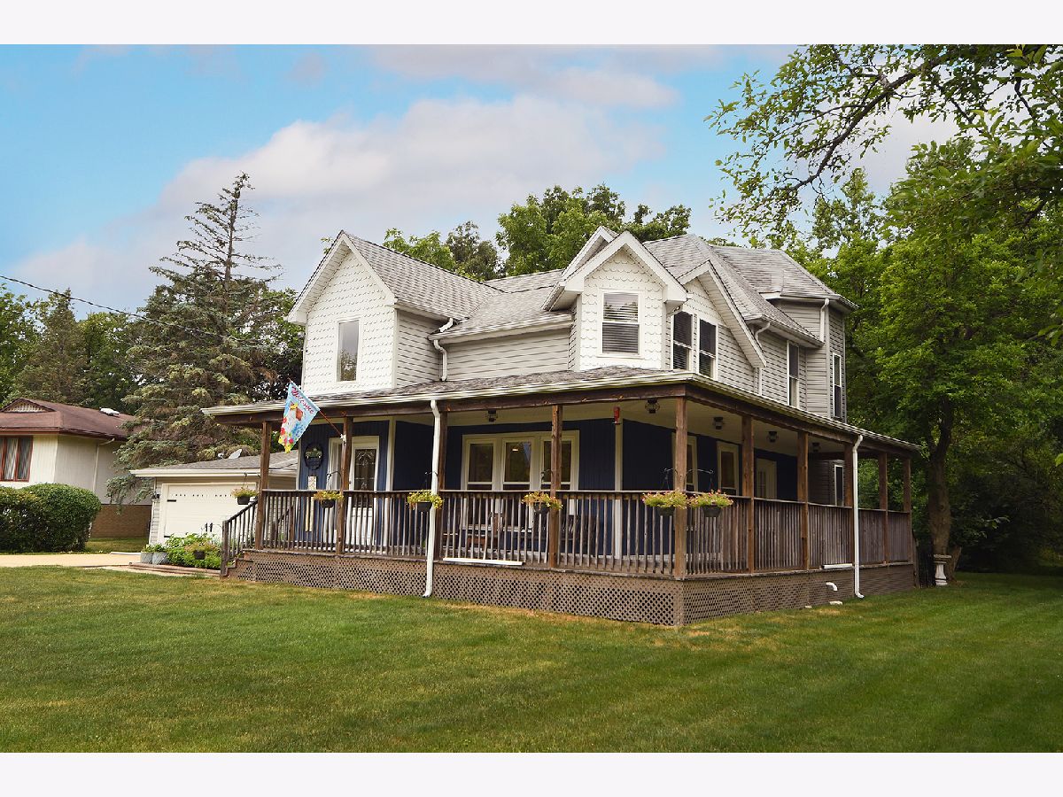 Wonderful opportunity to own this historic, 1890's Olympia Fields farmhouse on almost 3/4 of an acre located near the mature trees and winding trails of Elliot Woods and Spirit Trail Park. The owners believe the home was rehabbed roughly around 2008, before they owned the home. Yet, the charm of yesteryear permeates including the outside fish scale accent and welcoming, old-world, covered wrap-around porch. Entering the front door into the foyer opens you to a lovely, well-sized 18ft living room with can lighting, plenty of windows, hardwood flooring, and 6-inch ornate baseboards. Move seamlessly into the formal dining room with more hardwood floors, can lighting, 9ft ceilings, and bayed triple-window. The huge 21ftx14ft country kitchen will not disappoint with its 42-inch maple cabinetry, Brazilian cherry floors, breakfast bar island, sleek black appliances, and sliding glass door to a huge 16ftx12ft deck overlooking gorgeous, endless greenery. The first-floor half-bath is updated nicely with a comfort-height vanity and attractive glass-tile backsplash. The 2nd floor presents 3 well-sized bedrooms including a master bedroom with walk-in closet and bayed window, bedroom #2 with hardwood floors and double-closet, and a large bedroom #3 at 14ftx14ft. The full bath has gorgeous granite flooring and shower-surround as well as a whirlpool tub. Shall we keep going? For the adventurous buyer, how about a 38ft long walkable 3rd floor attic for storage with a 17ftx15ft area to maybe finish for an office? But the real treat is your huge front and backyards with many beautiful plantings and vegetable/fruit gardens. Walk to the back of your property on the bluff to see the creek and pond below and then enjoy a nice fire at the stone firepit, perhaps a quiet talk at your carved-log picnic benches, or even a swing on "the ol' tire" hanging from these huge trees' limbs! A few other notes include newer windows throughout, newer roof, 2 furnaces & 2 central A/C units (zoned for efficiency), a 2-car garage with concrete driveway, and located just minutes from the Metra. Come see this beautiful home and its stunning lot. You won't be disappointed!