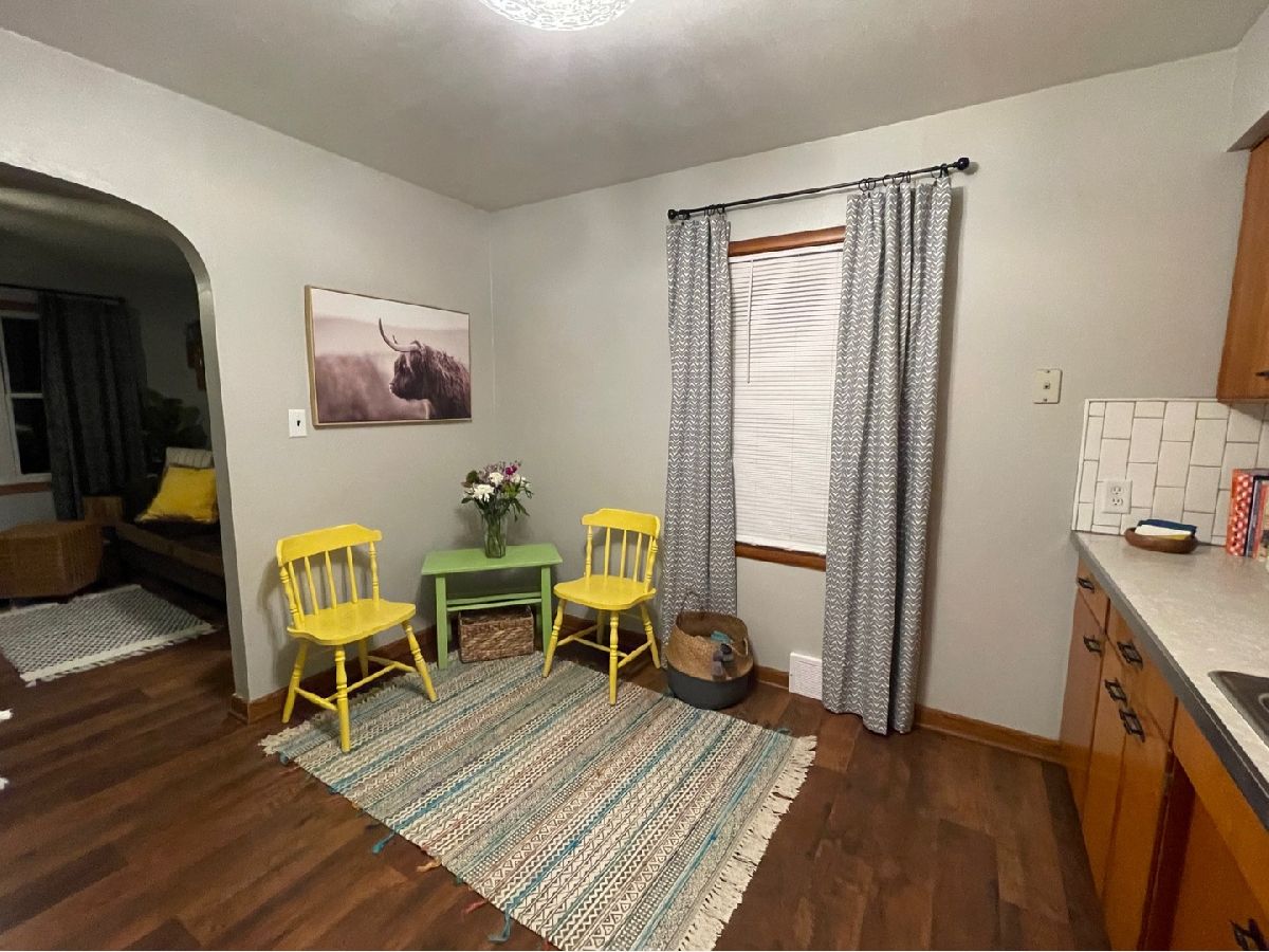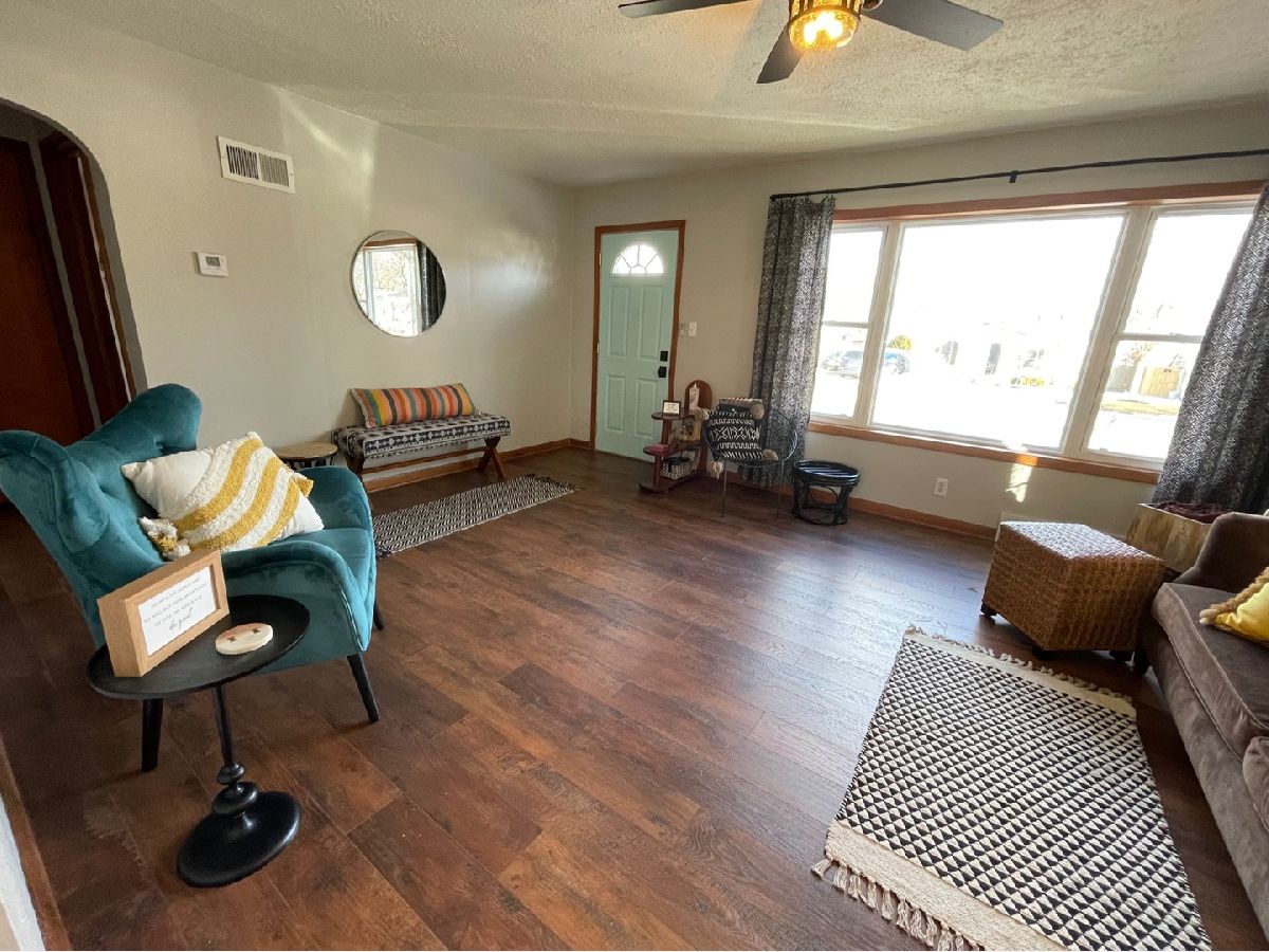 MULTIPLE OFFERS RECEIVED, HIGHEST AND BEST DUE BY 6PM 3/14/2022. The home you have been waiting for! Cute and modern updated move-in ready ranch close to downtown Sycamore & Southeast School. Beautiful eat-in kitchen with full subway tile wall and backsplash & plenty of cabinet space. Large living room with tons of natural light. Two good sized bedrooms, plenty of closet space, and almost all new windows. Laundry room with washer/dryer and large pantry cabinet, plus command center, coat hooks & new shelf. Awesome size back yard and 1.5 car garage with alley access. ALL NEW in 2020: all wood laminate flooring, light fixtures, bathroom vanity & flooring, kitchen faucet, central air, cold water purification system, water heater, some door hardware, front landscaping incl. wood shutters, and interior and exterior of house and garage painted. Furnace was moved to attic to make more room in Laundry room and serviced March 2022. Don't wait, make your appointment today! Broker Owned.