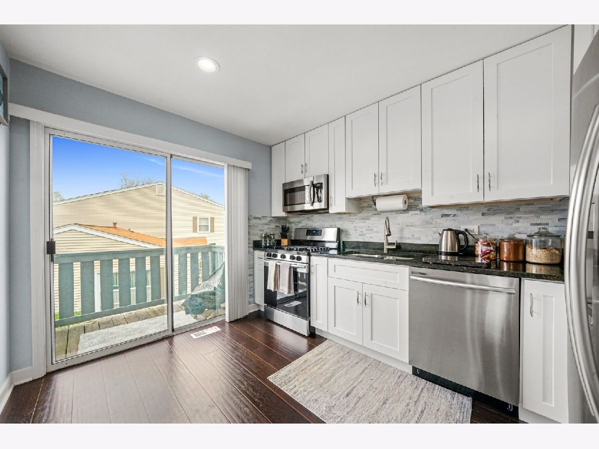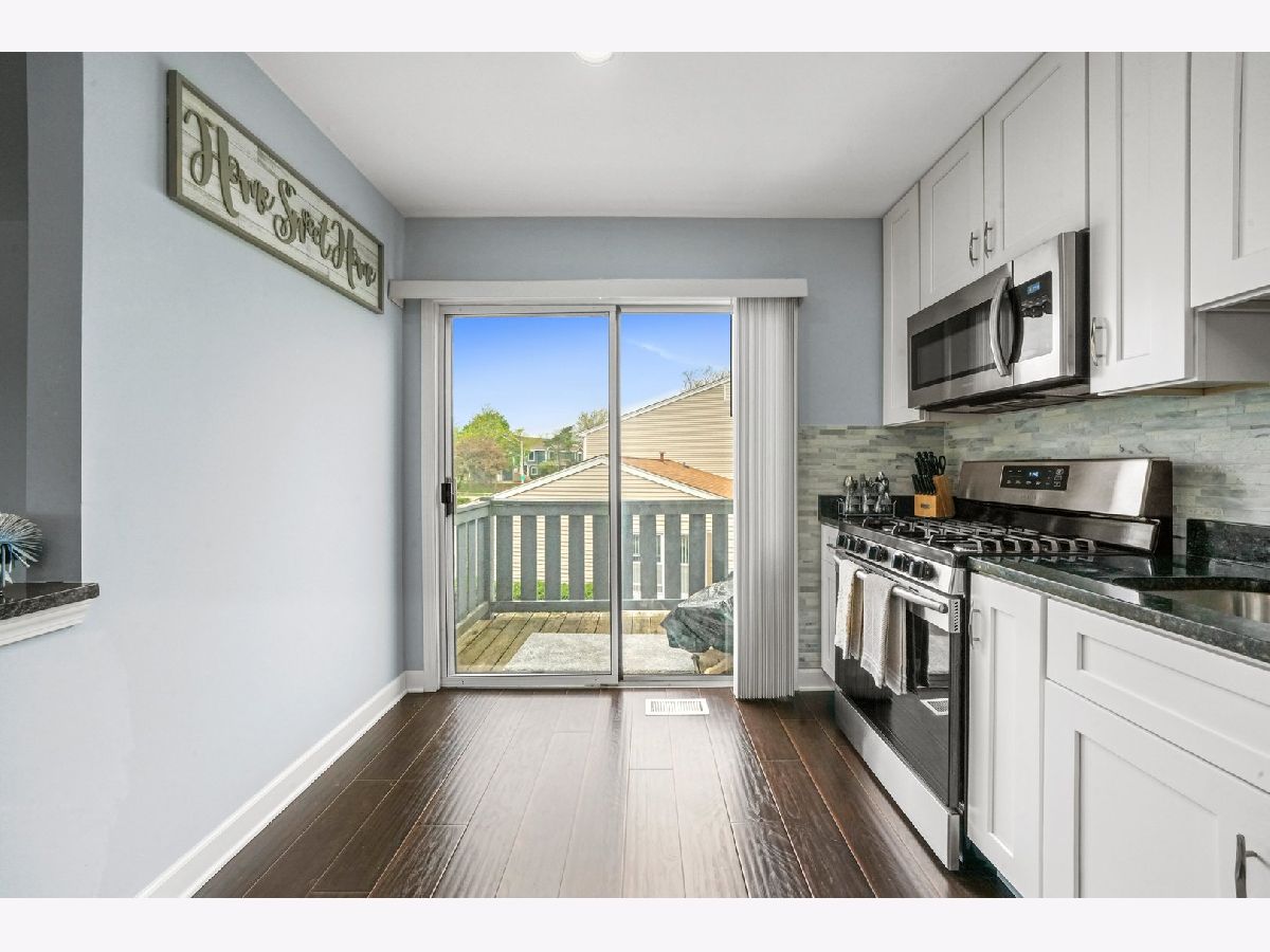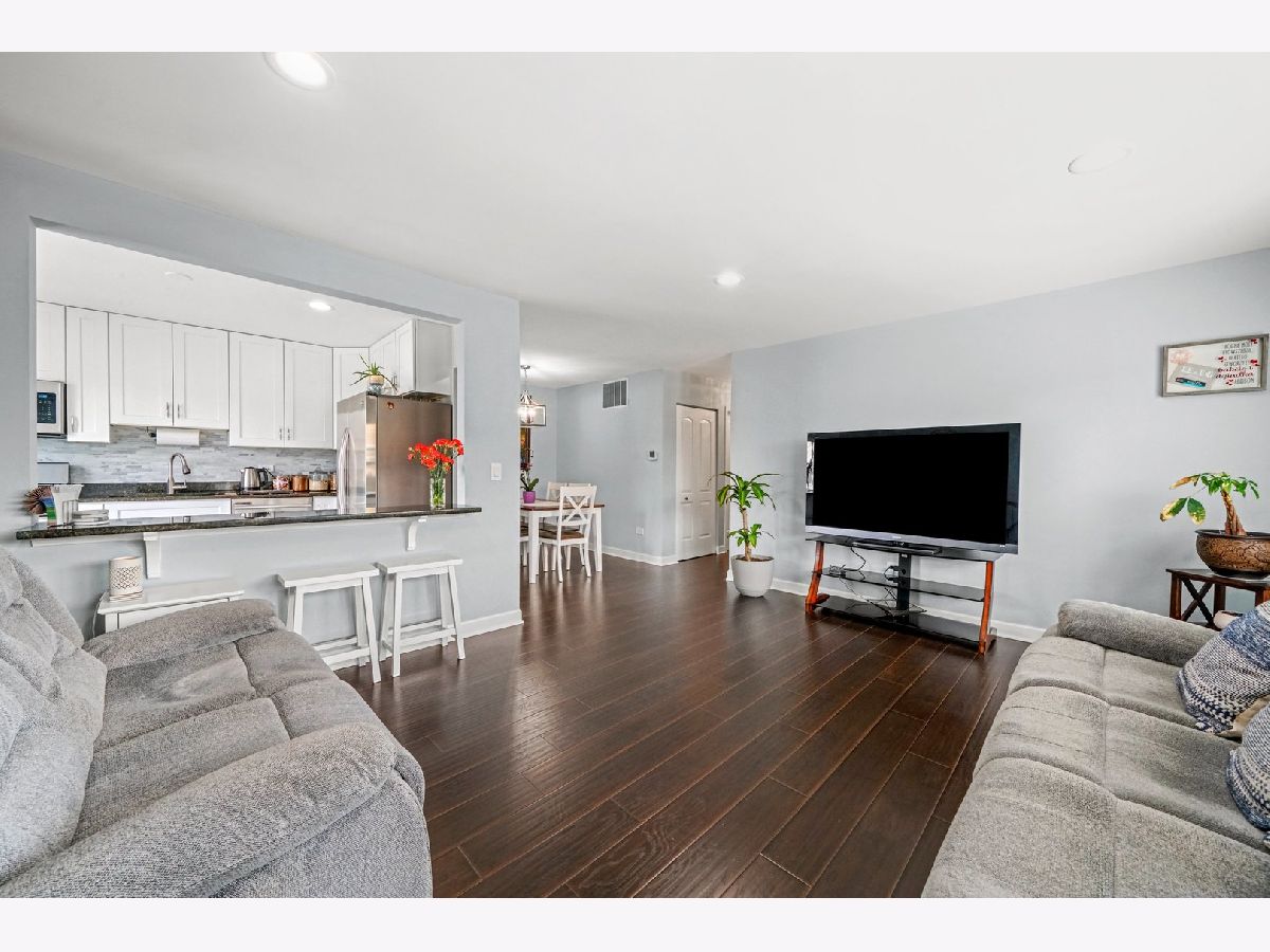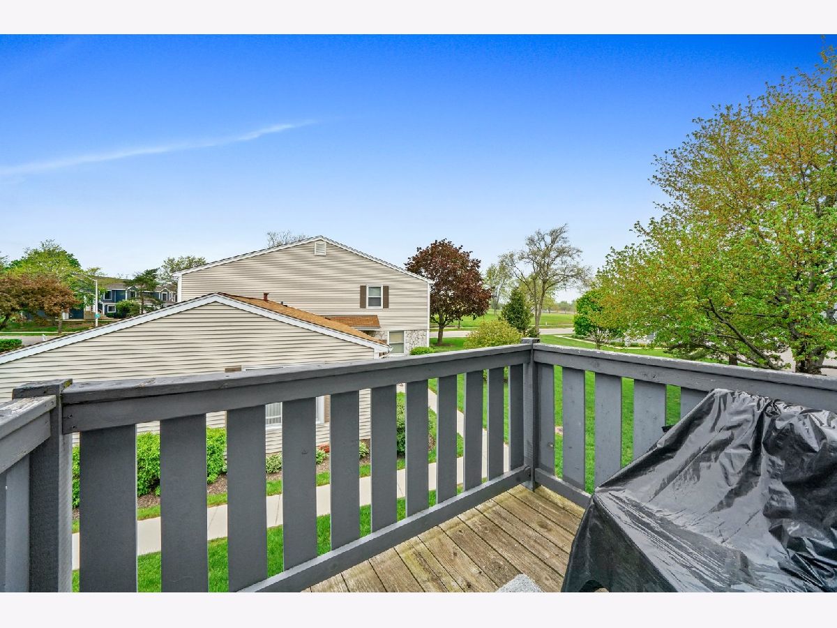 Gorgeous, completely updated penthouse in a marvelous location! So much has been done recently, including: new kitchen cabinets, granite counters and breakfast bar, stainless steel appliances, 2-panel doors, porcelain tiled bath, laundry and entrance, trim and baseboards. Hickory hand scrapped laminate throughout the home including a large master bedroom with a spacious walk in closet and a shared bathroom. Located in dist 54 and dist 211, this home faces a lush green space perfect for outdoor festivities! Very well maintained community with a pool for summer fun! Conveniently located near schools, parks, forest preserve, golf courses, shopping, dining, Woodfield Mall, and expressways! Perfect for an owner occupant or an investor! One car attached garage!Private balcony from sliding doors off kitchen. End Unit. WELCOME HOME!!! A/C and Furnace $2020, water heater 2018