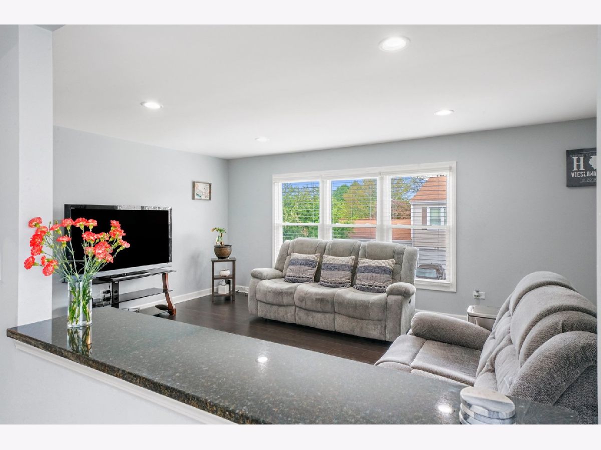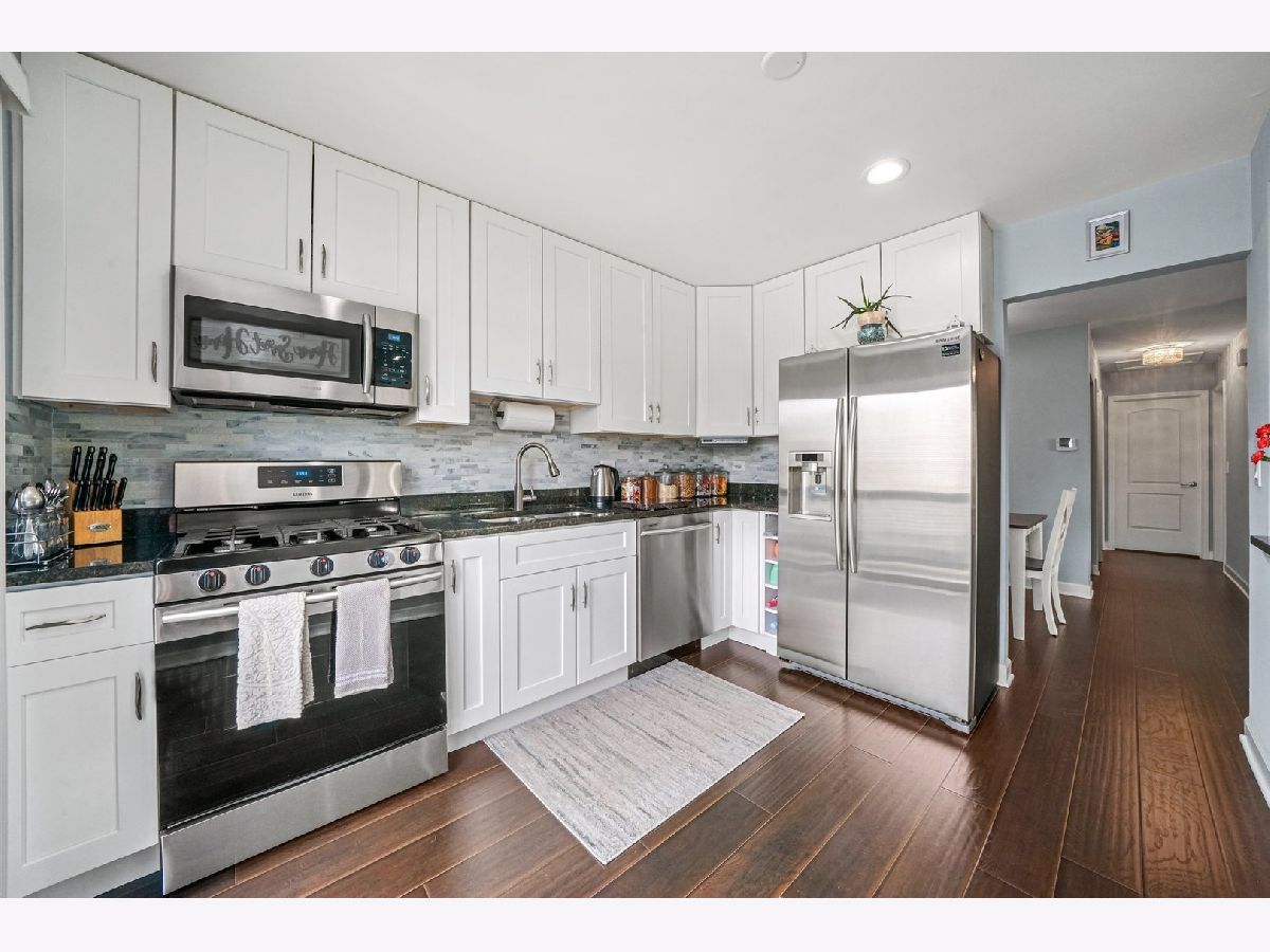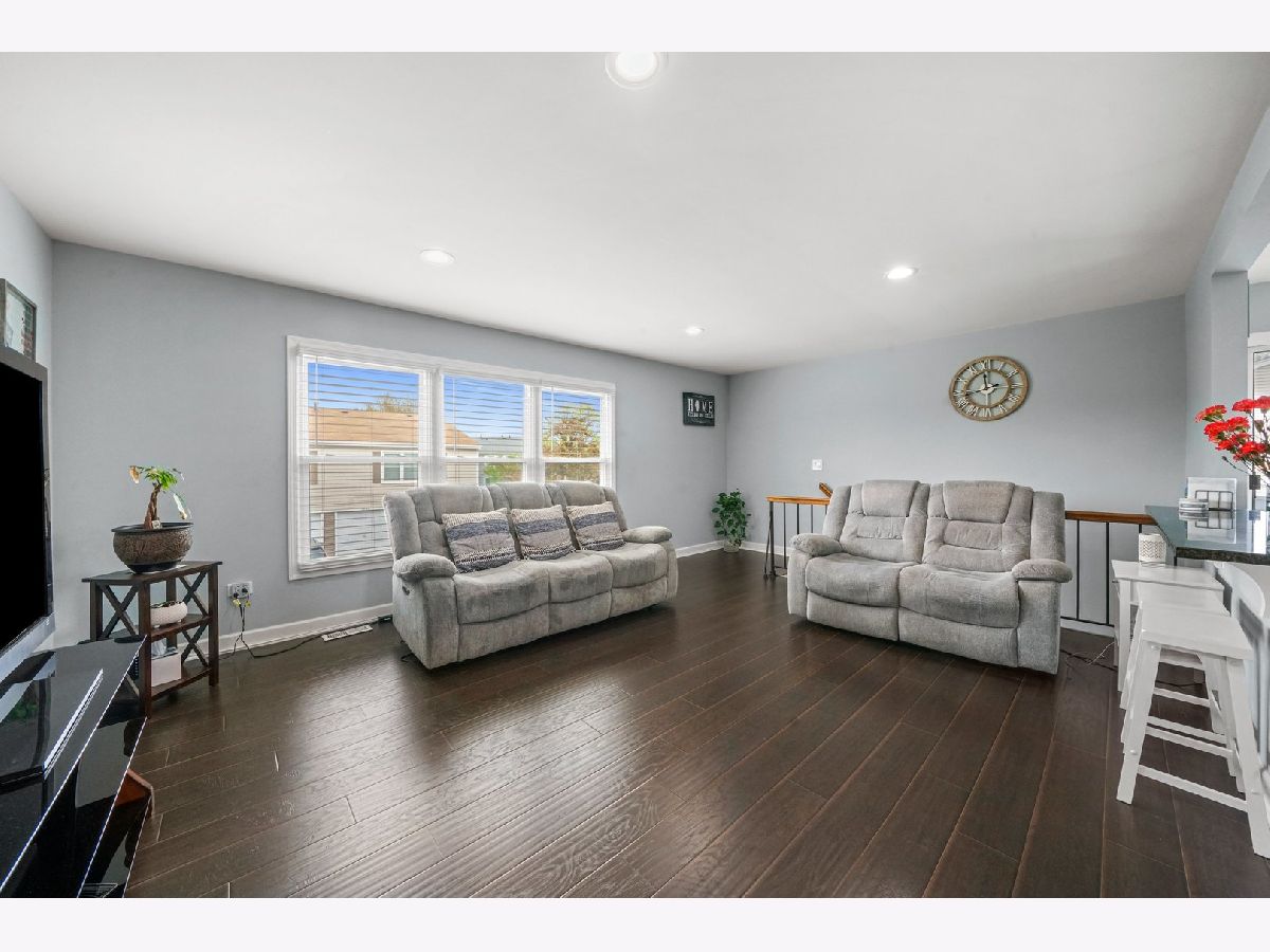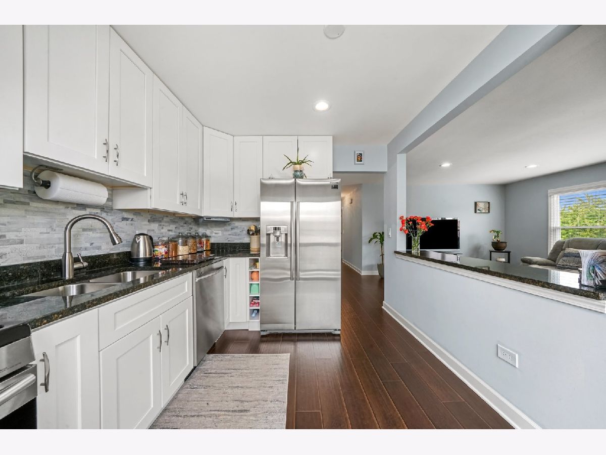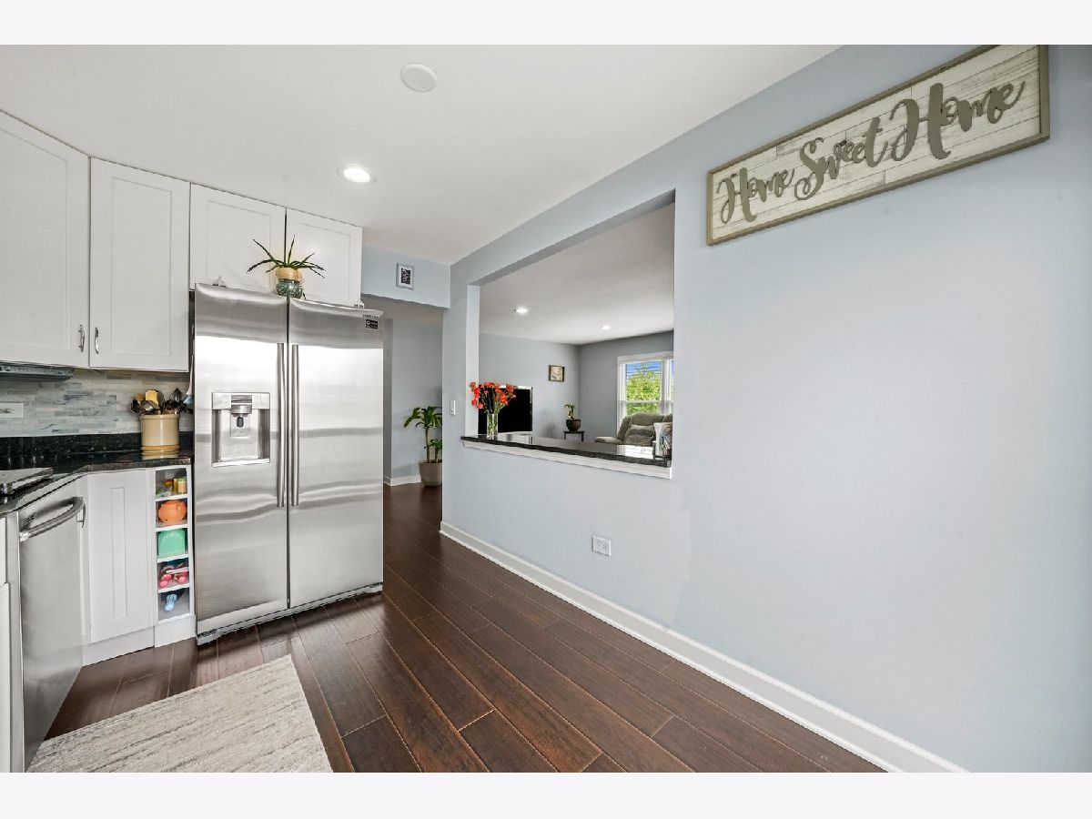 Gorgeous, completely updated penthouse in a marvelous location! So much has been done recently, including: new kitchen cabinets, granite counters and breakfast bar, stainless steel appliances, 2-panel doors, porcelain tiled bath, laundry and entrance, trim and baseboards. Hickory hand scrapped laminate throughout the home including a large master bedroom with a spacious walk in closet and a shared bathroom. Located in dist 54 and dist 211, this home faces a lush green space perfect for outdoor festivities! Very well maintained community with a pool for summer fun! Conveniently located near schools, parks, forest preserve, golf courses, shopping, dining, Woodfield Mall, and expressways! Perfect for an owner occupant or an investor! One car attached garage!Private balcony from sliding doors off kitchen. End Unit. WELCOME HOME!!! A/C and Furnace $2020, water heater 2018