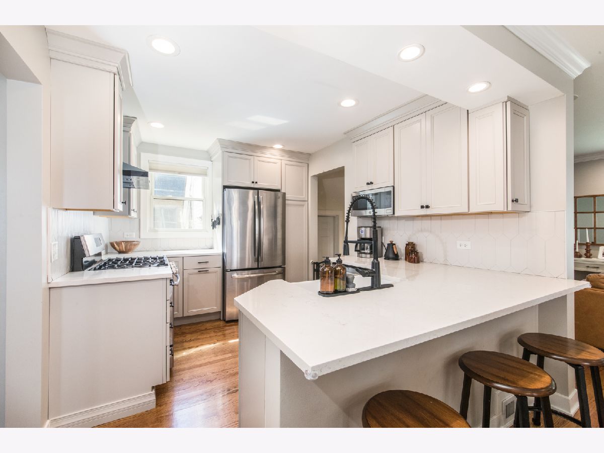 Come check out this beautifully updated Cape Cod conveniently located near award winning schools, parks, shops, and the Metra. Sun filled living room with bay window, fireplace, and an open concept layout. Hardwood floors throughout the main level. Primary bedroom with en suite bathroom, immaculate kitchen with stainless appliances and quartz counter tops, new roof installed last year, and large backyard with storage shed. Lower level offers a spacious family room with clean looking luxury vinyl flooring and perma-seal water guard. Large finished storage space on top of the garage. *Agent owned home*