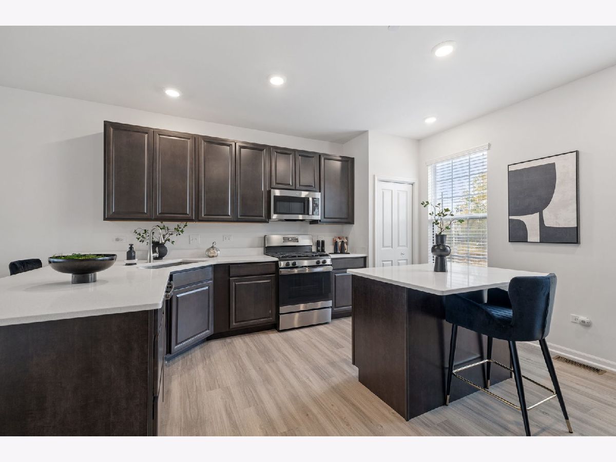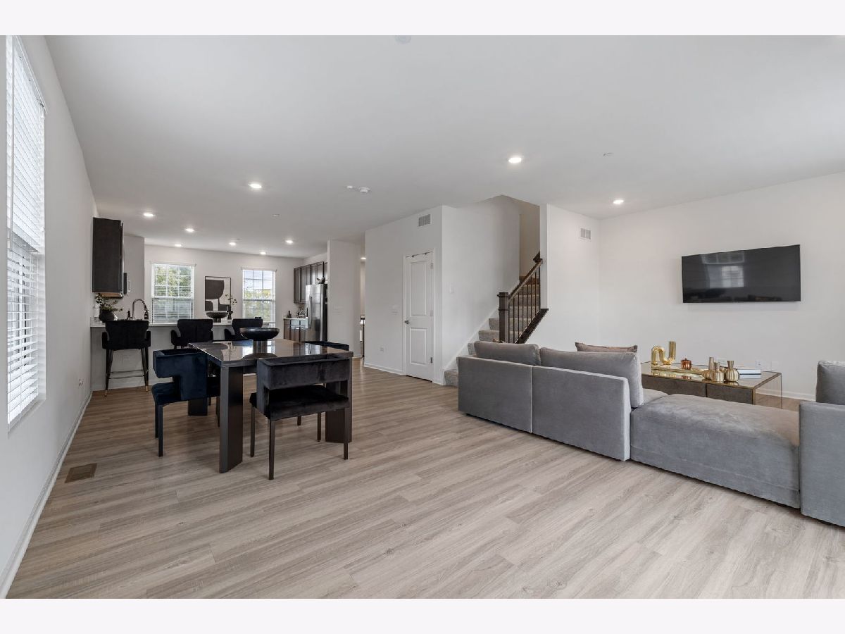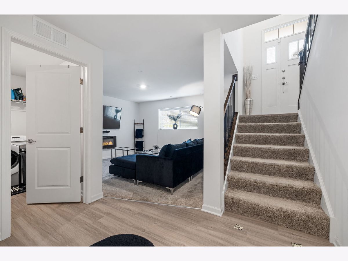 This highly sought-after end-unit townhome offers over 2,000 square feet of thoughtfully designed living space, flooded with natural light from multiple exposures. Better than new, it features personal touches like custom window treatments and is furnished with a washer and dryer! With three spacious bedrooms, two-and-a-half bathrooms, and a two-car garage, this home combines comfort, style, and convenience in every detail. The lower level includes a versatile finished room perfect for an office, workout space, or guest room, as well as a convenient laundry room. The open-concept main floor provides an inviting space for both entertaining and everyday living, with a spacious living area and a modern kitchen designed to impress. Upstairs, you'll find three generously sized bedrooms, including a luxurious owner's suite with a private bath and walk-in closet. High-end finishes are found throughout, including quartz countertops, elegant single-bowl undermount sinks, Aristokraft cabinetry, kitchen islands, and stainless-steel GE appliances. Quality craftsmanship is evident in the LED lighting, modern two-panel doors, colonist trim, and durable vinyl plank flooring in key areas like the kitchen, foyer, bathrooms, and laundry room. The location is unbeatable, with the Metra station just steps away, making commuting a breeze. Enjoy a variety of shopping, dining, and entertainment options at your fingertips, along with nearby parks and a golf course for outdoor recreation. Additional highlights include smart home technology, featuring the Flo by MoenTM Smart Water Shutoff, MyQ Smart Garage Control, Honeywell Home T6 Pro Z-Wave thermostat, Level Touch invisible smart lock, Ring Video Doorbell Pro, and Ring Alarm Security Kit. Plus, the home includes a garage door opener and 30-year architectural shingles for added peace of mind. Combining luxury, functionality, and modern amenities, this end-unit townhome is ready to welcome you home.