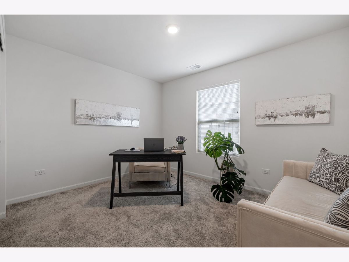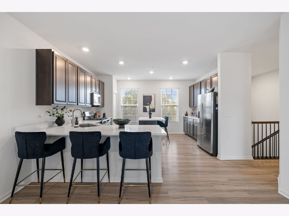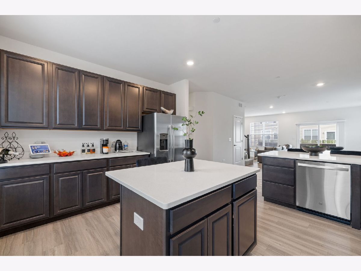 This highly sought-after end-unit townhome offers over 2,000 square feet of thoughtfully designed living space, flooded with natural light from multiple exposures. Better than new, it features personal touches like custom window treatments and is furnished with a washer and dryer! With three spacious bedrooms, two-and-a-half bathrooms, and a two-car garage, this home combines comfort, style, and convenience in every detail. The lower level includes a versatile finished room perfect for an office, workout space, or guest room, as well as a convenient laundry room. The open-concept main floor provides an inviting space for both entertaining and everyday living, with a spacious living area and a modern kitchen designed to impress. Upstairs, you'll find three generously sized bedrooms, including a luxurious owner's suite with a private bath and walk-in closet. High-end finishes are found throughout, including quartz countertops, elegant single-bowl undermount sinks, Aristokraft cabinetry, kitchen islands, and stainless-steel GE appliances. Quality craftsmanship is evident in the LED lighting, modern two-panel doors, colonist trim, and durable vinyl plank flooring in key areas like the kitchen, foyer, bathrooms, and laundry room. The location is unbeatable, with the Metra station just steps away, making commuting a breeze. Enjoy a variety of shopping, dining, and entertainment options at your fingertips, along with nearby parks and a golf course for outdoor recreation. Additional highlights include smart home technology, featuring the Flo by MoenTM Smart Water Shutoff, MyQ Smart Garage Control, Honeywell Home T6 Pro Z-Wave thermostat, Level Touch invisible smart lock, Ring Video Doorbell Pro, and Ring Alarm Security Kit. Plus, the home includes a garage door opener and 30-year architectural shingles for added peace of mind. Combining luxury, functionality, and modern amenities, this end-unit townhome is ready to welcome you home.
