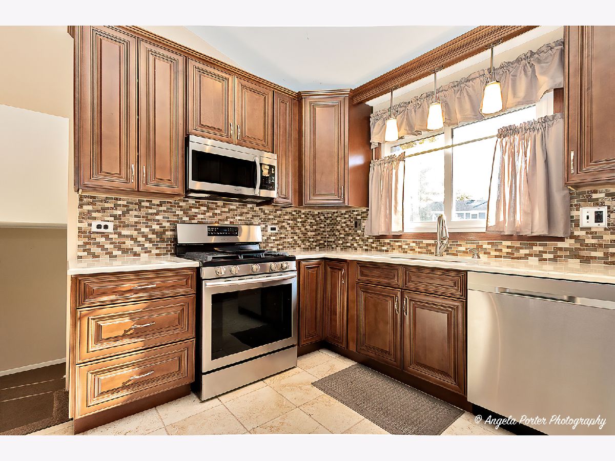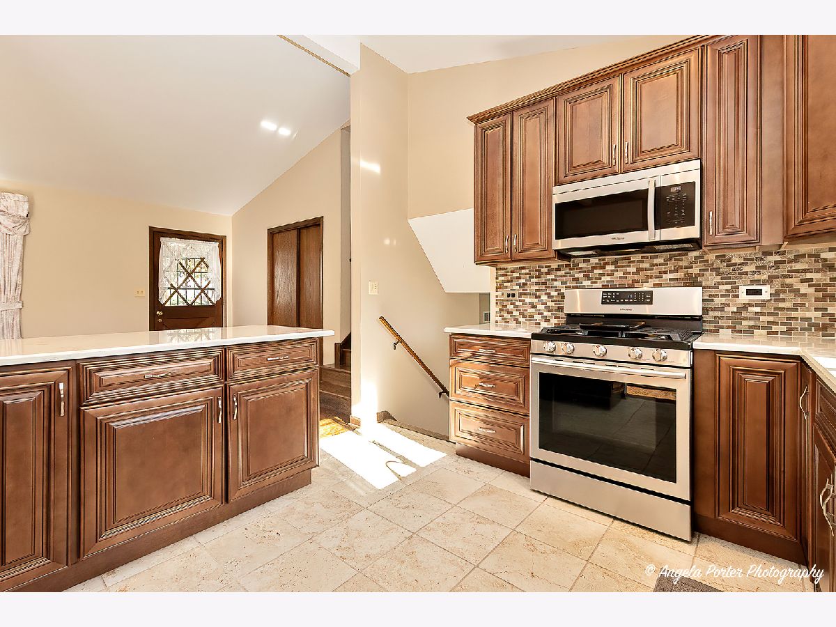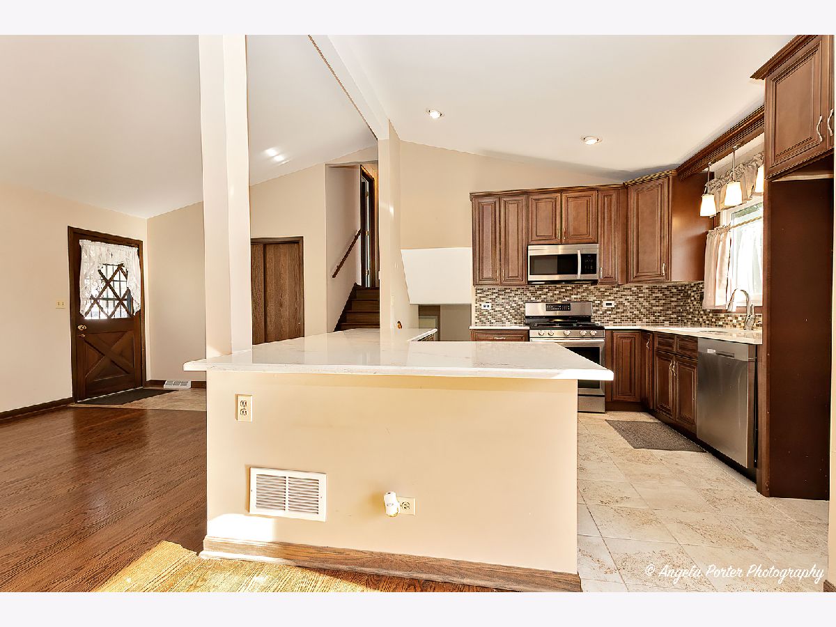 This meticulously maintained split-level home is a true gem that has updated living space in a prime location. Recent upgrades include a new roof and siding (2018), a new furnace and AC unit (2024), and a beautifully renovated kitchen (2021). The home features two spacious living areas, an office with built-in desks on the lower level, and a versatile extra room that can serve as a bedroom or storage. With two driveways, an oversized detached garage, and a generous corner lot with a well-kept yard, this property provides ample space for both indoor and outdoor living. Located near several close parks and lakes in a quiet, family-friendly neighborhood, this home is move-in ready and won't last long-schedule a showing today before it's gone! Includes 1 year Home Warranty.