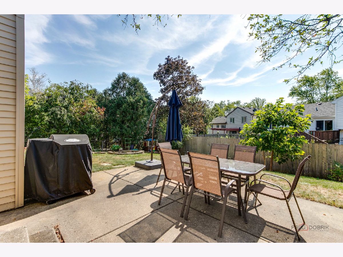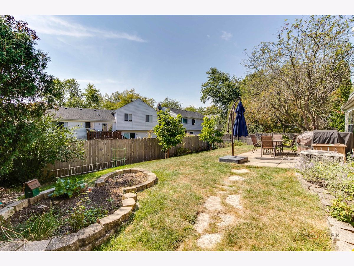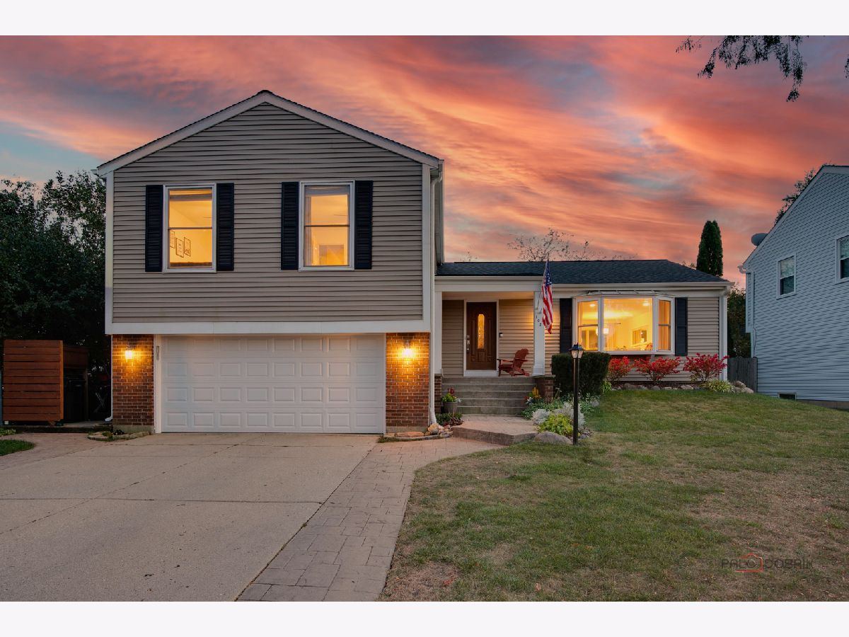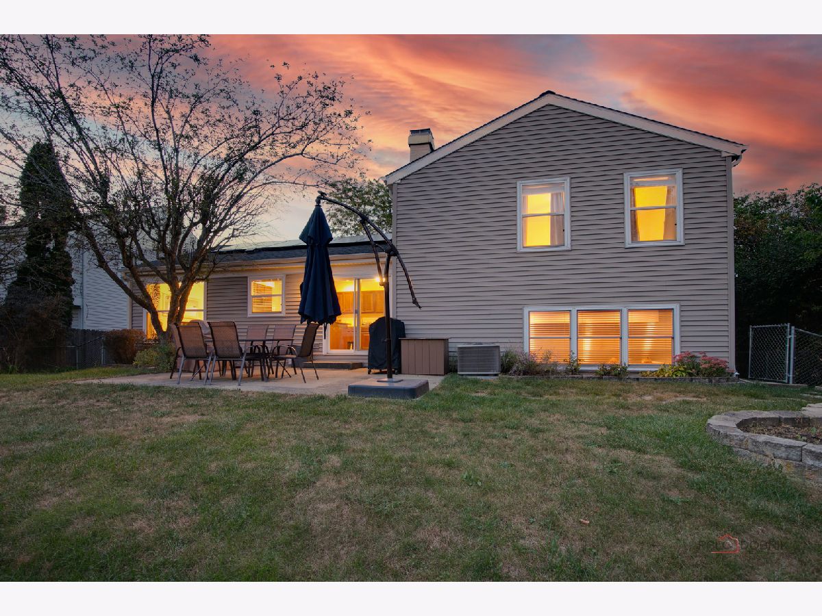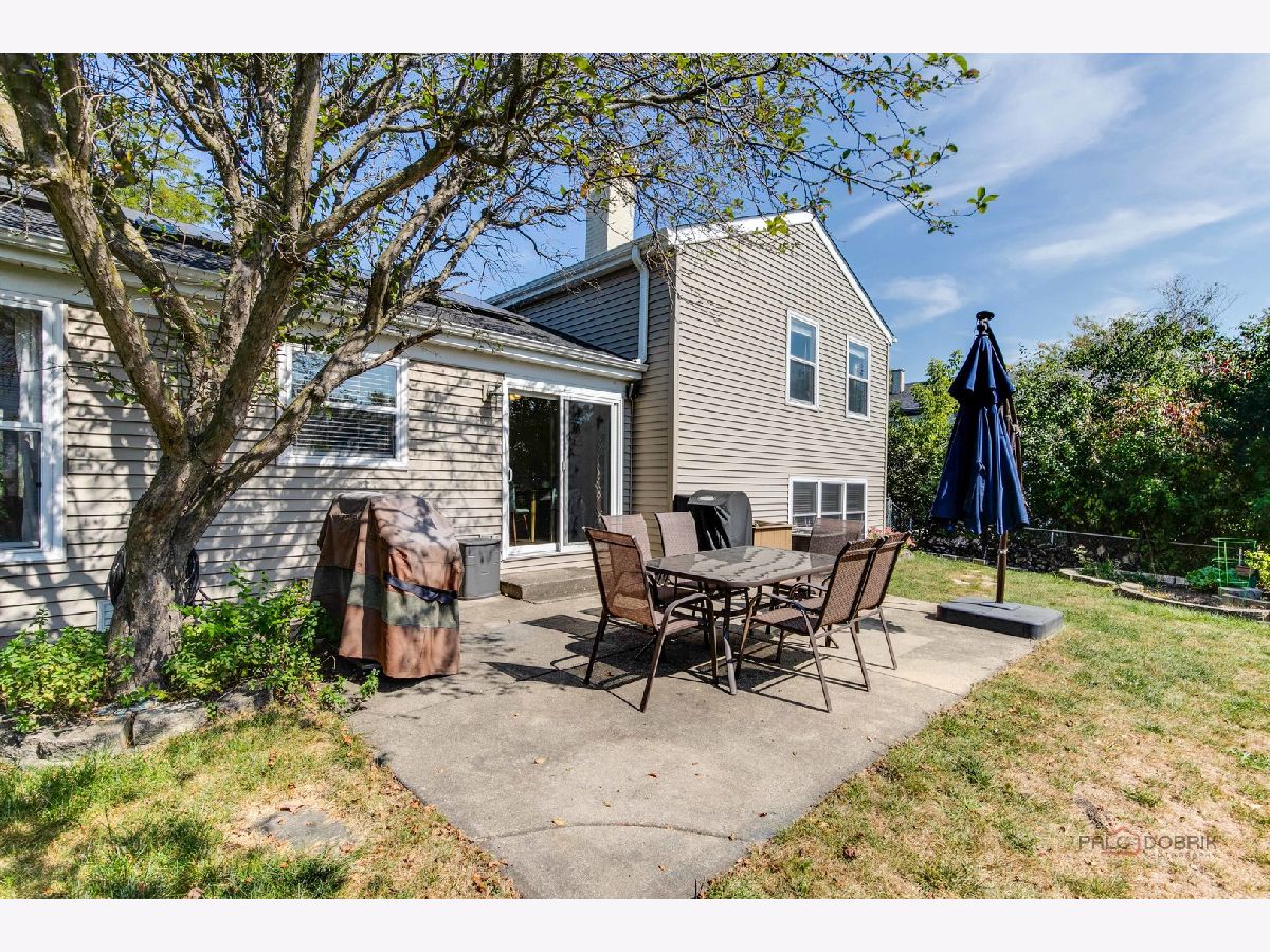Highly sought-after Deerpath home nestled on a quiet cul-de-sac lot, close to everything: train, parks, schools, restaurants, and more! Just seconds from your front door, you'll have access to neighborhood parks, playgrounds, and walking/biking paths. The home features a NEW GAF Timberline HDZ roof and gutters (new in 2022). Upon entering, you are greeted by stunning wood laminate flooring (new in 2020) that extends throughout the main level, along with an interior that has been freshly painted in today's most sought-after color palette (2020), complemented by new ceiling fans and recessed lighting (2020). The layout is sure to please the entertainer in your life, with sunlight pouring into the spacious living room, seamlessly opening to the dining room to create a bright and inviting space. The heart of the home is the eat-in kitchen, featuring Quartz countertops, custom Cherry cabinetry, and quality GE stainless steel appliances (new in 2020). The generous peninsula offers plenty of prep space, while the breakfast area is perfect for casual meals or morning coffee. Imagine hosting a dinner party here, where the ample counter space allows you to effortlessly showcase every dish. Head outside to your private patio and fenced backyard where you can sit back and enjoy a relaxing evening outdoors. Back inside, a stylishly updated half bath (2022) completes the main level. When you're ready to call it a night, head upstairs to the expansive main bedroom, which offers a walk-in closet and en-suite bathroom, providing a peaceful retreat. Three additional bedrooms with ample closet space and a shared full bath complete the second level. On the lower level, a cozy family room is accented by a wood-burning fireplace framed by custom built-in bookshelves, making it the perfect spot for movie nights or game days. There's also a dedicated laundry room with access to the 2-car attached garage for added convenience. Additional storage can be found in the large, cemented crawl space! Don't let this one slip away.