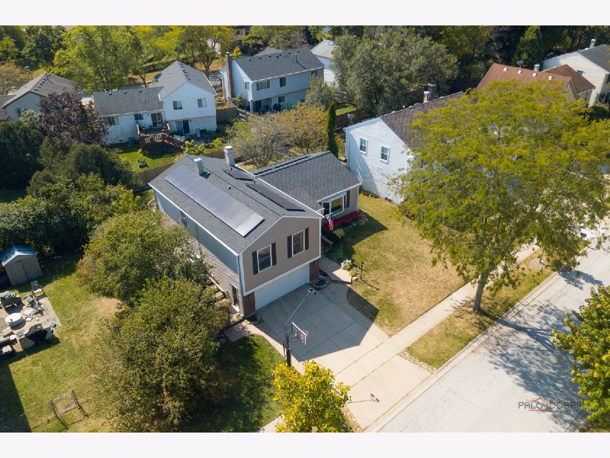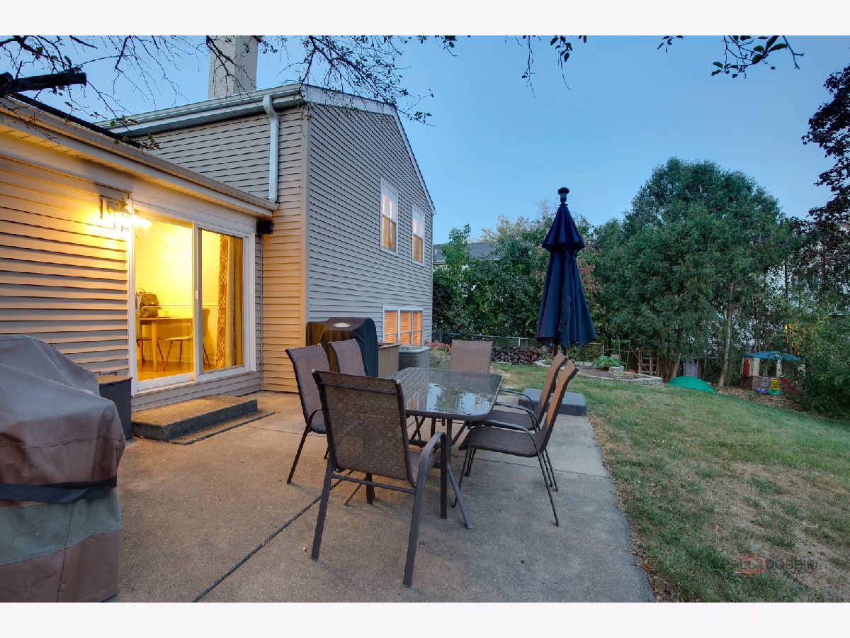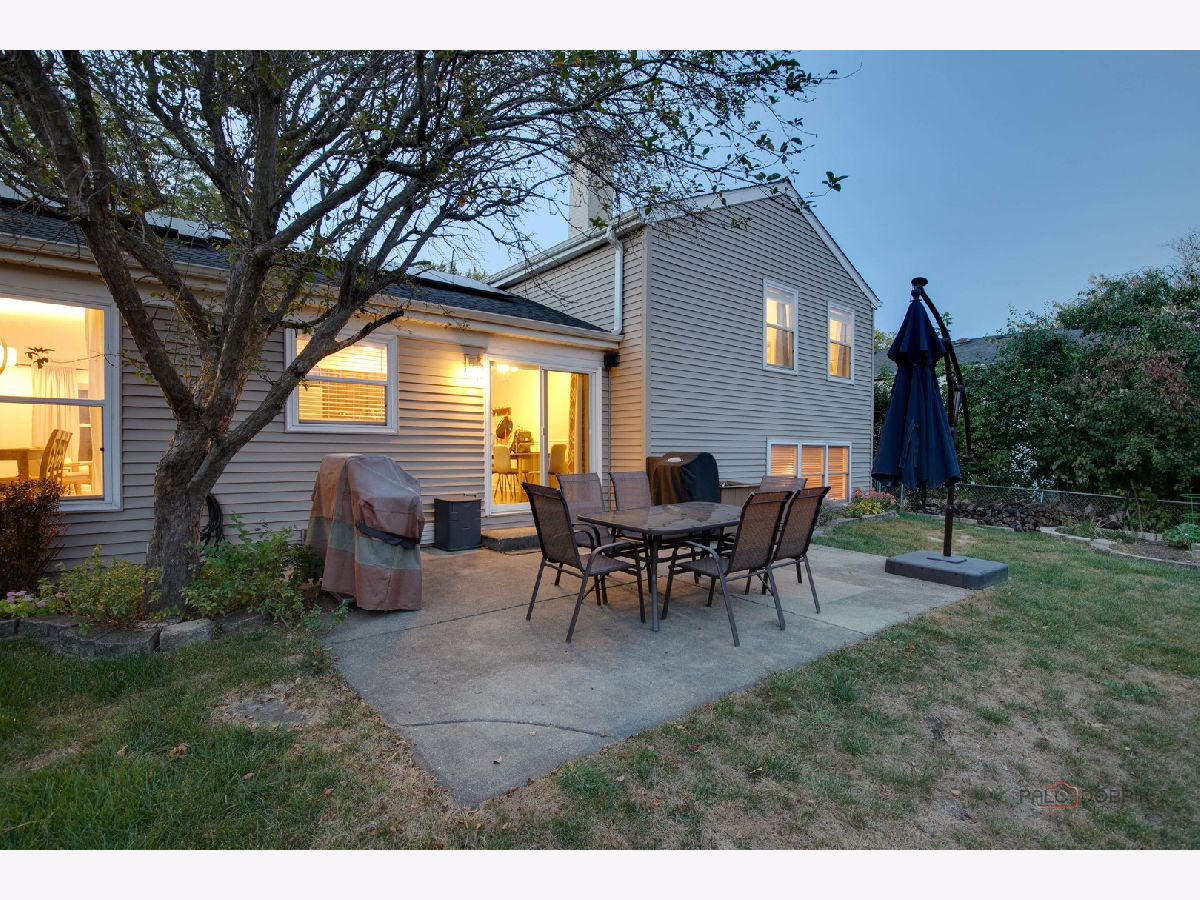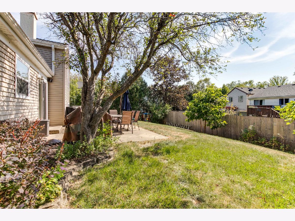 Highly sought-after Deerpath home nestled on a quiet cul-de-sac lot, close to everything: train, parks, schools, restaurants, and more! Just seconds from your front door, you'll have access to neighborhood parks, playgrounds, and walking/biking paths. The home features a NEW GAF Timberline HDZ roof and gutters (new in 2022). Upon entering, you are greeted by stunning wood laminate flooring (new in 2020) that extends throughout the main level, along with an interior that has been freshly painted in today's most sought-after color palette (2020), complemented by new ceiling fans and recessed lighting (2020). The layout is sure to please the entertainer in your life, with sunlight pouring into the spacious living room, seamlessly opening to the dining room to create a bright and inviting space. The heart of the home is the eat-in kitchen, featuring Quartz countertops, custom Cherry cabinetry, and quality GE stainless steel appliances (new in 2020). The generous peninsula offers plenty of prep space, while the breakfast area is perfect for casual meals or morning coffee. Imagine hosting a dinner party here, where the ample counter space allows you to effortlessly showcase every dish. Head outside to your private patio and fenced backyard where you can sit back and enjoy a relaxing evening outdoors. Back inside, a stylishly updated half bath (2022) completes the main level. When you're ready to call it a night, head upstairs to the expansive main bedroom, which offers a walk-in closet and en-suite bathroom, providing a peaceful retreat. Three additional bedrooms with ample closet space and a shared full bath complete the second level. On the lower level, a cozy family room is accented by a wood-burning fireplace framed by custom built-in bookshelves, making it the perfect spot for movie nights or game days. There's also a dedicated laundry room with access to the 2-car attached garage for added convenience. Additional storage can be found in the large, cemented crawl space! Don't let this one slip away.