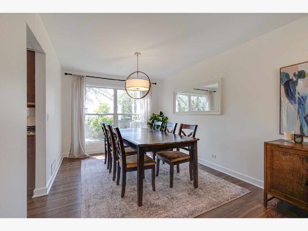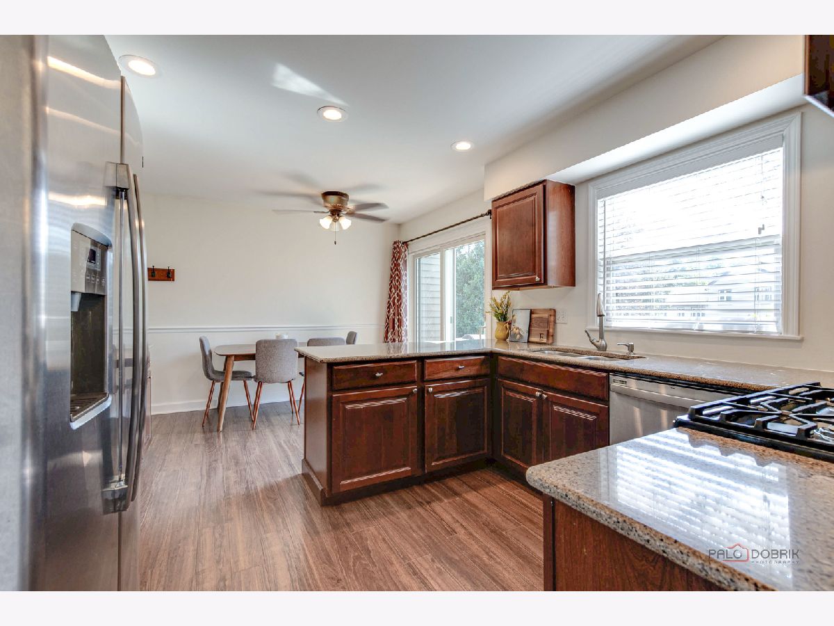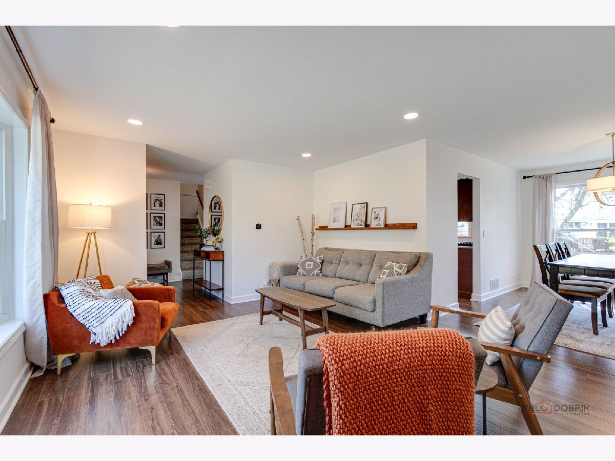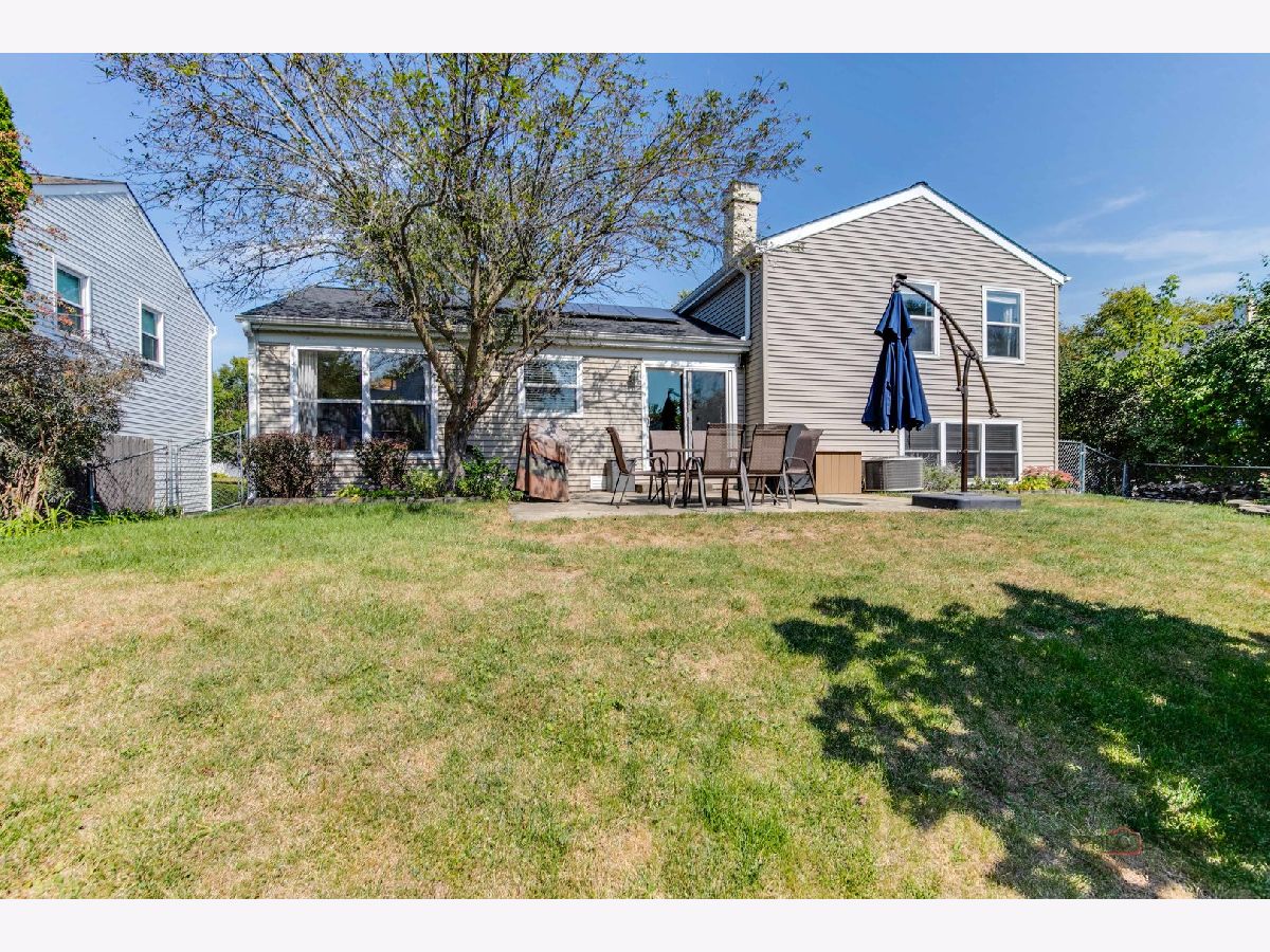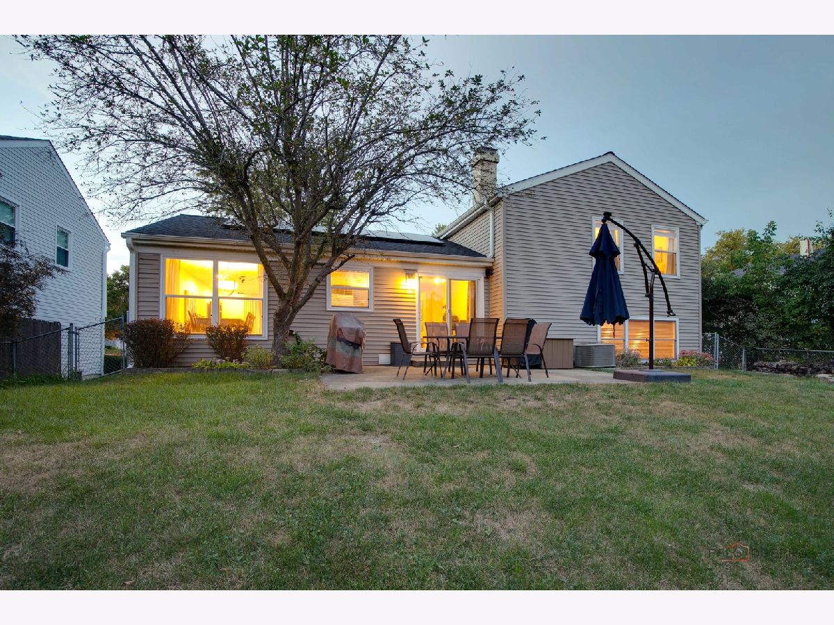 Highly sought-after Deerpath home nestled on a quiet cul-de-sac lot, close to everything: train, parks, schools, restaurants, and more! Just seconds from your front door, you'll have access to neighborhood parks, playgrounds, and walking/biking paths. The home features a NEW GAF Timberline HDZ roof and gutters (new in 2022). Upon entering, you are greeted by stunning wood laminate flooring (new in 2020) that extends throughout the main level, along with an interior that has been freshly painted in today's most sought-after color palette (2020), complemented by new ceiling fans and recessed lighting (2020). The layout is sure to please the entertainer in your life, with sunlight pouring into the spacious living room, seamlessly opening to the dining room to create a bright and inviting space. The heart of the home is the eat-in kitchen, featuring Quartz countertops, custom Cherry cabinetry, and quality GE stainless steel appliances (new in 2020). The generous peninsula offers plenty of prep space, while the breakfast area is perfect for casual meals or morning coffee. Imagine hosting a dinner party here, where the ample counter space allows you to effortlessly showcase every dish. Head outside to your private patio and fenced backyard where you can sit back and enjoy a relaxing evening outdoors. Back inside, a stylishly updated half bath (2022) completes the main level. When you're ready to call it a night, head upstairs to the expansive main bedroom, which offers a walk-in closet and en-suite bathroom, providing a peaceful retreat. Three additional bedrooms with ample closet space and a shared full bath complete the second level. On the lower level, a cozy family room is accented by a wood-burning fireplace framed by custom built-in bookshelves, making it the perfect spot for movie nights or game days. There's also a dedicated laundry room with access to the 2-car attached garage for added convenience. Additional storage can be found in the large, cemented crawl space! Don't let this one slip away.