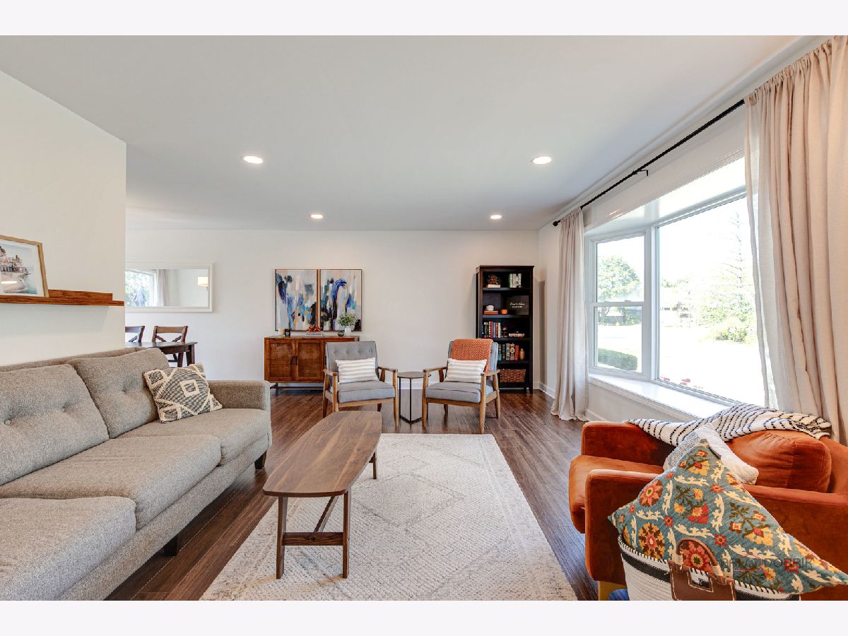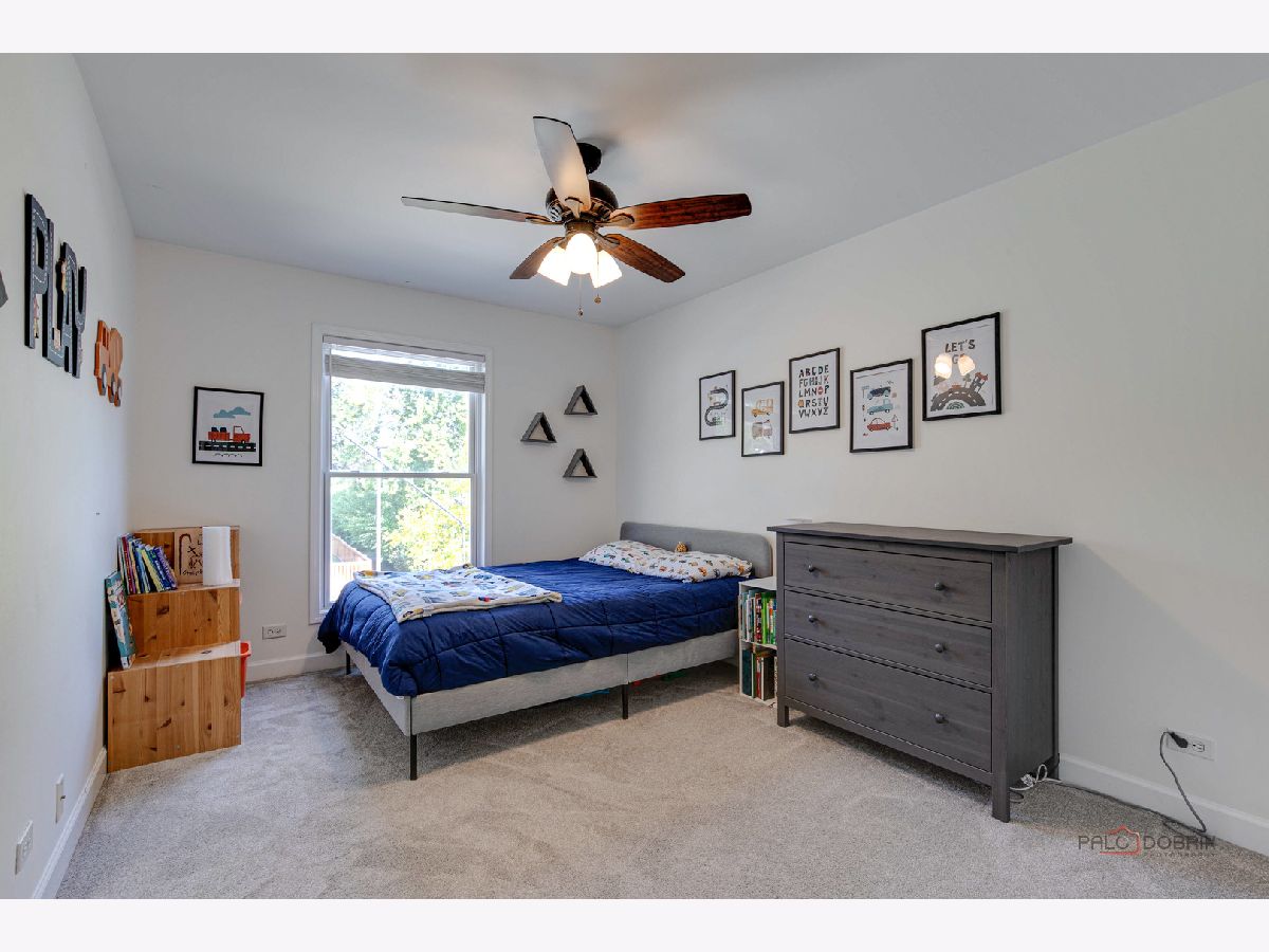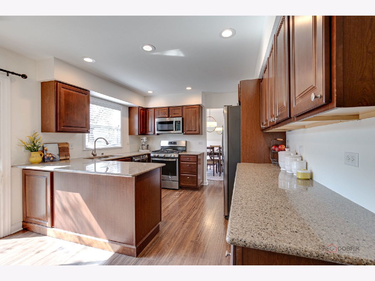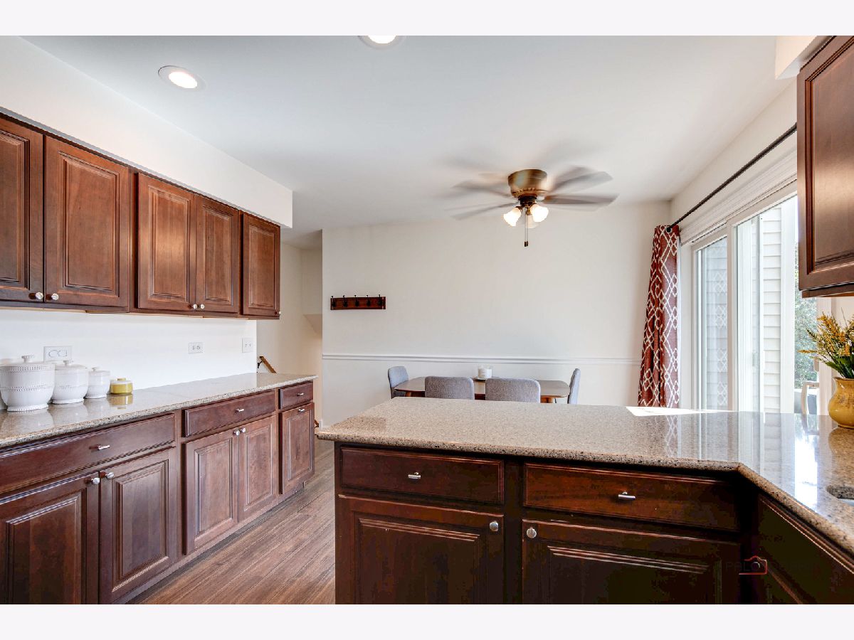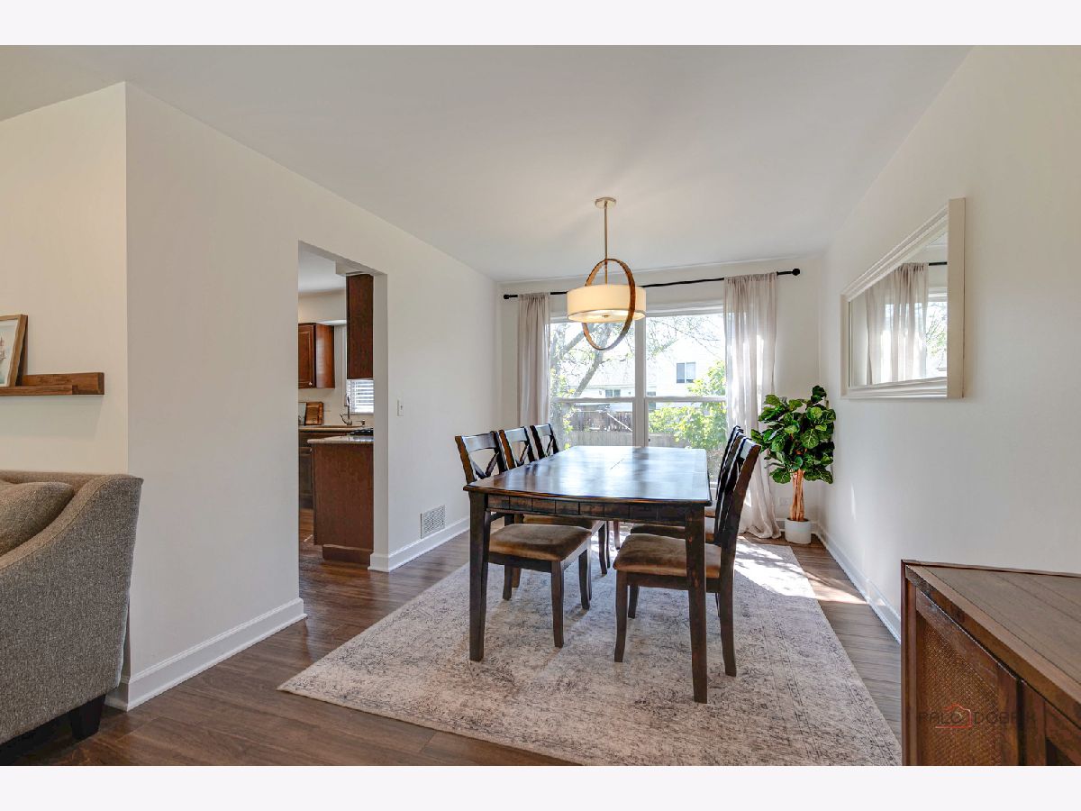 Highly sought-after Deerpath home nestled on a quiet cul-de-sac lot, close to everything: train, parks, schools, restaurants, and more! Just seconds from your front door, you'll have access to neighborhood parks, playgrounds, and walking/biking paths. The home features a NEW GAF Timberline HDZ roof and gutters (new in 2022). Upon entering, you are greeted by stunning wood laminate flooring (new in 2020) that extends throughout the main level, along with an interior that has been freshly painted in today's most sought-after color palette (2020), complemented by new ceiling fans and recessed lighting (2020). The layout is sure to please the entertainer in your life, with sunlight pouring into the spacious living room, seamlessly opening to the dining room to create a bright and inviting space. The heart of the home is the eat-in kitchen, featuring Quartz countertops, custom Cherry cabinetry, and quality GE stainless steel appliances (new in 2020). The generous peninsula offers plenty of prep space, while the breakfast area is perfect for casual meals or morning coffee. Imagine hosting a dinner party here, where the ample counter space allows you to effortlessly showcase every dish. Head outside to your private patio and fenced backyard where you can sit back and enjoy a relaxing evening outdoors. Back inside, a stylishly updated half bath (2022) completes the main level. When you're ready to call it a night, head upstairs to the expansive main bedroom, which offers a walk-in closet and en-suite bathroom, providing a peaceful retreat. Three additional bedrooms with ample closet space and a shared full bath complete the second level. On the lower level, a cozy family room is accented by a wood-burning fireplace framed by custom built-in bookshelves, making it the perfect spot for movie nights or game days. There's also a dedicated laundry room with access to the 2-car attached garage for added convenience. Additional storage can be found in the large, cemented crawl space! Don't let this one slip away.