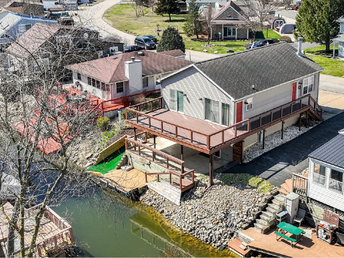 SHADOW LAKES - WATERFRONT - Now available, a darling sun drenched, 2-bedroom (plus office/den) home which boasts numerous designer updates throughout! Home features a wonderful walk-out basement that is set up perfectly for entertaining guests! The updated kitchen is equipped with a center island, recessed fridge, large pantry closet, some newer appliances, ample cabinetry, and countertop space. The large Living Room & adjacent Dining Room are set-up perfectly to complement indoor/outdoor entertainment to ensure all of your guests have a place to cool off, relax, and enjoy the lake! The water-front patio has ample space for an 8-person dining table and a large outdoor seating set - there's plenty of space for all your guests! The main level features a cozy family room with a stone fireplace, side porch, expansive 30' open-air wooden deck, second bedroom, office/den, hall bathroom, and best of all, the primary bedroom suite which overlooks the water and has access to the deck! Additional home highlights include a boat slip, parking for 5+ cars, outdoor storage shed, natural gas (not propane), and more! Lake front features a sprawling partially covered patio, wooden dock, finished concrete boat ramp, and a charming lighthouse! Community highlights...fabulous location, only 1 mile east of I-55 & only 1 hour south of downtown Chicago. Shadow Lakes is an active community that has miles of interconnecting freshwater lakes and channels with abundant fish and wildlife, sandy beach, fishing, hiking, boating, swimming pool (accessed through the clubhouse), locker rooms, amenity center, playground, dog park, courts for basketball & volleyball, planned activities, and electric golf carts are allowed! Association fees are tiered depending on annual occupancy and include water, sewer, garbage, security, clubhouse, common insurance, and exterior maintenance. Buyers' responsibility to verify all HOA rules and community information. Call to schedule a home tour today; this waterfront gem won't last long!