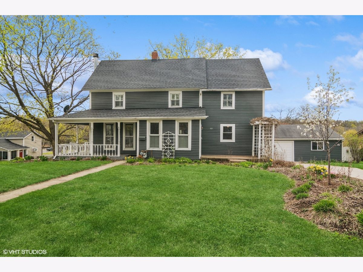 Welcome to this charming and versatile farmhouse-style home, offering a perfect blend of vintage character, space, and functionality! Nestled on a spacious double lot near the scenic Fox River, this delightful property features three generously sized bedrooms upstairs plus a main-level den that easily doubles as a fourth bedroom, providing flexibility for your lifestyle needs. The heart of the home is a spacious kitchen, ideal for everyday living and entertaining. Gather in the inviting living room, complete with a cozy wood-burning fireplace, or host memorable dinners in the adjoining formal dining room filled with natural light. Two full bathrooms are thoughtfully placed for convenience, with one full on the main level and the second upstairs. Outdoor entertaining is a dream with a two-tiered deck that overlooks picturesque views of the Fox River, complemented by a large screened porch perfect for relaxing in this summer. The charming wrap-around front porch, complete with a classic porch swing, adds to the home's timeless appeal and provides a peaceful spot to unwind. A detached two-car garage with a workshop area-large enough to accommodate two additional vehicles-offers incredible space for hobbies, storage, or extra parking. This warm and welcoming home is a rare opportunity to own a slice of vintage charm with modern versatility in a prime location. Don't miss your chance to make it your own!