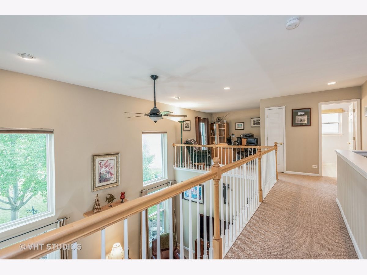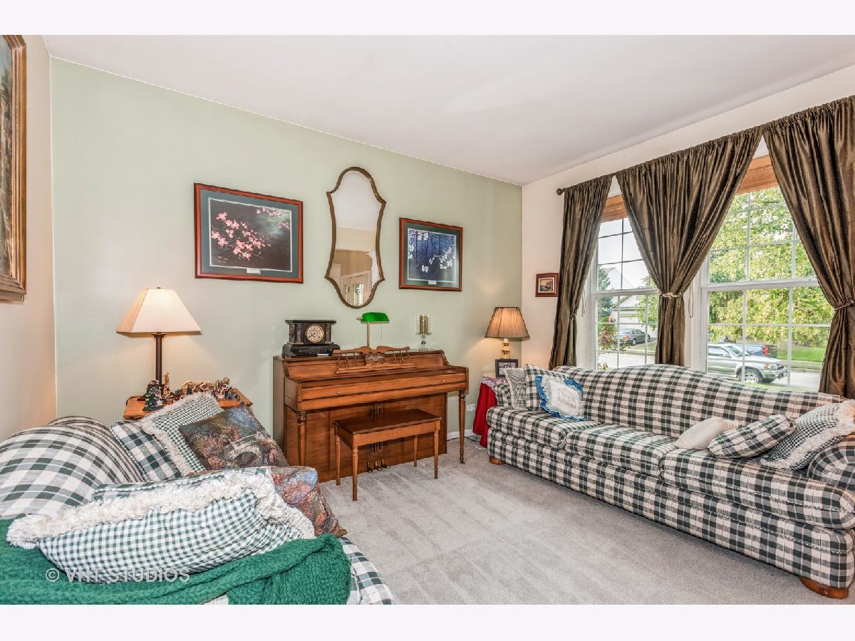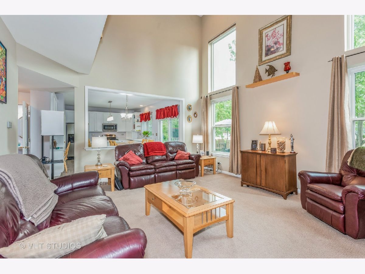 First time on the market! This extremely well maintained 4 bedroom, 2 1/2 bath, 2400 plus square foot will not disappoint. The moment you walk in you will feel the openness with 9' ceilings throughout and the 2 story family room. The first floor bedroom can easily be an office/den. The large kitchen has an breakfast bar island , plenty of cabinet and counter space, a large area for a table, a desk area and dry bar. Upstairs are 3 generously sized bedrooms, the master bedroom is very roomy with a very large master bath with separate shower and whirlpool tub. You can't miss the enormous walk in closet! The loft overlooks the family room and is a great space for a playroom or lounging area. The basement offers a deep dig foundation and a rough in for a bathroom. This is a fantastic lot with green space in the backyard, a beautiful stamped concrete patio to relax on. A new roof in 2020 and new windows in 2016.