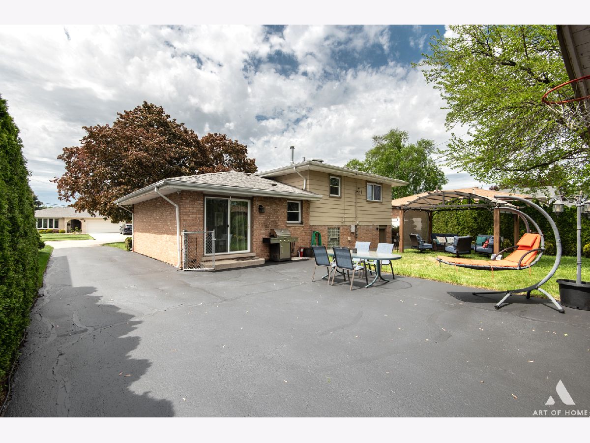 Stop your car and be WOWed! Welcome to your new cozy retreat nestled in the heart of Chicago Ridge. The whole interior was redone for you in 2014- rough in plumbing for bathroom in the basement - new electric, plumbing, windows, furnace, beautiful European flooring-3/4 full bamboo, 3/8 engineered floor - hand scraped, custom staircase, heated floor in the bathroom, air jet Jacuzzi, ultra quiet fan, custom vanity. You name it you got it! This delightful 3-bedroom, 1-bathroom split level house offers a perfect blend of comfort, convenience, and charm. Upon entering, you'll be greeted by a warm and inviting main level featuring a spacious living room with cozy, custom made fireplace, dining room and kitchen with stunning laser cut kitchen mosaic back splash from Italy, granite counter-tops. Flooded with natural light pouring in through numerous windows, this area provides the ideal setting for gatherings with family and friends. Step outside through the sliding doors onto an extensive patio, where you can bask in the beauty of the outdoors while relaxing, entertaining, or simply enjoying a peaceful moment under beautiful pergola which comes with the house (over 200 shrubs planted for privacy as well). Descending to the lower level - fully insulated and finished in 2021 - you'll discover a magnificent family room that exudes warmth and coziness, especially on those chilly winter nights. Whether you're unwinding with a good book, hosting game nights, or simply lounging with loved ones, this space offers endless possibilities for enjoyment. Home is in a perfect condition but selling "As is". (Ask your agent for list of all the updates).