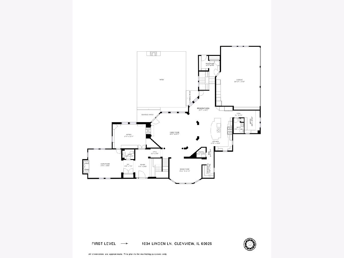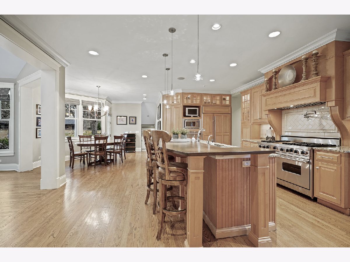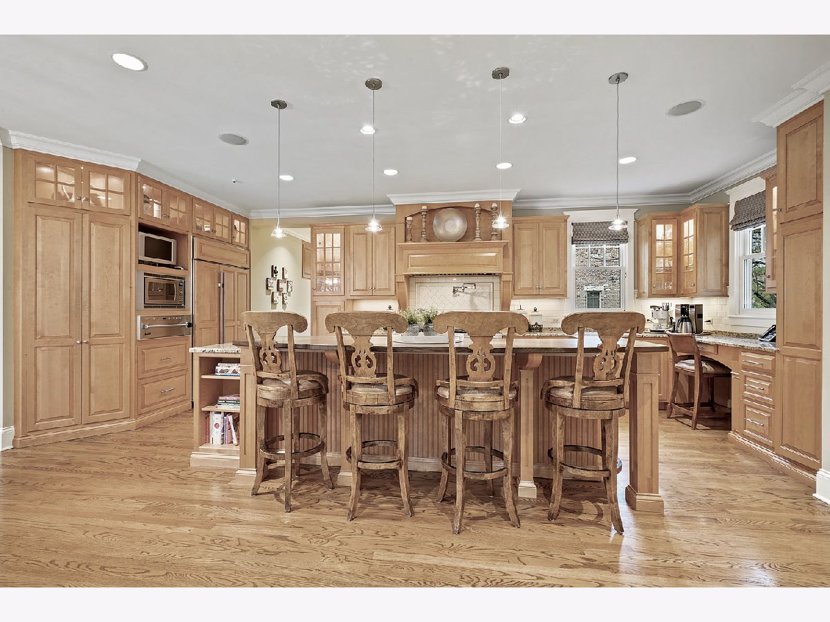 Architectural masterpiece in one of Glenview's most sought-after neighborhoods, Glen Oak Acres! Stunning design and high-level attention to detail throughout every square inch of this 5 bedroom stunner make for sophisticated yet comfortable living, working, and entertaining with both luxury and privacy. Designed & built by the team of Bresnahan & Swan in 2004, this property was carefully positioned on the parcel to ensure a spacious, private backyard space that could accommodate a pool - a rarity for Glen Oak Acres. There's plenty of living, learning, working, and fun space in this sprawling abode which boasts 5 bedrooms on the second floor with three en-suite bedrooms and a set of Jack-and-Jill bedrooms, plus ample sized laundry room and catwalk style hallway overlooking the main living space. The primary suite is a true sanctuary, with a sumptuously appointed en-suite bathroom, grand walk-in closet with professional organizers (plus a 'secret' attic storage space just off the WIC), and a spacious sleeping room complete with your very own fireplace. On the first floor there is space for everyone all at once for working, e-learning, and playing alike. Just beyond the bright & sunny formal foyer is the parlor-style music room with access to the executive office and conveniently situated near the guest powder room. The office has all the features you need for working from home while keeping organized and has great views of the backyard, and a double-sided fireplace. Combined family/living, breakfast room, and open-concept kitchen with adjacent butler pantry and formal dining room keep the feeling of connectedness while still maintaining separate spaces. Perhaps one of the best features on the first level is the "kids" office with 2 desks, cubbies, and charging stations for all your electronic devices. Wow! Last, but certainly not least, is the fully finished basement with 8 ft 6 inch ceilings and two staircases. At 1885 square feet of finished space PLUS storage galore, there is something for everyone to enjoy in the light-filled basement. Get your hair done in the private salon, enjoy a glass of vino from the wine fridge at the bar, catch the game on the big-screen TV, or take a spin class from the home gym! This estate-style property is accented by professionally landscaped grounds with outdoor fireplace and dining areas, stone patio, playground equipment set, and circular driveway with a 3 car garage. Too many quality finishes & features to list - come see what North Shore living is all about at 1034 Linden Ln.