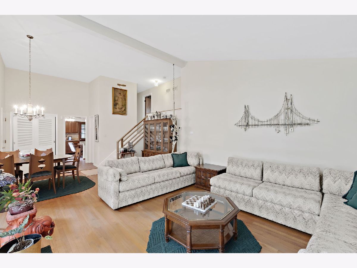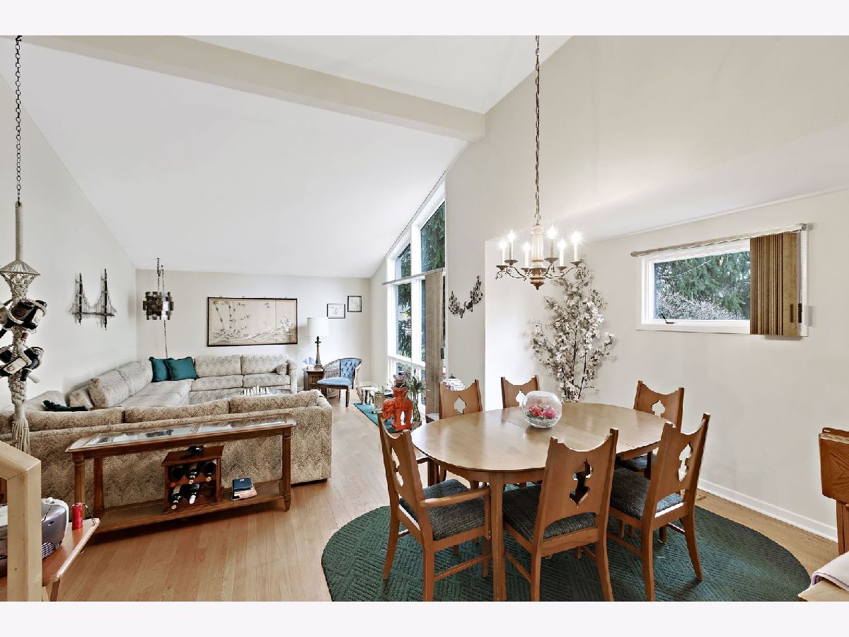 This charming split-level home in New Trier School District has been lovingly maintained. Amazing east Glenview location right across the street from the forest preserve with miles of walking and biking trails, close to award winning schools, and easy access to 1-94, shopping, and restaurants. The home features a spacious eat-in kitchen with wood cabinets, wood-look countertops, all appliances including newer stainless-steel fridge, disposal, and microwave, plus plenty of space for a table. Great open concept living space with hardwood floors, vaulted ceilings, and plenty of windows for natural light. There is room for a large dining room area as well as a spacious living room. Completing the main level is a first-floor powder room you rarely find in a home this style. The second level features three spacious bedrooms with hardwood under the carpet and a full hall bathroom with neutral decor and a tub/shower with glass door. From the hallway there is a built-in linen cabinet as well as access to a storage space above the kitchen. Further expanding the living space is a finished lower level with a family room with large windows pouring in natural light plus recessed can lights, and a laundry/mudroom with newer washer/dryer, and a convenient extra family door to the outside. From the lower level you can also access a crawl space for additional storage. The exterior of the property includes a good-sized backyard with concrete patio, long asphalt driveway, and a detached two car garage. Hot water heater manufactured February 2015. HVAC System replaced 7-8 years ago.