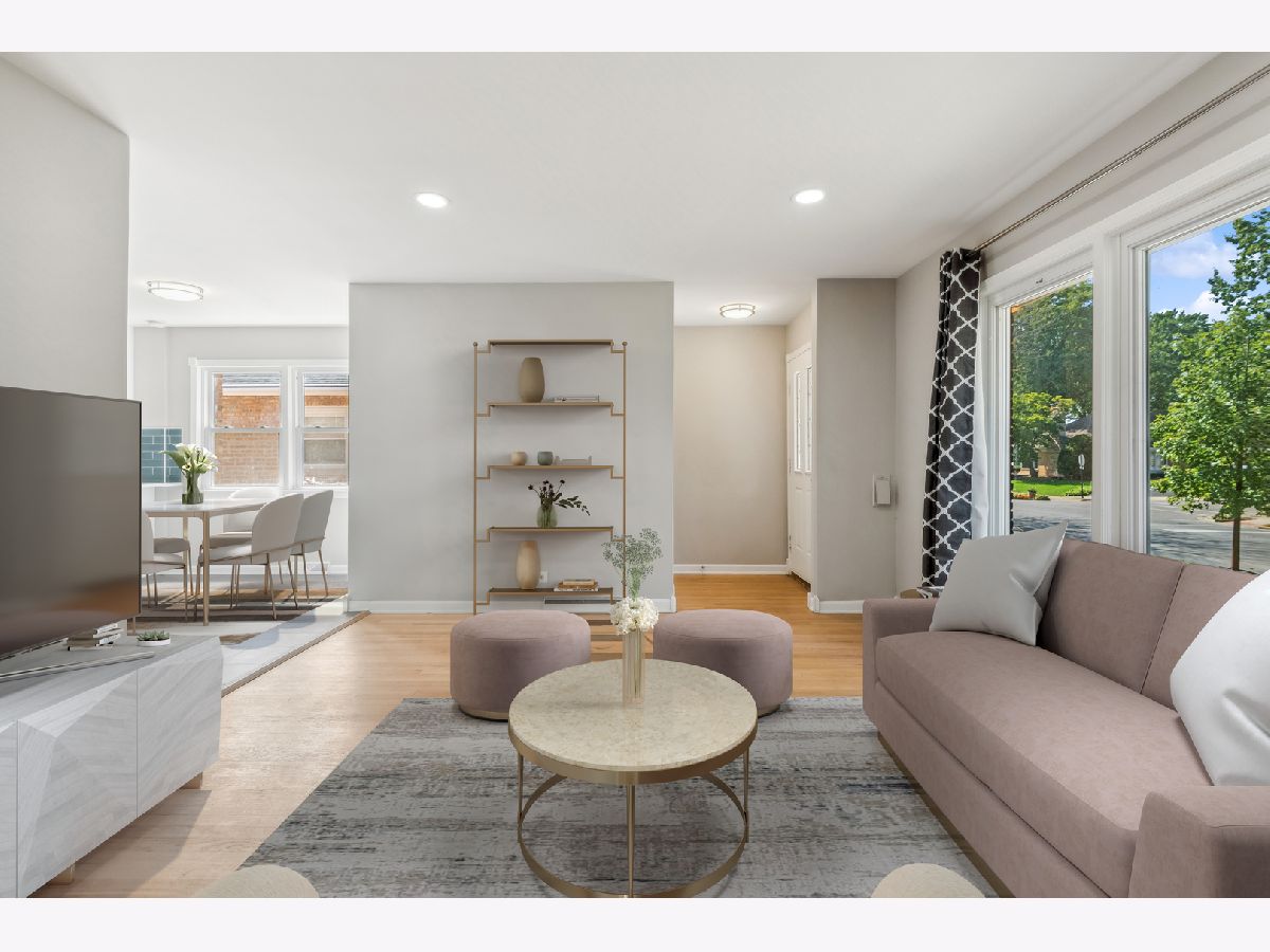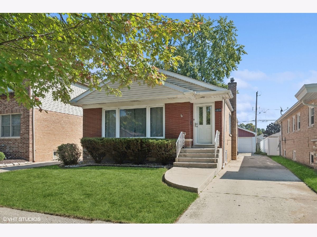 Newly renovated, charming brick ranch on a quiet tree-lined street in the heart of Mount Greenwood. Boasting new paint, new lighting, new flooring throughout, new kitchen, new bathrooms on both levels, a great side driveway with parking pad, and a two-car garage. Step into an intimate foyer where you're greeted with a large coat closet, refinished oak hardwood floors, and a spacious living room with large windows flooding the home with natural sunlight. The original living room wall was removed during renovation to open the space between the living and dining/kitchen areas - perfect for entertaining! The brand-new kitchen features white cabinets, lovely tile backsplash, all new SS appliances (warranty), sink disposal, quartz countertops, and an island with breakfast bar. The cozy dining area has plenty of space for formal dining and a pantry closet with built-in shelving. All three bedrooms on the main floor offer hardwood floors, ample space, and closets. The shared renovated bath has new granite countertops and vanity, a new toilet, and new tub. A fully finished and spacious lower-level highlights great natural sunlight, brand new luxury vinyl flooring throughout, a huge recreation/family room, 4th bedroom or office space, & a designated laundry/utility room with brand new washer & dryer, storage closet, and wastewater sink. The lower level is complete with a renovated bathroom with separate shower. Located a stone's throw to the restaurants and bars off Western, Ridge Golf Course, Beverly Country Club, McKiernan Ball Field, St. Xavier University, Jewel Osco, CVS, Ace Hardware, and all that Mt. Greenwood/Beverly have to offer!