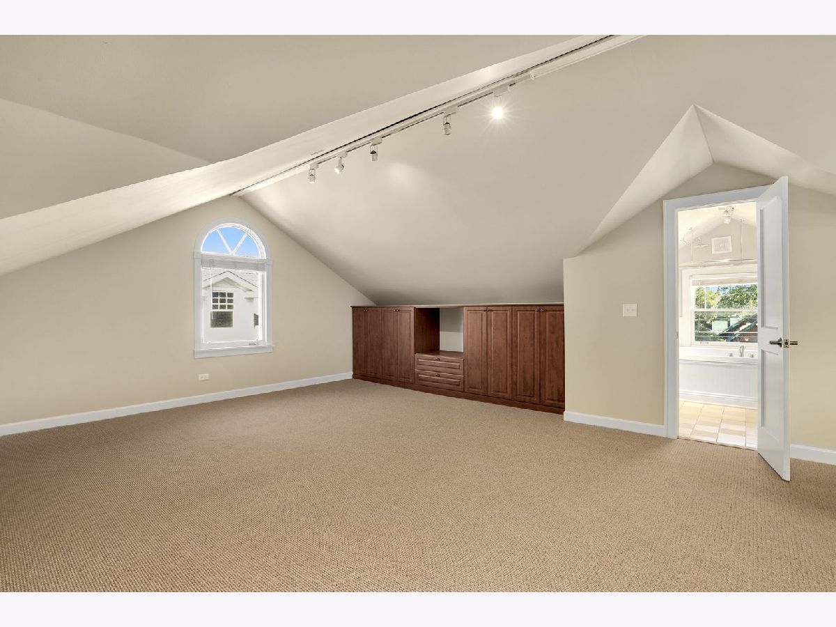 Beautiful, impeccably maintained 4Bed/3.5Bath Oak Park home! All brand new Thermador stainless steel appliances! Natural light floods this home featuring hardwood floors throughout first & second floor, wood burning fireplace, separate dining room, kitchen with granite countertops, custom cabinetry, and added large breakfast room with deck overlooking patios and huge backyard. Second floor has three generously-sized bedrooms including one bedroom with private balcony and one bedroom with en suite bath with marble vanity and glass shower. Second floor hall bath has subway tiled shower and marble vanity as well. Third floor attic was converted into an enormous primary suite with custom built-ins and added bath with whirlpool tub. Fully finished basement with custom bar, storage, laundry area, and exterior access. Detached two-car garage with storage and 3-car parking pad makes this the ideal home. Highly desirable Oak Park location on a parkway street one block from esteemed Horace Mann Elementary, near parks, and restaurants. Best value in quintessential Oak Park location at 228 dollars per sq ft.