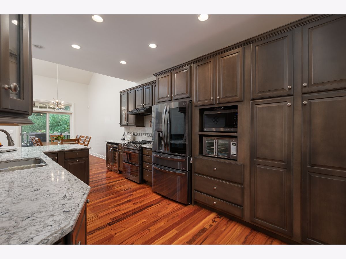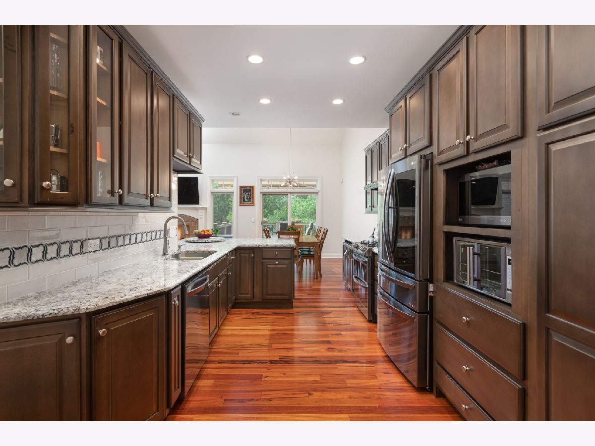 New to the market, 3-bedroom 3.2 Bathroom townhome in the coveted Charlestown Woods subdivision with approx. 3900 sq. feet of finished living area. 1 mile to downtown Naperville and easy access to train and 88. This two story all brick townhouse with full finished walk-out basement was completely remodeled in 2019. Brazilian tigerwood flooring throughout the 1st floor. Gourmet kitchen with updated LG series black stainless-steel appliances along with Cambria Quartz countertops. First floor master suite with updated master bath. Master bath has jacuzzi tub and spa like shower with full body sprays. 2nd floor has a large loft area great for lounging or office space along with a recently built out bonus room that could be converted into a 4th bedroom. 2nd floor also has a large 2nd bedroom with a remodeled full bath with tub and quartz tops. Basement was completely done in 2019 with a large media/entertaining area that has a walk out to a patio and backyard. Recreation area in the basement, great for pool or ping pong is complete with a kitchenette. Large 3rd bedroom with full finished bath provides great views of the backyard. From the main level you can walk out on the two-story deck that provides remarkable views of the backyard. Garage is equipped with a Tesla super charger. This unit won't last long. 203 schools and great location. Welcome Home.