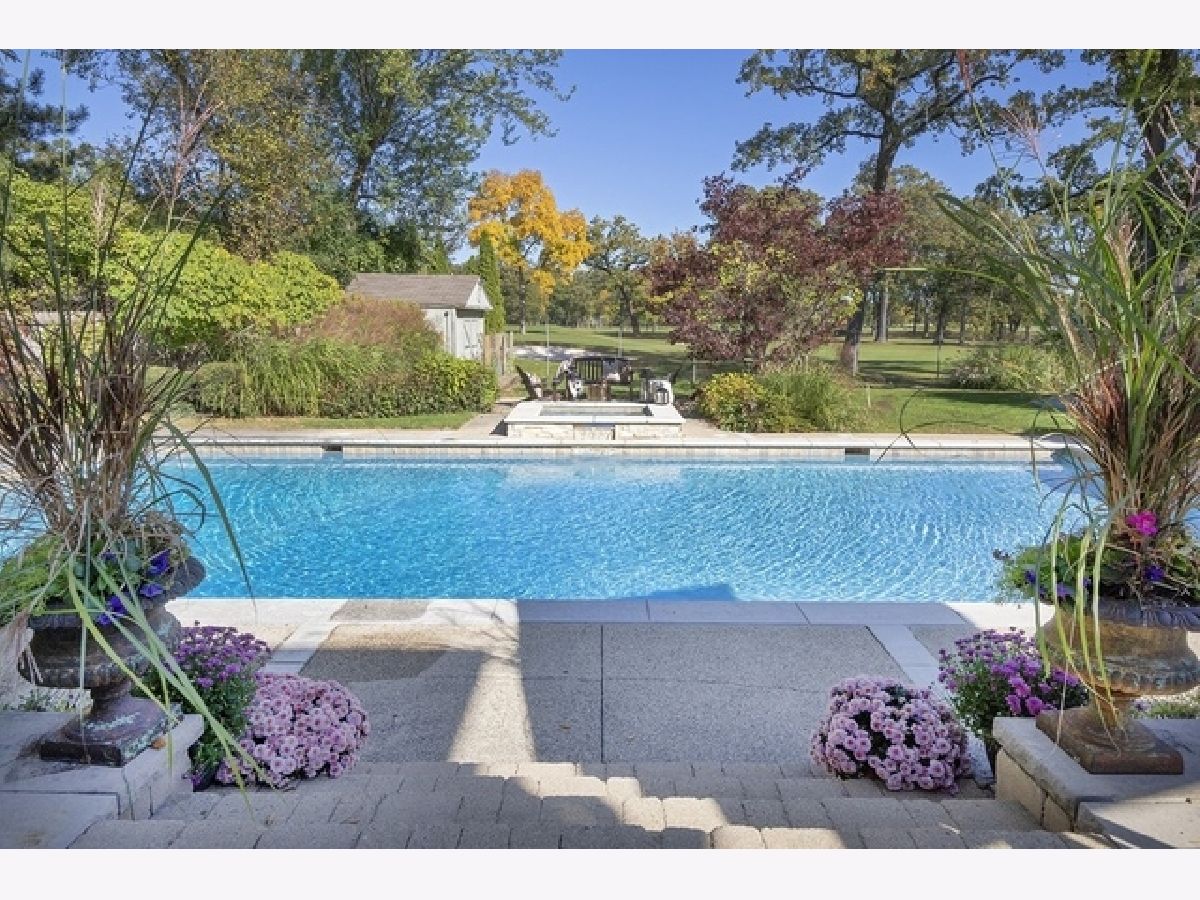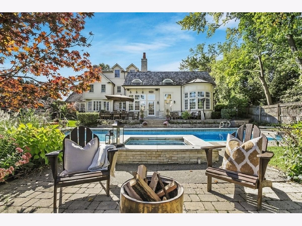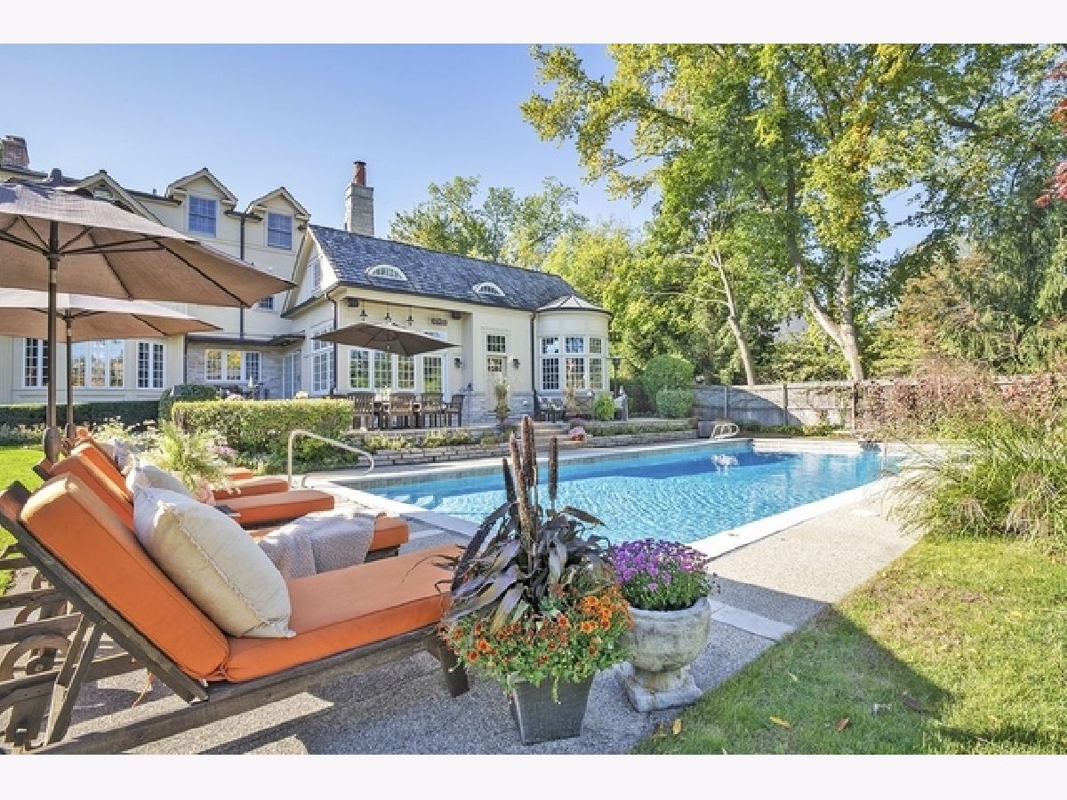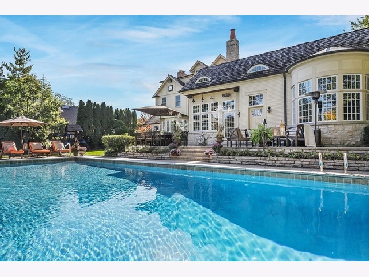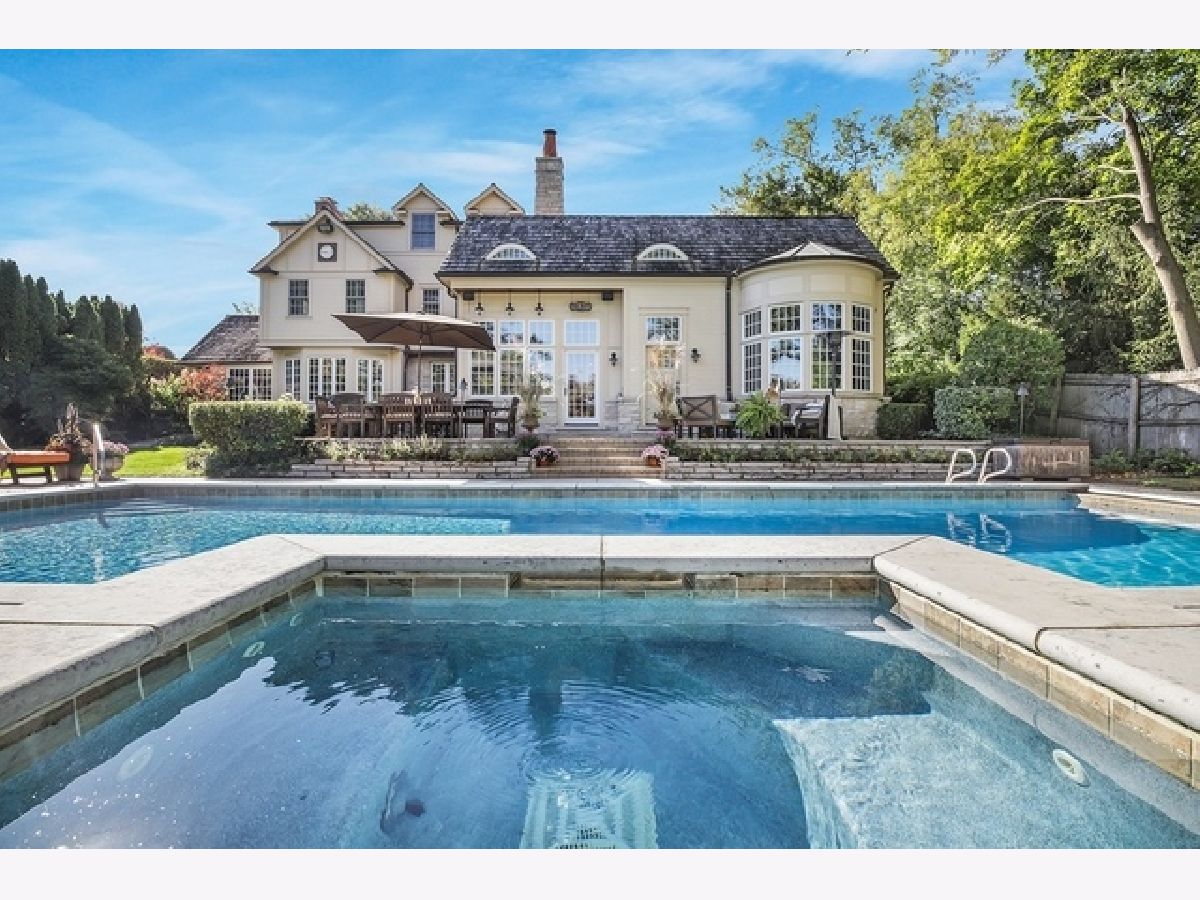 Wake up in your own resort every day with a beautiful pool and spa overlooking North Shore Country Club golf course. The stunning curb appeal with maturely landscaped grounds make this one of Glenview's premier homes. Enter into the grand two-story foyer with rustic hardwood floors. The living room runs from the front to the back of the home with a fireplace with stone surround, and beautiful bay windows overlooking the pool and golf course. First-floor office with beam ceiling, stone accents, and tons of windows for great natural light. Dining area with a massive built-in banquet and wall of custom cabinetry. High-end kitchen with two-toned cabinets, a beam ceiling, and high-end appliances including a double Subzero refrigerator and a Wolf range with a unique stone cooking cave. A raised breakfast bar offers additional seating while the convenient mudroom/pantry offers great additional storage with built-in shelving and lockers. A beautiful double sided stone fireplace is located between the kitchen and the sun room offering a vaulted ceiling and walls of windows overlooking the pool and golf course. A transitional area features a built-in desk and cabinetry perfect for a homework area or second office. Conveniently located to the pool is a powder room with built-in lockers for storage and a second washer and dryer to service the pool and guests. A stunning two-story family room features two walls of built-ins, one for the television and media equipment and a second built-in desk flanked by shelves, and beautiful rounded window. The upper levels of the home have four bedrooms, four full bathrooms, and a laundry room. The huge private third floor master suite features a massive walk-in closet, and an en-suite bathroom with a light double sink vanity with quartz countertop and a stand-up shower. There are three bedrooms, three full bathrooms, and a laundry room on the second level including two additional private suites. Further expanding the living space is a large recently refinished lower level with light LVT wood-look flooring including a large game room, darling play room, second family room, exercise room/fifth bedroom, and a full bathroom with a walk-in closet. As stunning as the inside of the home is the backyard might be even better with an expansive paver patio, huge pool with a spa, tons of green space including a vegetable garden, and unbeatable views of the golf course.