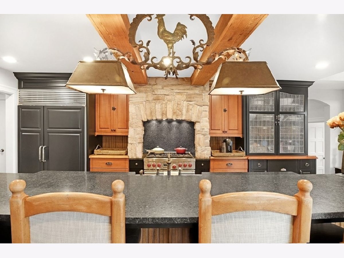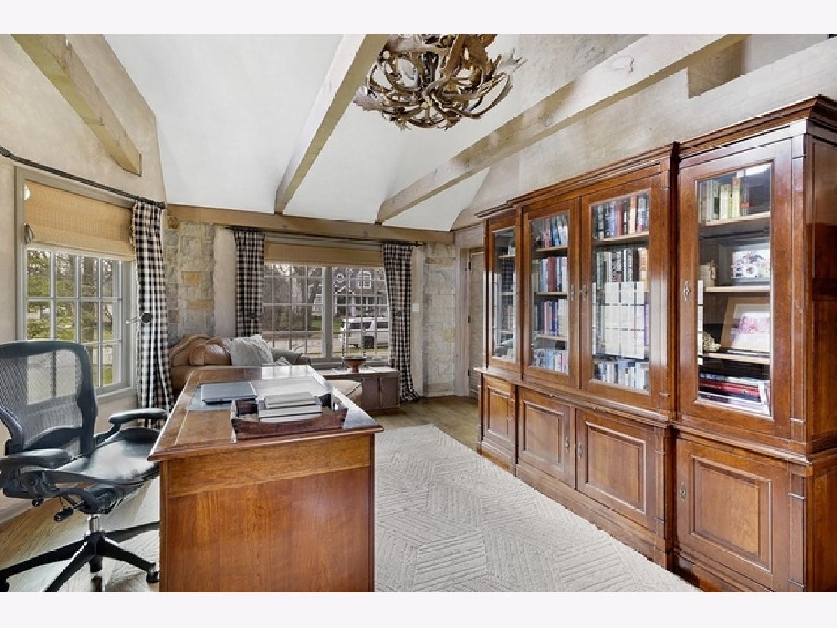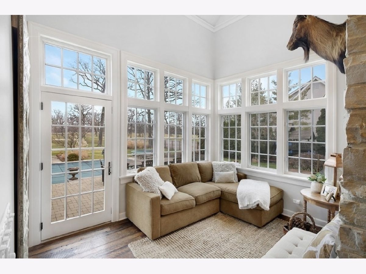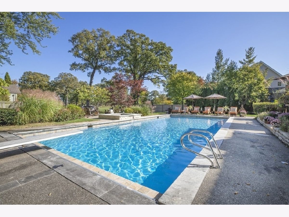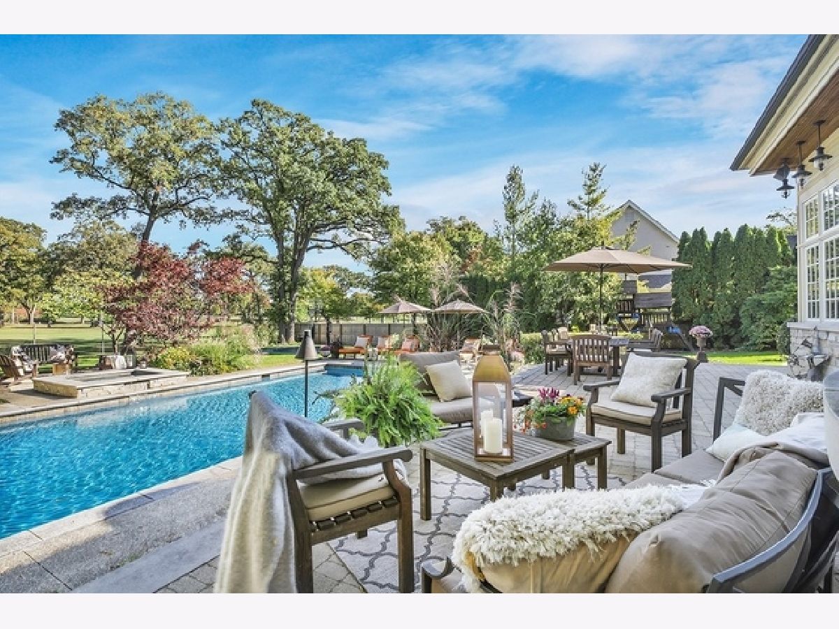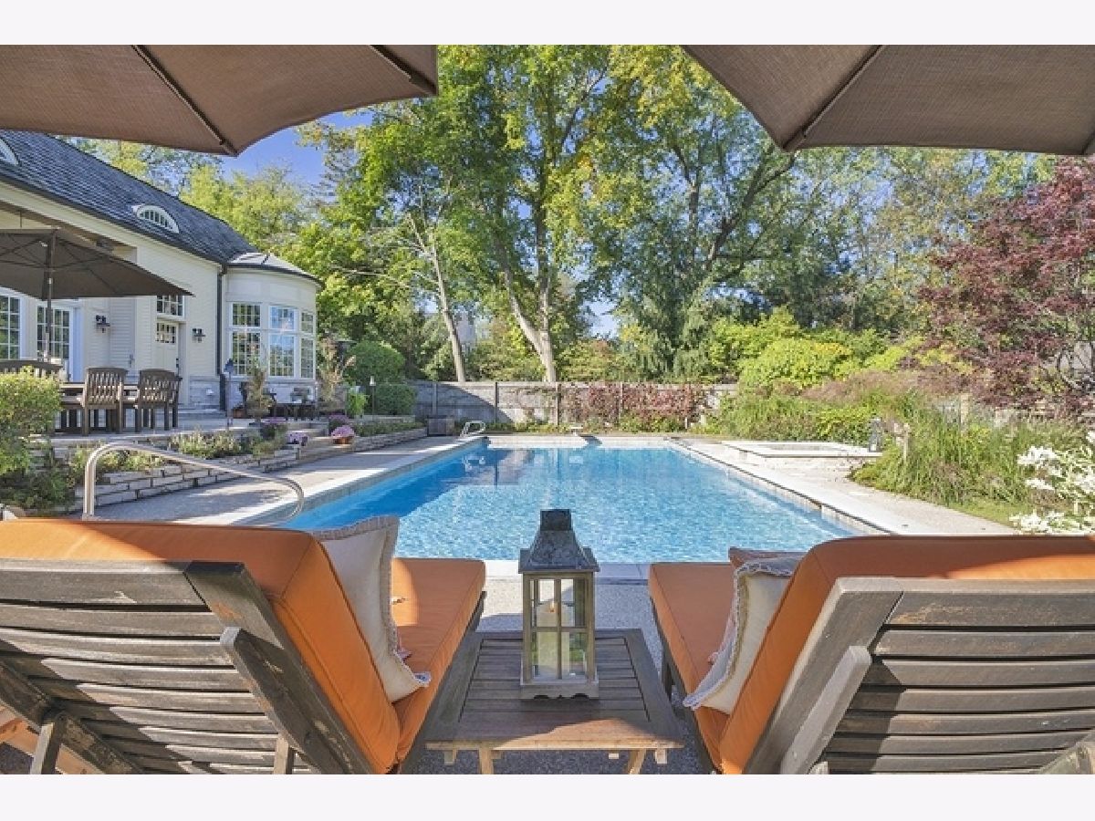Wake up in your own resort every day with a beautiful pool and spa overlooking North Shore Country Club golf course. The stunning curb appeal with maturely landscaped grounds make this one of Glenview's premier homes. Enter into the grand two-story foyer with rustic hardwood floors. The living room runs from the front to the back of the home with a fireplace with stone surround, and beautiful bay windows overlooking the pool and golf course. First-floor office with beam ceiling, stone accents, and tons of windows for great natural light. Dining area with a massive built-in banquet and wall of custom cabinetry. High-end kitchen with two-toned cabinets, a beam ceiling, and high-end appliances including a double Subzero refrigerator and a Wolf range with a unique stone cooking cave. A raised breakfast bar offers additional seating while the convenient mudroom/pantry offers great additional storage with built-in shelving and lockers. A beautiful double sided stone fireplace is located between the kitchen and the sun room offering a vaulted ceiling and walls of windows overlooking the pool and golf course. A transitional area features a built-in desk and cabinetry perfect for a homework area or second office. Conveniently located to the pool is a powder room with built-in lockers for storage and a second washer and dryer to service the pool and guests. A stunning two-story family room features two walls of built-ins, one for the television and media equipment and a second built-in desk flanked by shelves, and beautiful rounded window. The upper levels of the home have four bedrooms, four full bathrooms, and a laundry room. The huge private third floor master suite features a massive walk-in closet, and an en-suite bathroom with a light double sink vanity with quartz countertop and a stand-up shower. There are three bedrooms, three full bathrooms, and a laundry room on the second level including two additional private suites. Further expanding the living space is a large recently refinished lower level with light LVT wood-look flooring including a large game room, darling play room, second family room, exercise room/fifth bedroom, and a full bathroom with a walk-in closet. As stunning as the inside of the home is the backyard might be even better with an expansive paver patio, huge pool with a spa, tons of green space including a vegetable garden, and unbeatable views of the golf course.