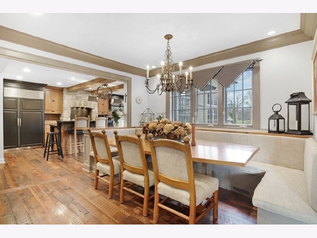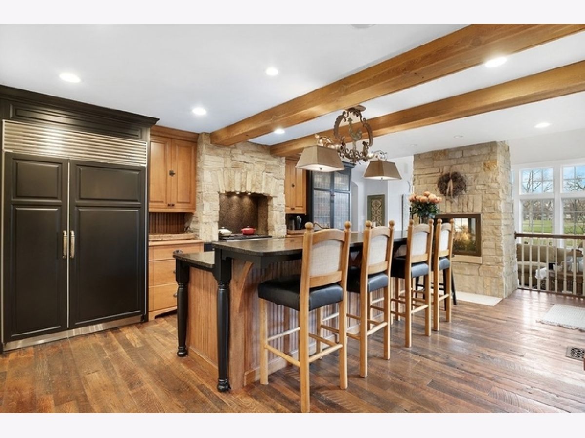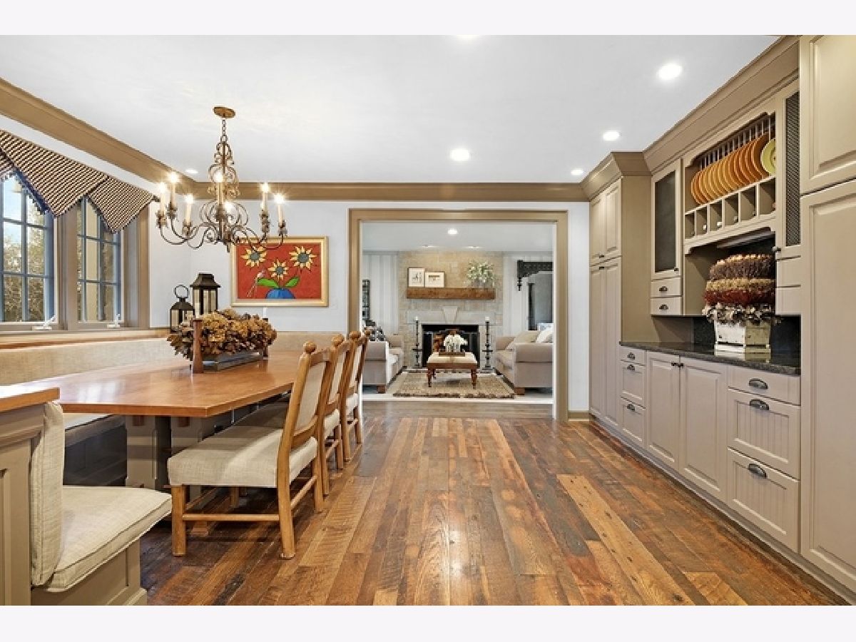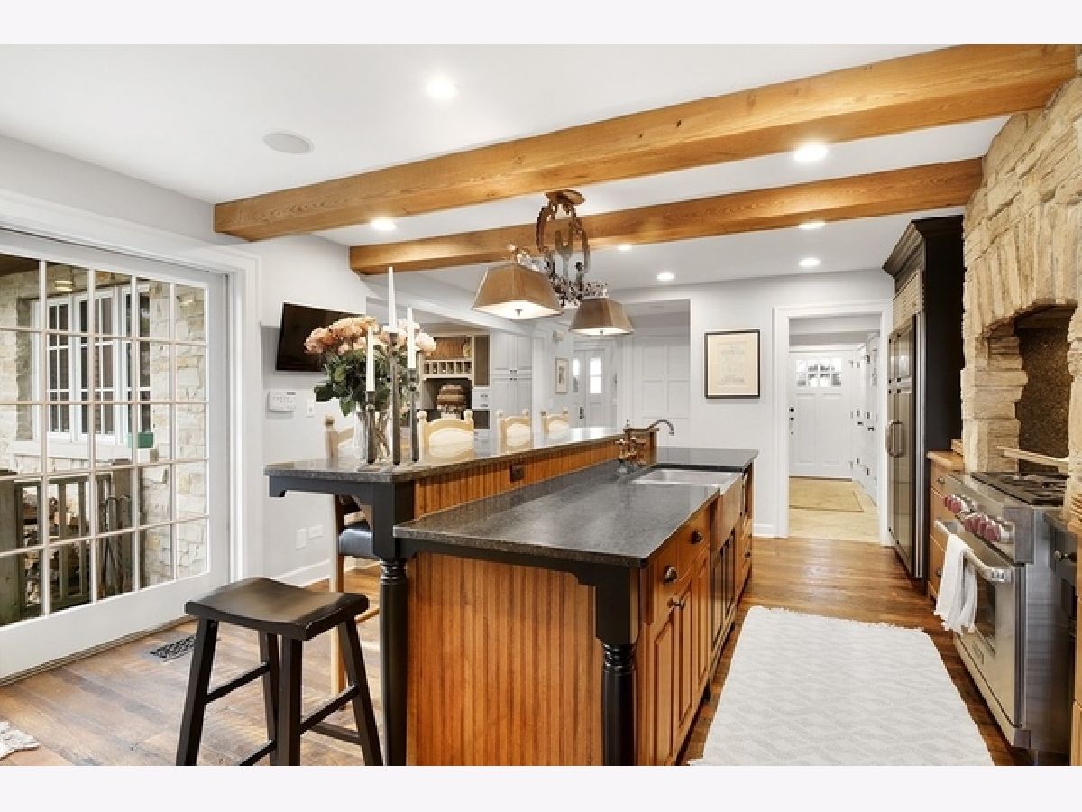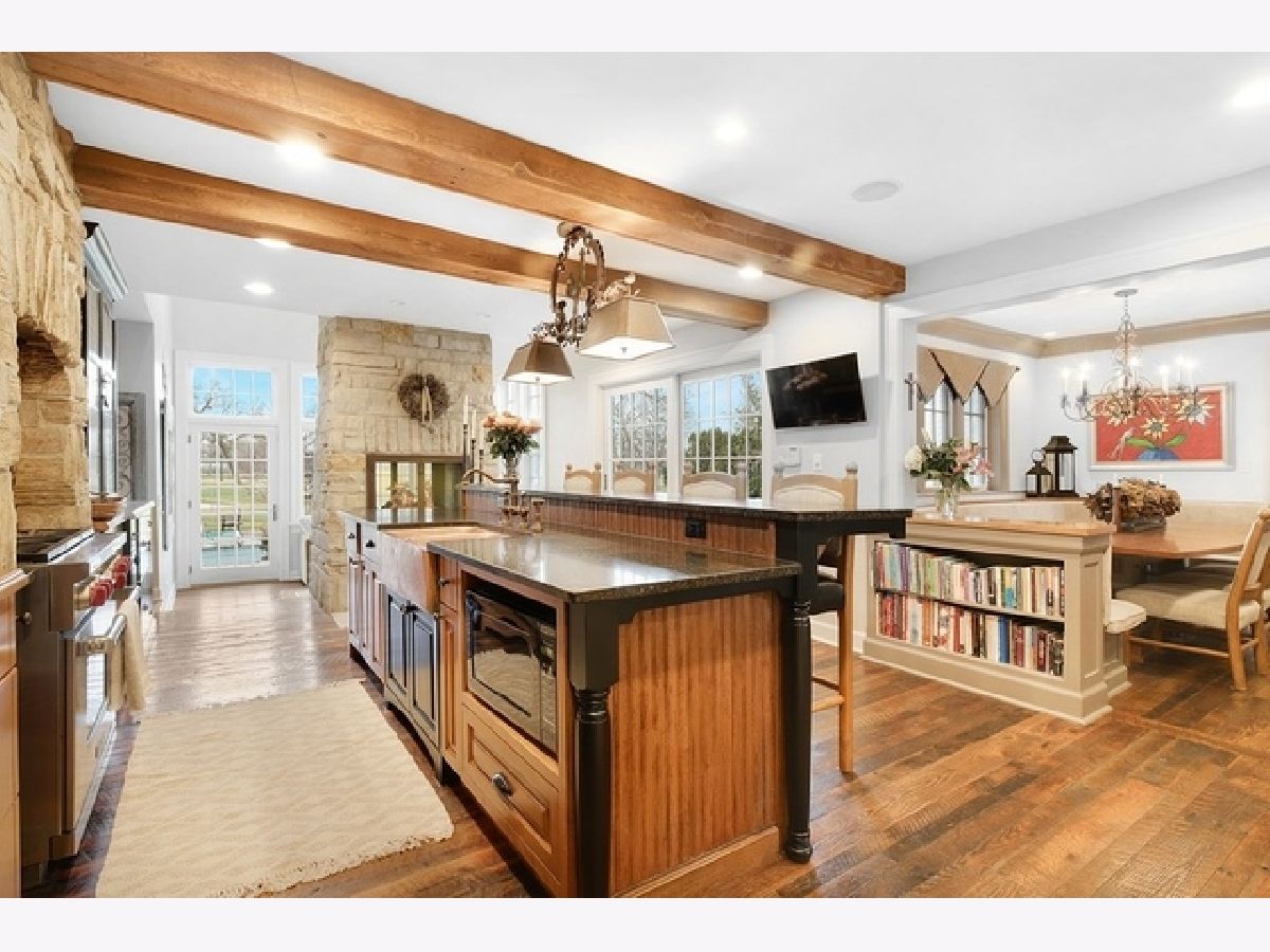 Wake up in your own resort every day with a beautiful pool and spa overlooking North Shore Country Club golf course. The stunning curb appeal with maturely landscaped grounds make this one of Glenview's premier homes. Enter into the grand two-story foyer with rustic hardwood floors. The living room runs from the front to the back of the home with a fireplace with stone surround, and beautiful bay windows overlooking the pool and golf course. First-floor office with beam ceiling, stone accents, and tons of windows for great natural light. Dining area with a massive built-in banquet and wall of custom cabinetry. High-end kitchen with two-toned cabinets, a beam ceiling, and high-end appliances including a double Subzero refrigerator and a Wolf range with a unique stone cooking cave. A raised breakfast bar offers additional seating while the convenient mudroom/pantry offers great additional storage with built-in shelving and lockers. A beautiful double sided stone fireplace is located between the kitchen and the sun room offering a vaulted ceiling and walls of windows overlooking the pool and golf course. A transitional area features a built-in desk and cabinetry perfect for a homework area or second office. Conveniently located to the pool is a powder room with built-in lockers for storage and a second washer and dryer to service the pool and guests. A stunning two-story family room features two walls of built-ins, one for the television and media equipment and a second built-in desk flanked by shelves, and beautiful rounded window. The upper levels of the home have four bedrooms, four full bathrooms, and a laundry room. The huge private third floor master suite features a massive walk-in closet, and an en-suite bathroom with a light double sink vanity with quartz countertop and a stand-up shower. There are three bedrooms, three full bathrooms, and a laundry room on the second level including two additional private suites. Further expanding the living space is a large recently refinished lower level with light LVT wood-look flooring including a large game room, darling play room, second family room, exercise room/fifth bedroom, and a full bathroom with a walk-in closet. As stunning as the inside of the home is the backyard might be even better with an expansive paver patio, huge pool with a spa, tons of green space including a vegetable garden, and unbeatable views of the golf course.