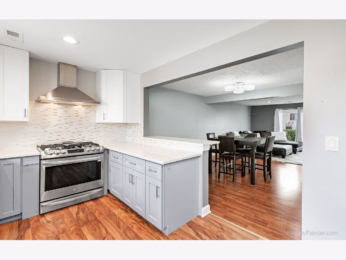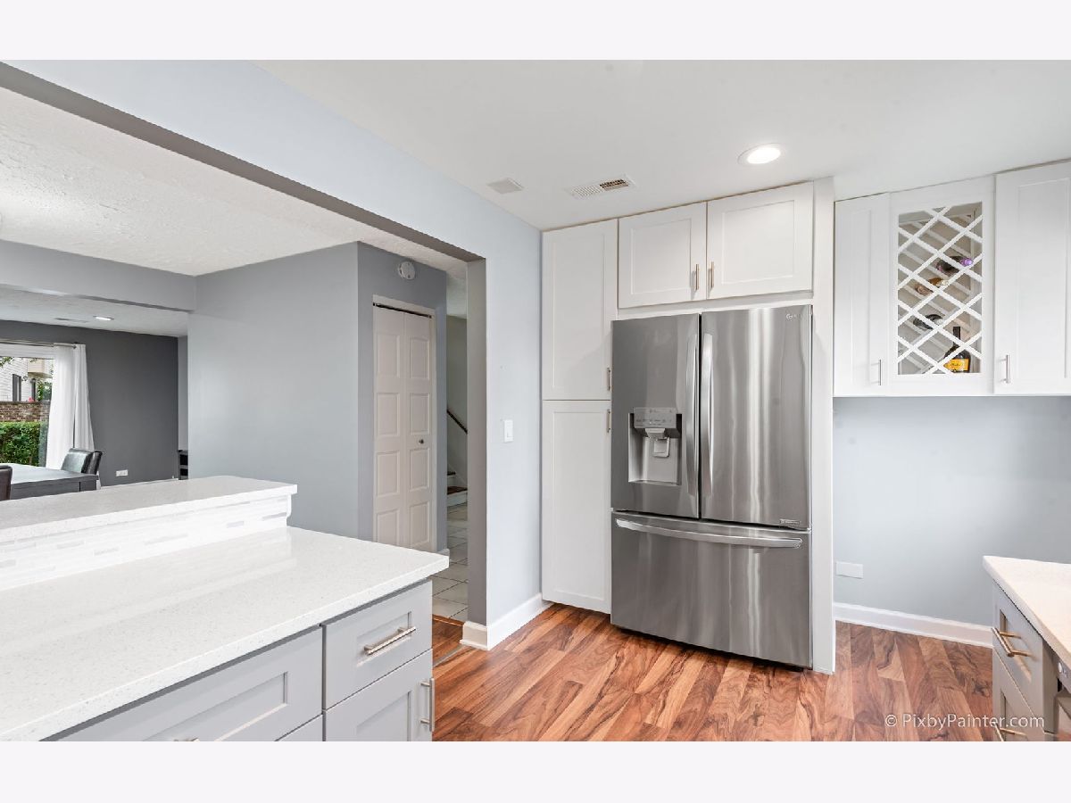 Come home to this beautiful, gorgeous,spacious 1767sq. feet townhome with nothing to do but move in. Light-filled and extra large 3 bedrooms 2 bathroom with open floor plan to entertain, features a contemporary beautiful quarts kitchen with eat-in seating open to the dining area and living room. Total of 3 parking spots- extra wide driveway for two cars plus one in the garage which is the size of garage and a half. Kitchen cabinets are soft-close, with pullout pantry, stainless steel appliances, gas stove with convection oven, pullout seasoning cabinet, including a wine rack. Wonderful in-law arrangement where the 3rd bedroom is on the main floor with a sliding door to a private patio. You also get another sliding door to the private patio from the living room. Another patio is upfront which is gated. All bathrooms are tiled with soft close toilets seats, MegaBai shower heads, and upstairs bathroom has freestanding vanity with push cabinets and modern faucets plus extra storage. Both bathrooms have touch light mirrors. House has a central water filter to enjoy drinking,cooking or showering. Control your temperature directly from your phone. New AC,furnace, air cleaner, and humidifier. Utility room is separate and very large with Sensor Light and has extra storage. Washer and dryer stay along with all appliances. Enjoy plenty of storage space everywhere. Laminate flooring throughout. Low home owner dues, and the association takes care of the pool,clubhouse, common areas, lawn care, outside, scavenger, snow removal, roof and signing, which was done about 3 years ago. Close to Elgin, Ohare , freeways, parks and shopping. Check out the video and 3D tour. All you need is to move in!