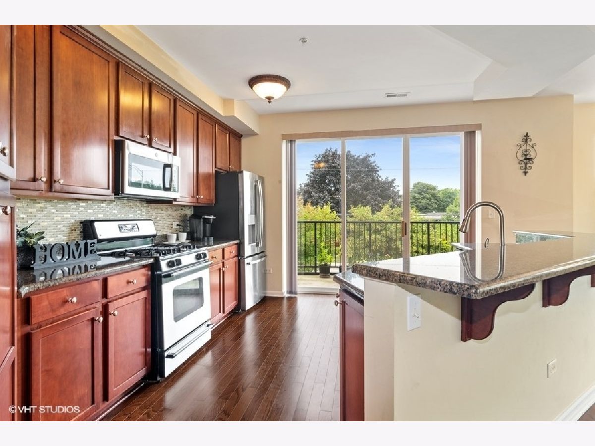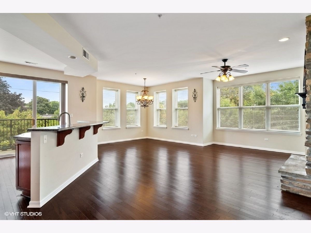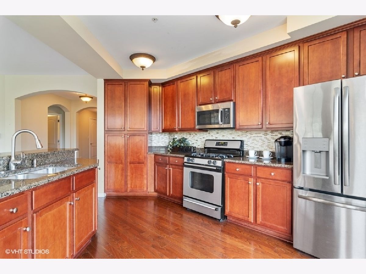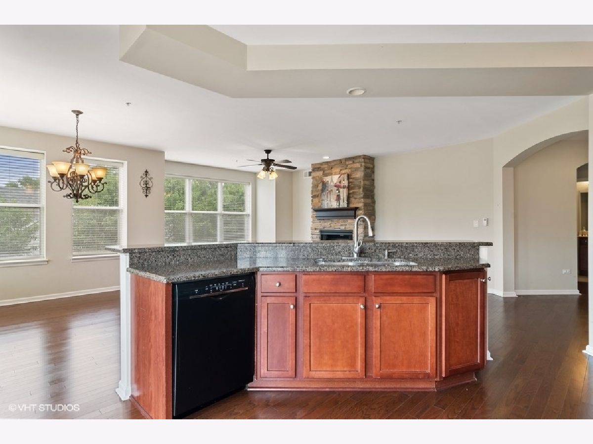 Bright end unit condo with 2BR + Den/Office, 2 bath and 1 indoor, heated garage space! Interior is in excellent condition! Open floor design! Hardwood floor in foyer, living room, eating area and kitchen! Spacious living room with fireplace and open to the kitchen and eating area! Upgraded kitchen with 42" maple cabinets, granite counter top and newer appliances! Master suite with private bathroom, large shower, soaking tub and walk-in closet! 2nd bedroom with hallway bath, and den/office. One of the largest unit in the building. Private balcony! Excellent location! Walking distance to Jewel/Osco, ACE Hardware, New Costco, restaurants! Easy access to I-88 and train station! Elevator in building! Rare found condo in Naperville! Move-in condition!