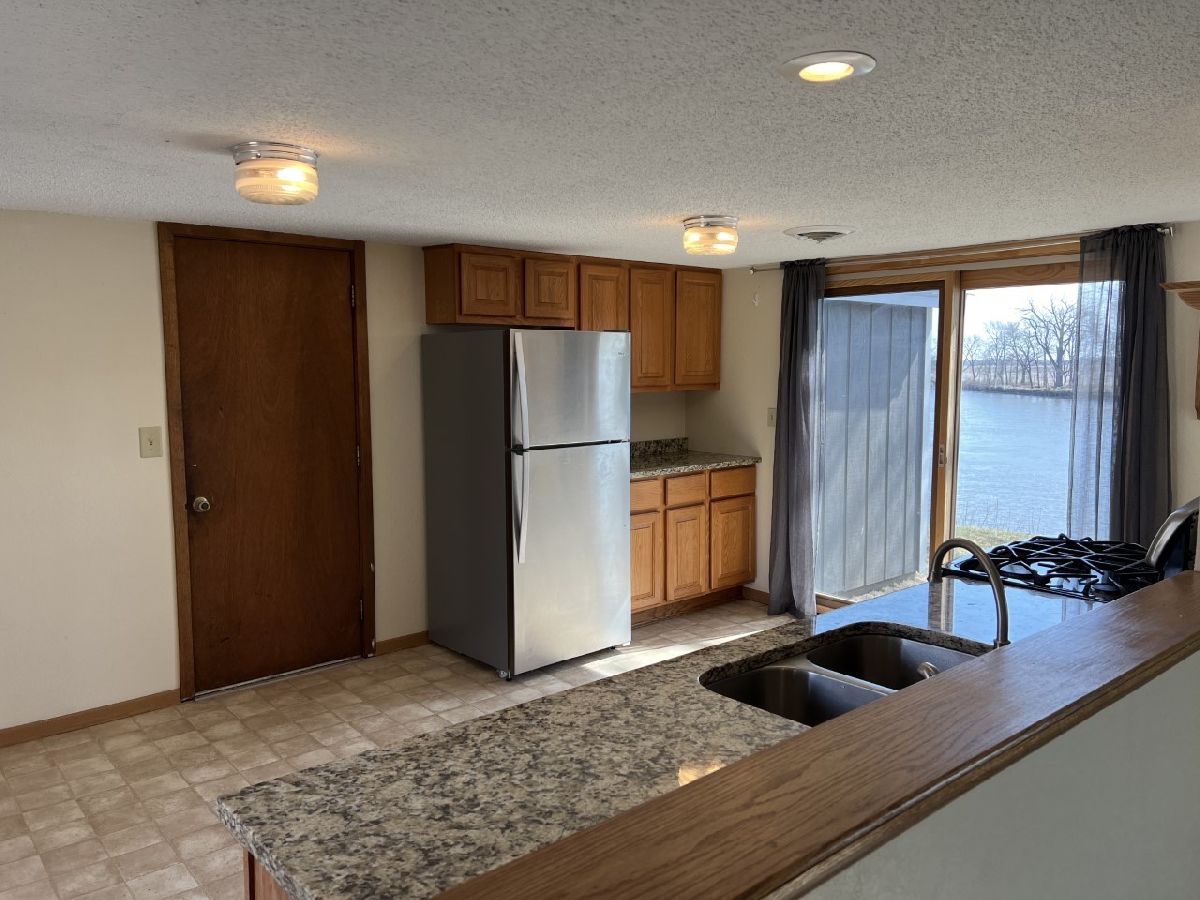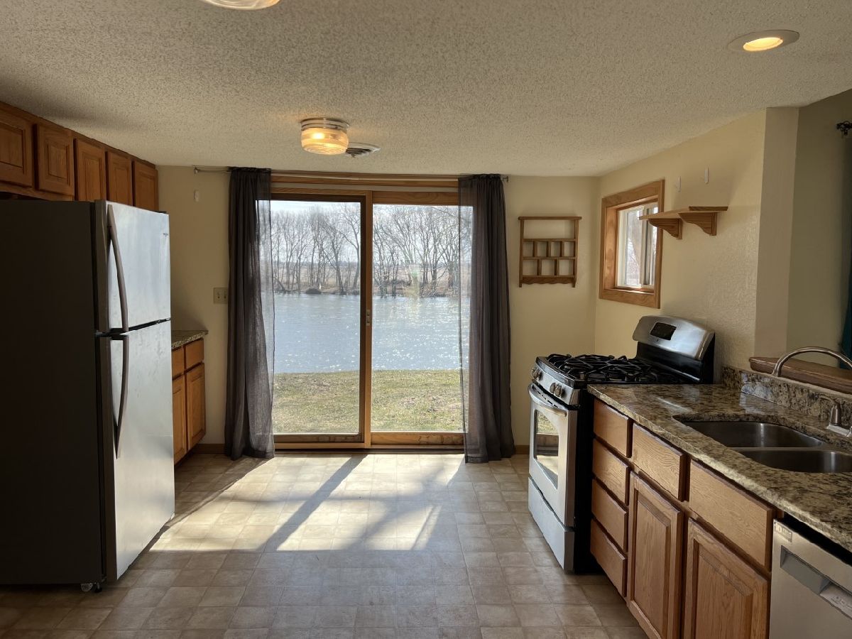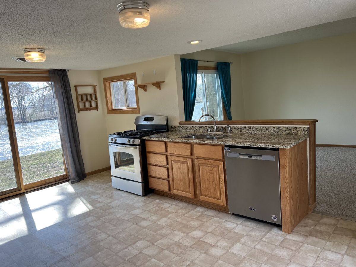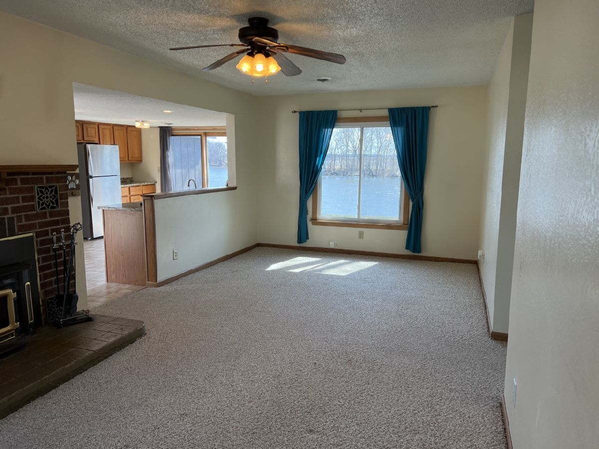 Beautiful river front retreat! Situated on 2 lots this home offers 148' of Rock River Frontage. The eat-in-kitchen overlooks the living room and offers beautiful river views, access to the backyard, stainless steel appliances and granite countertops. The living room has a wood burning fireplace that can heat the entire house. Wake up to river views in your master bedroom which also has outside access. The updated bathroom has a double sink and marble tile floors. The attached garage offers plenty of storage. Newer windows, doors and flooring throughout. Partial new roof in 2020. Furnace 2019. All appliances included : 2015 stove, 2019 refrigerator, 2022 dishwasher. City water with new line from street to house in 2015. Private septic with a new baffle and cover in 2019. Don't miss out on this awesome property!