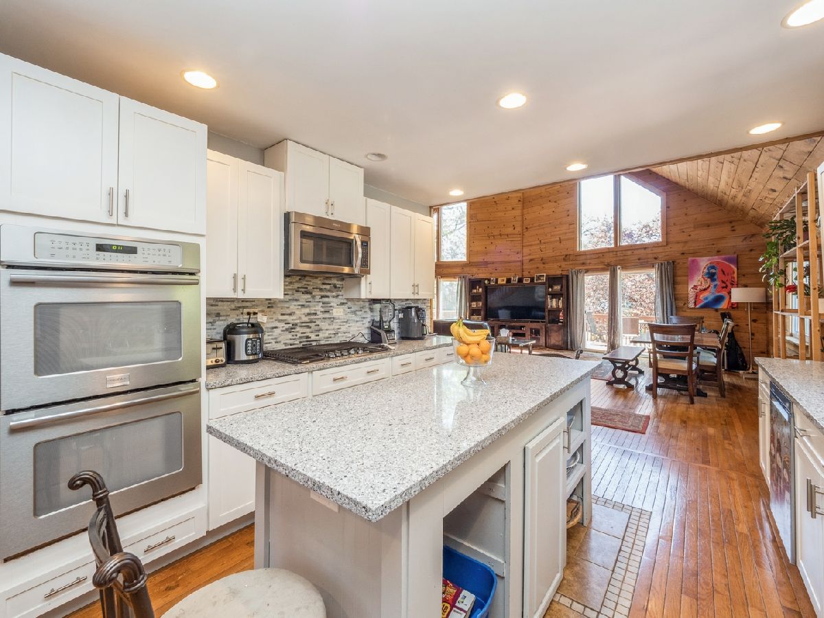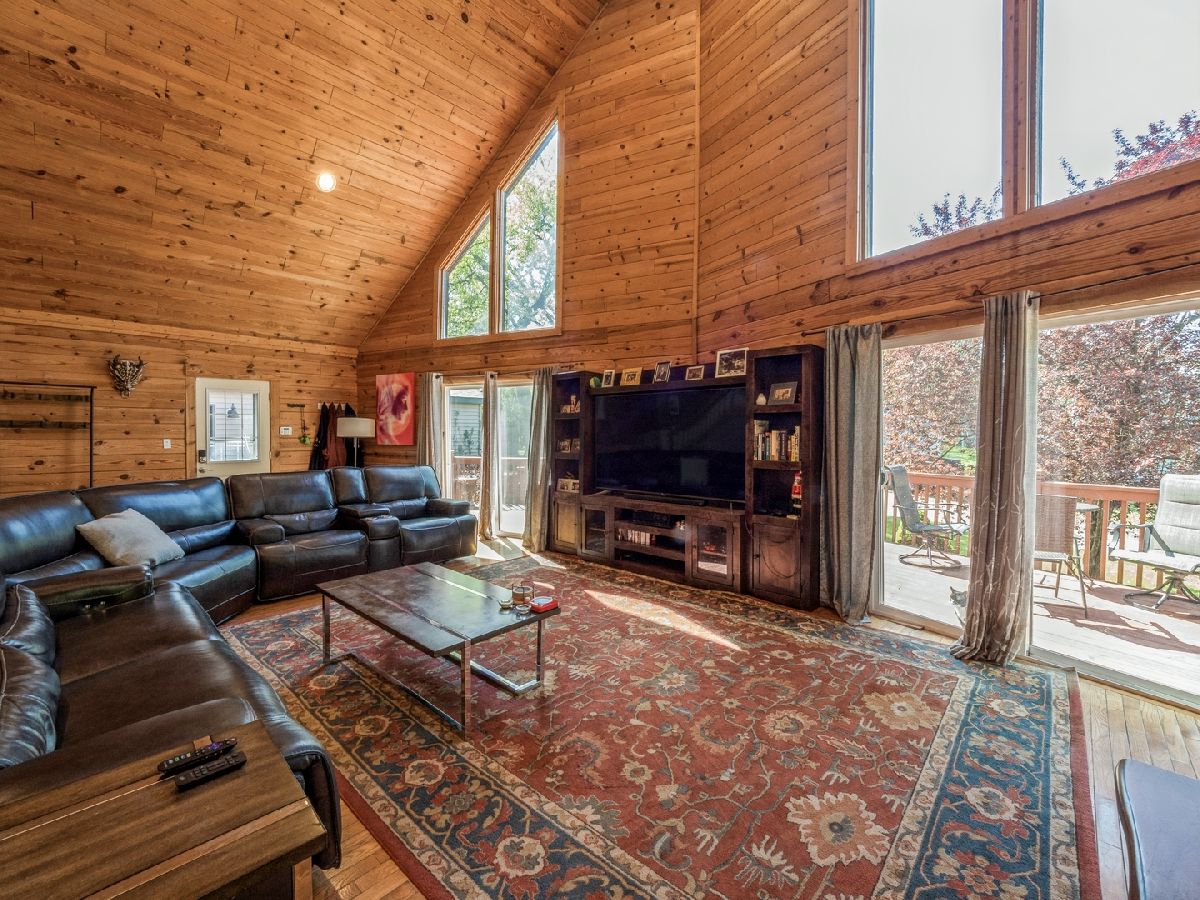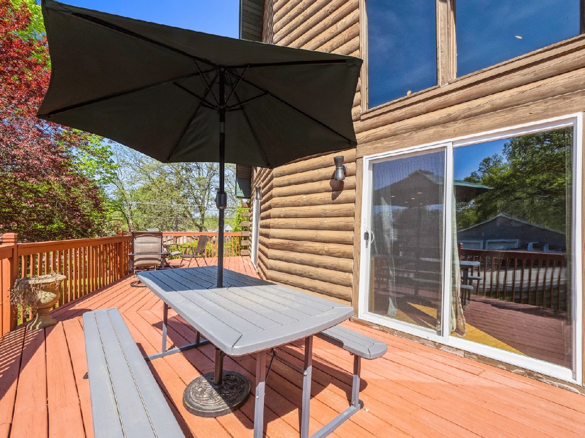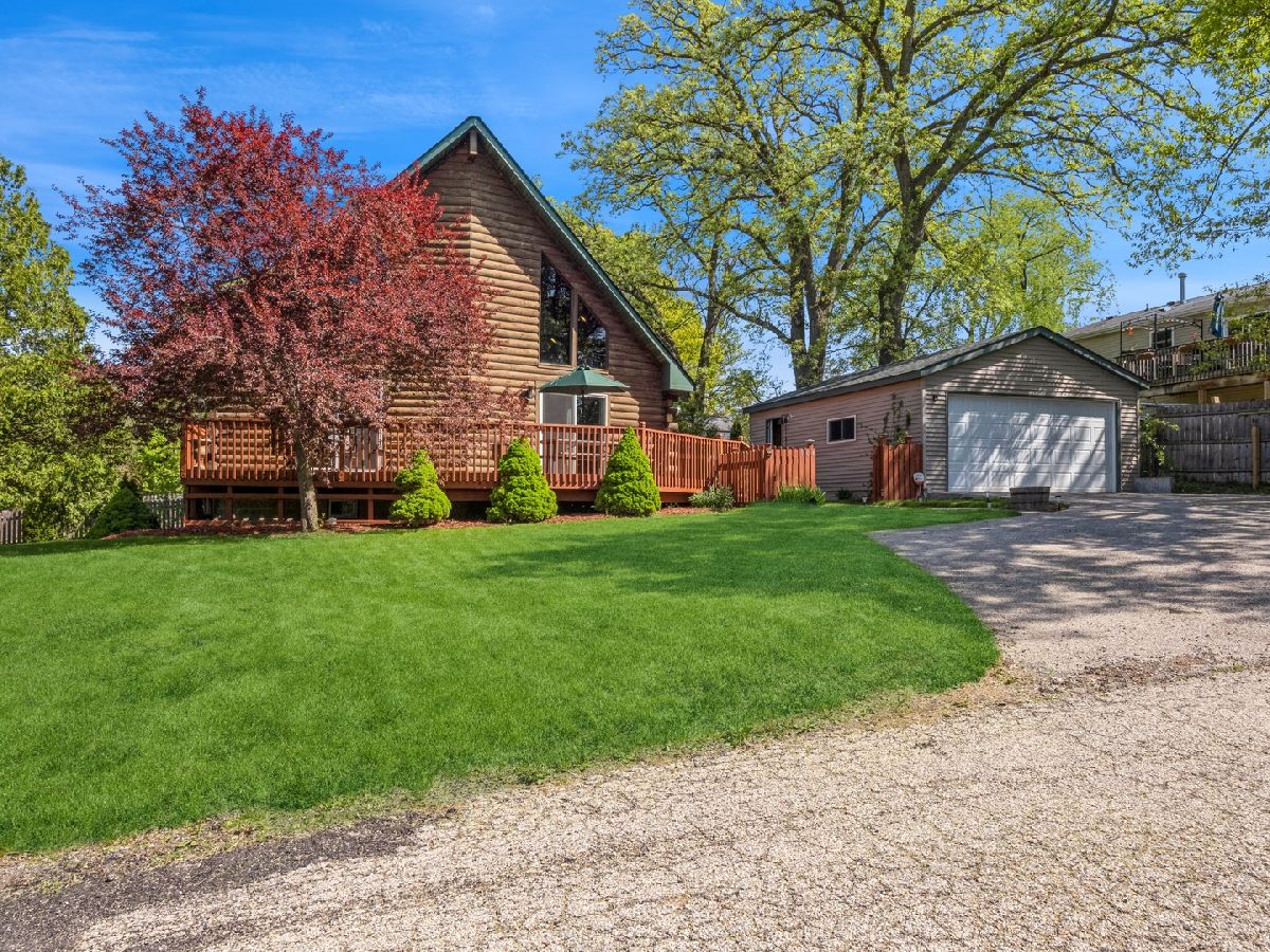 Welcome to this stunning log home in the serene town of Lakemoor, IL. With a unique aesthetic and beautiful finishes, this home is sure to impress. As you approach the house, the inviting front porch and wooden exterior beckon you inside. Once entered, the open living area will take your breath away with its soaring ceilings, perfect for enjoying cozy evenings with family and friends. The main level offers a bedroom with a full bath and large closets, as well. The gourmet kitchen boasts granite countertops, stainless steel appliances, and a large island that is perfect for entertaining. The dining area completes this space, offering picturesque views of the wooded surroundings. The walkout lower level is full of surprises, offering an additional bedroom and full bath, along with a large family room/ game room area. Step outside to the expansive patio, which offers plenty of space to host summer barbecues and enjoy nature. Located in a quiet community, this home is a peaceful retreat from the hustle and bustle of everyday life. Experience the modern amenities while enjoying the rustic charm of a log home. Don't miss your chance to see this one-of-a-kind property!