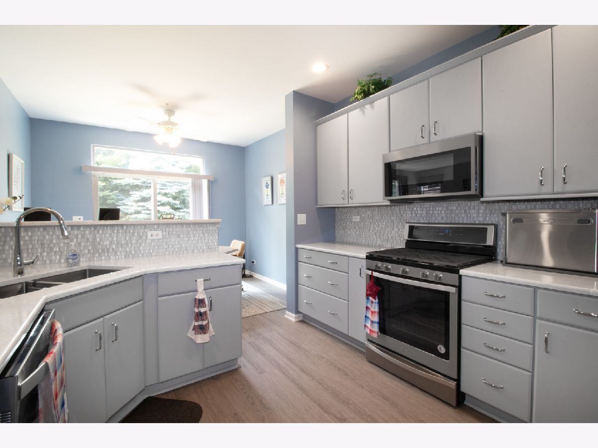 We have received multiple offers. Highest and best is due at 4:00 on Sunday August 13. Beautiful, updated, and sunny! Fall in love the moment you walk in the door of this remodeled end unit with large open area adjacent. Bright new kitchen (2018) features stainless appliances, quartz counters, and overlooks the breakfast room with sliding glass doors to the patio. Spacious living room plus formal dining room (currently used as music room) is perfect for entertaining. Beautiful master bedroom boasts huge walk-in closet plus remodeled bath with walk-in shower with seat and double sinks (2016). Convenient second floor laundry, sharp vinyl plank flooring throughout much of home. Generous closets and custom window treatments throughout; please exclude valances in master bedroom. New furnace and central air 2022, hot water heater 2020, roof 2017, washer and dryer 2020, guest bath 2019, guest full bath 2016. Nothing to do but move in and enjoy! Close to shopping and expressways, acclaimed schools! You're home!