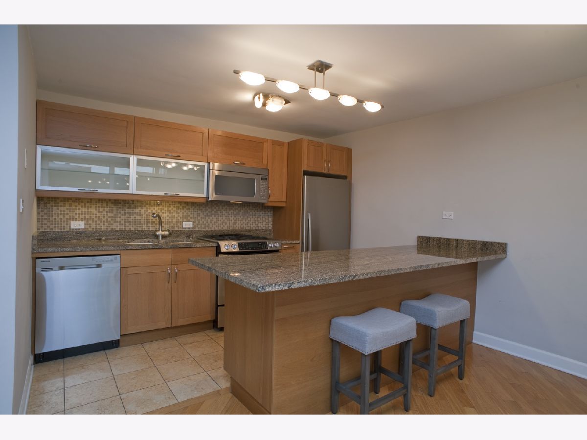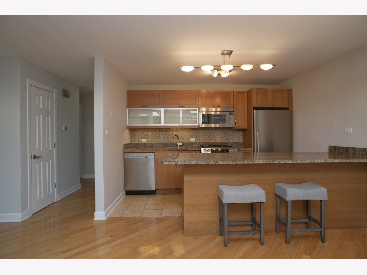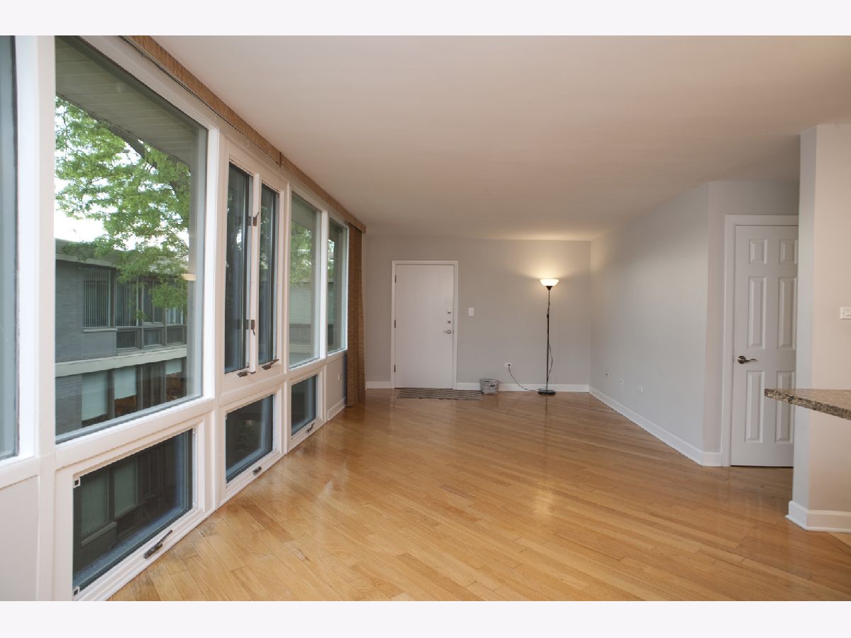 Midcentury and Modern! Love open concept, big windows, big bedrooms, and many closets? Looking for smart style? Look no further! Vacant, clean, updated and upgraded, and MOVE IN READY! Large open living and dining - this is a great entertaining space with top-floor views of the lovely landscaped courtyard. The kitchen has an almost 9' island, with seating and amazing cabinet space. Beautiful granite, stainless appliances with Fisher Paykel Fridge, great counter space and under cabinet lighting. Updated bath has a spa feel with marble flooring and travertine tile + clean, modern style. 3 Hall closets, newer doors, and hardwood floor with radiant heat means cozy on the feet in winter. Two huge bedrooms with exceptional closets and custom storage systems + newer windows. You will love the included covered parking space - and the exceptional location near the Green Line and Metra + across from Austin Gardens and a block from Trader Joes and Downtown Oak Park fun. This is a Gem!