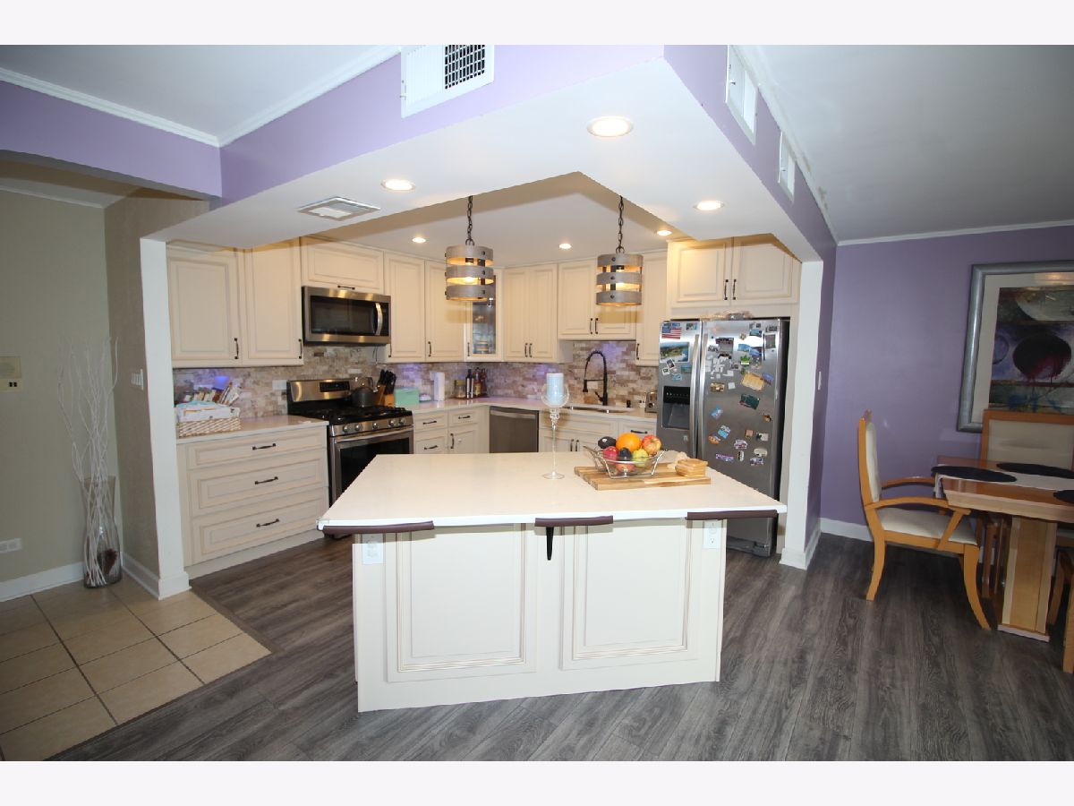 Completely remodeled in 2018. Spacious and bright 2 bedroom, 1.5 bath condo. Beautiful open floorplan with vinyl plank flooring. In-unit laundry. Kitchen with modern cabinetry, Quartz countertops, island, stainless steel appliances, recessed and undercabinet lighting and stone backsplash. Tastefully remodeled baths, good-sized bedrooms with large closets. Nice balcony. New washer, dryer and water heater all in 2020. Storage in basement. Bright unit in very well maintained building. Close to good schools, Metra and Oak Lawn City Hall. Nothing to do but move in and enjoy.