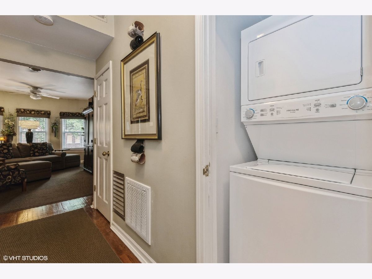 Beautiful courtyard views in rehabbed central air conditioned 2 bedroom 1.1 baths on first floor with open floor plan. Great for entertaining. Hardwood floors thru out with good closet space. High ceilings. Baths updated with heated floors. Full bath with large soaking tub/shower combo shared between 2 bedrooms or close off one bedroom. How fabulous to have an additional 1/2 bath (powder room). Stackable washer/dryer in unit. Open living room with wall of windows leads to large separate dining room also with wall of windows. Spacious kitchen with cabinets galore with newer SS appliances. Backdoor leads to common area completely fenced. Large floor to ceiling storage space in basement outside back door. Great location (Edgewater Glen) in very well maintained building. Close to lake, restaurants, shopping, Whole Foods, public transportation (steps to the Granville & Thorndale Red Line), Edgewater Public Library & Loyola University. Rental parking space is transferable to new unit owner. Pets are allowed but restrictions are 2 cats and 1 dog maximum per unit. Dog weight can't exceed 30 lbs. Owner must be resident for the first 2 years of ownership. WELCOME HOME FOR THE HOLIDAYS!