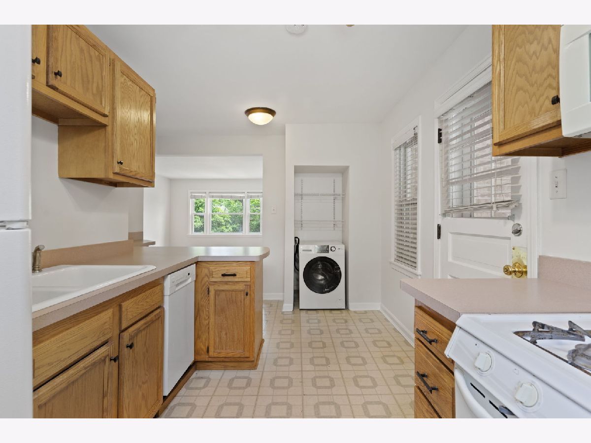 The has-everything-you-need solution has arrived! This is an in-city 2BR/1BA *with* parking, *and* in-unit laundry, walking distance to Metra, accessible to CTA, 30 mins to city center by car, 40 minutes by train, in a *fantastic* school district. Situated in a beautiful, well-maintained red brick building in the lush community of Beverly Hills, this unit features bright, airy rooms, comfortable living space, neutral decor, and hardwood floors throughout. The generous living room features custom blinds, and opens to the kitchen, where you'll find good workspace, plenty of cabinets for storage, a fresh, white appliance suite, and ceiling fan. The primary and junior bedrooms have lots of closet space and get east/west light. The full bath has ceramic tile flooring, porcelain soaking tub with custom surround, and oak sink base and vanity with globe lighting. New (2025) washer/dryer combo in unit, GFA/CA, assigned parking at rear, private lot, storage in basement. The entire unit has been freshly painted, deep cleaned, and is move-in ready. It's your turn, and this is it.