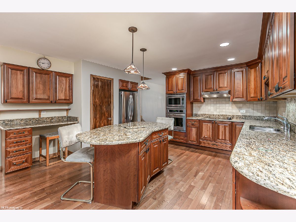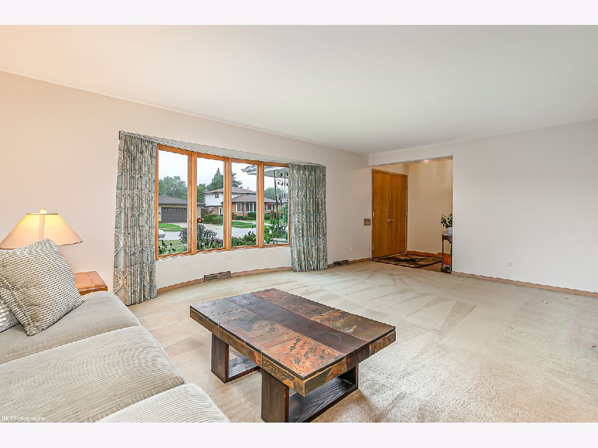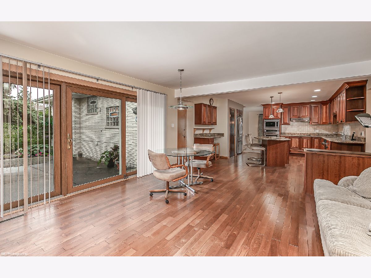 Gorgeous 3 bedroom 2.5 bath Oak Lawn all face brick three step ranch has 2,170sf above grade and is located one block from Kolmar elementary school! This home features breathtaking landscaping, gleaming hardwood floors, 6 panel white doors, welcoming foyer with two closets, a bright living room, formal dining room. Spacious, renovated gourmet eat in kitchen with cherry cabinets, granite countertops, tile backsplash, stainless steel appliances, huge island, built in desk, pantry closet and pendant lighting. The kitchen overlooks the inviting family room with stone fireplace and sliding doors to the patio. The main level has a full bath with walk in shower and beautiful ceramic tile work as well as a convenient full sized laundry room! The second level features a huge master bedroom with dual closets, two additional spacious bedrooms with dual closets and a full bath with tub/shower combination. The newly refinished basement has a rec room with bar, office, updated powder room, recessed lighting, newer vinyl plank flooring and access to the crawl space. Double wide concrete driveway leads to two car attached garage. The fenced yard has gorgeous, lush landscaping and a paver patio. Newer: basement remodel (2021), central air and US waterproofing (5-6 years), windows (7 years), water heater (12 years), roof, sump pump (13 years) and furnace (2005/2006). Hardwood under living and dining room carpet, per the seller. Fantastic location near Kolmar elementary school, shopping, restaurants, parks and quick access to I-294!