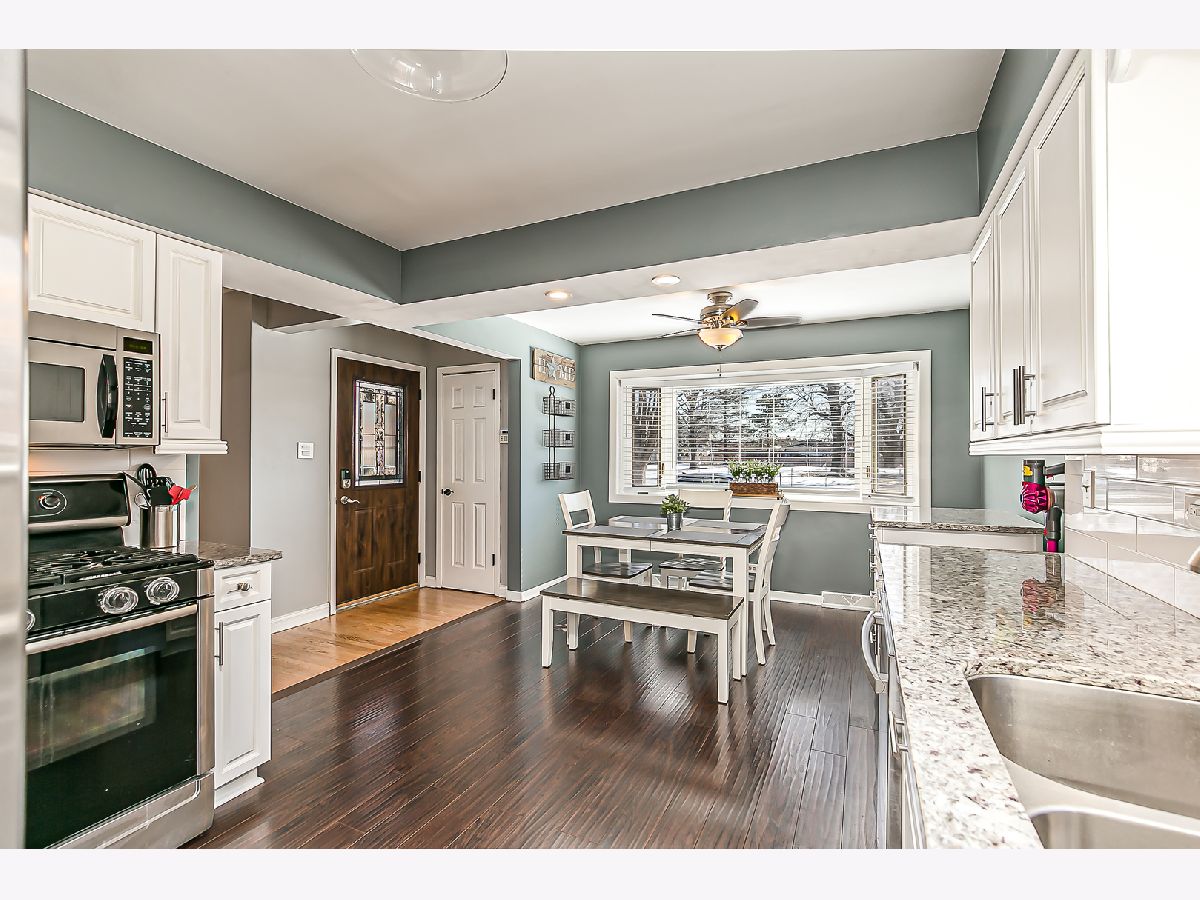 ***Multiple offers received. Highest and best offers due by 3/8/21 at 12pm.*** Gorgeous 3 bedroom 2 bath Oak Lawn Juliet split level in Kolmar school district features vaulted ceilings, hardwood floors, a bright living room, beautiful eat-in kitchen with white cabinets, granite countertops, stainless steel appliances, subway tile back-splash and pantry. The second level has three good sized bedrooms, modern bath and large storage closet. The lower level has an inviting family room with recessed lighting, wood burning fireplace, full bath with custom tiled walk in shower, laundry room, access to crawl space and exterior access. Large fenced back yard with brick paver patio and gazebo. Concrete side drive leads to brick 2.5 car garage. Newer roof tear off (2020) and newer sump pump. Great location near Kolmar school, Starbuck's, Mariano's, restaurants, shopping and quick access to I-294!