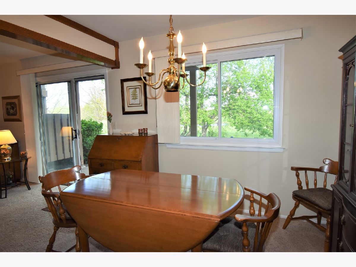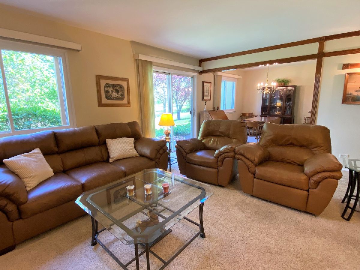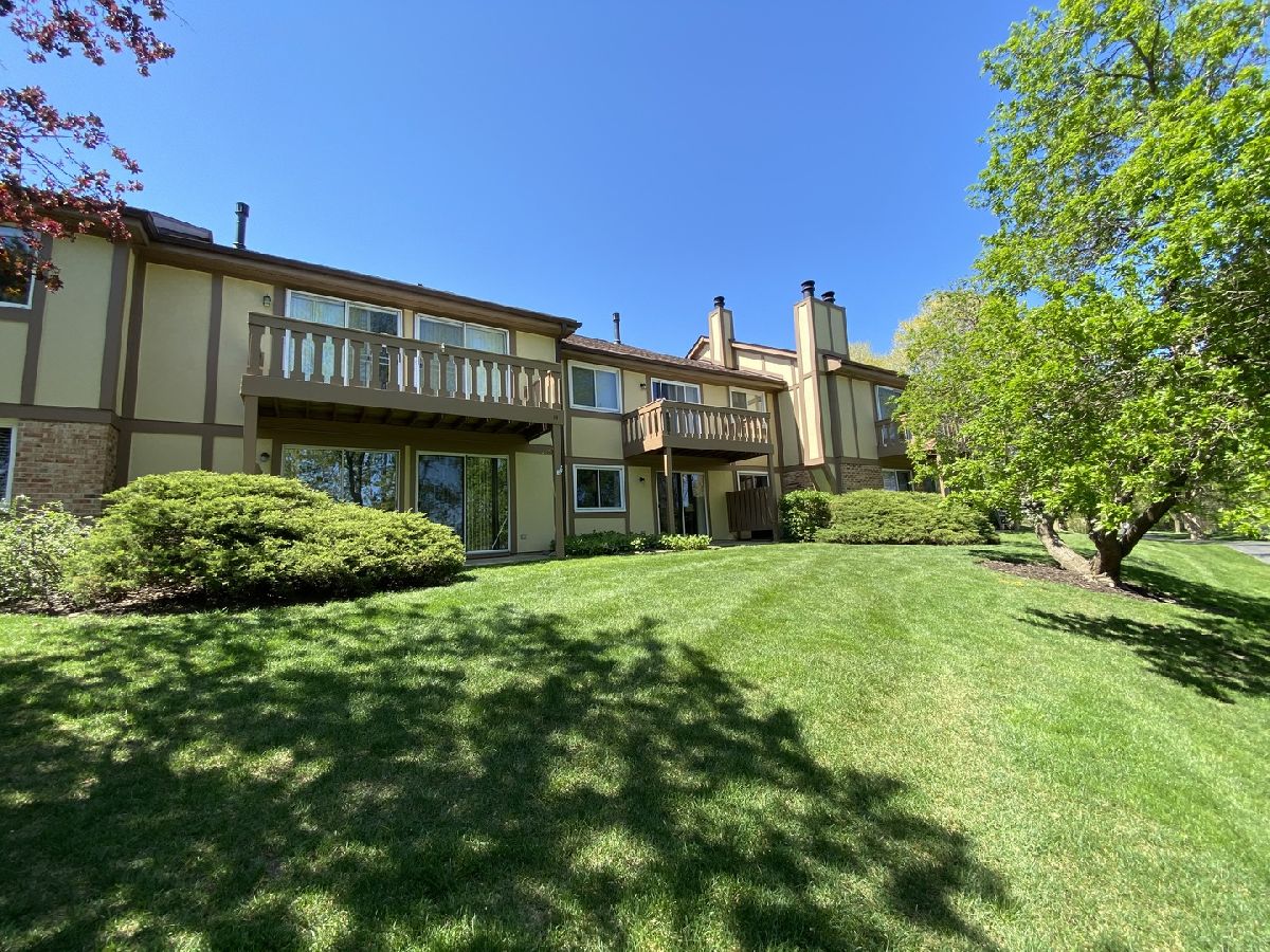 Picturesque location for this well-maintained First Floor unit in Lexington in the Park! Large eat-in Kitchen with Pantry and table space, Dining Room, and spacious Living Room. Good size Master with Walk-In Closet. Second Bedroom also works great for home office! Updated Windows. Laundry Room has full-size Washer/Dryer. Enjoy summer on the Patio looking out onto lush greenery and view of the golf course. Quiet setting for your enjoyment! Easy access to walking paths and newly enhanced Buffalo Creek Forest Preserve. Award-winning Elementary School District 96 plus Stevenson High School!