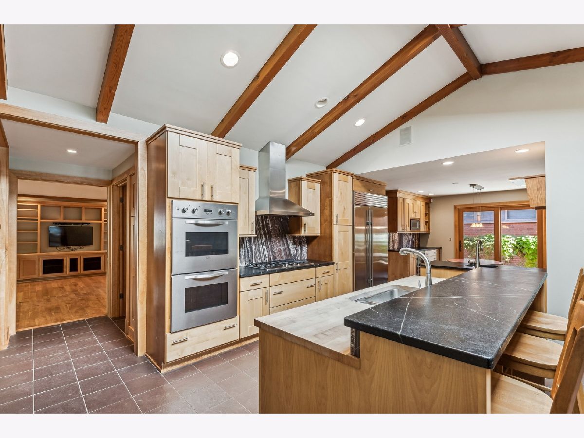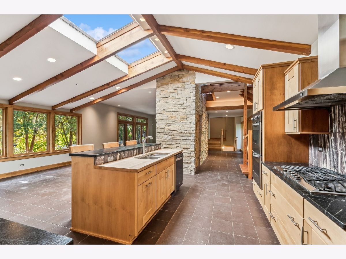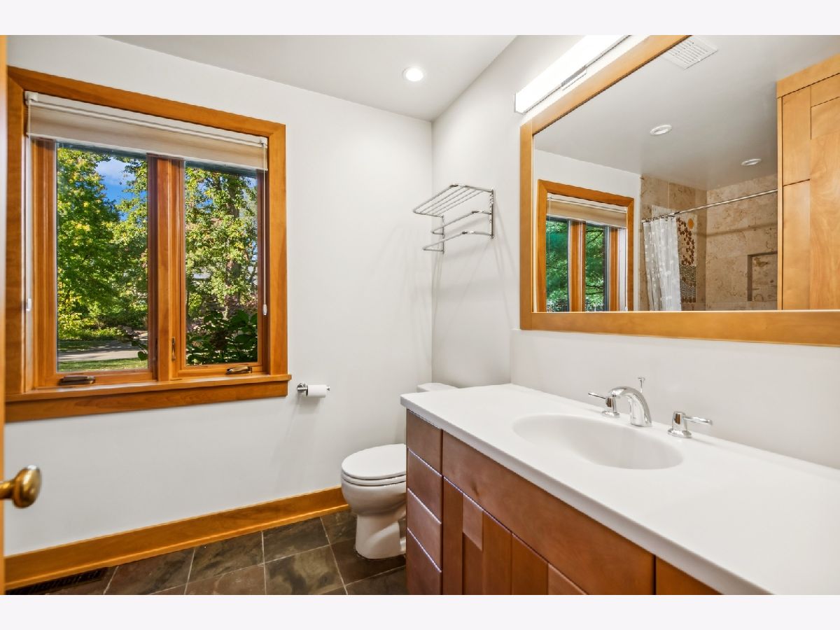 Stunning 4 BR 4 BA Mid-Century Modern Home in the heart of River Forest is completely updated and expanded. Sensitive but creative design by Tom Bassett-Dilley Architects and build-out by the craftsman at Von Dreele Freerksen. The updates included Marvin Windows, Kitchen, bathrooms, roof in addition to geothermal heating and cooling plus solar for total energy efficiency! Sought after open floor plan is accentuated with big windows, skylights, a huge crab orchard stone fireplace and Vermont slate in the main part of the 1st floor. Enjoy the open kitchen layout with island seating. The kitchen flows into the breakfast room with additional cabinetry and patio door for easy access to the BBQ. Large Laundry/Utility room off this space for total convenience. The first floor also features an extra large family room and full bath, which if needed could be used as a first-floor bedroom. The top-floor primary bedroom addition has a walk-in closet, en suite bath, and an office with treetop views. Off the main floor up 4 stairs find three more bedrooms, which include a second primary bedroom with an en suite bath plus a full hall bath, with artful tile. Head downstairs to the partially finished, dugout basement, which awaits your creative ideas. Stubbed for an extra bath this space could be an additional family room, game room, bedroom or two, 2nd home office, or gym. This huge space has ample large windows and ceiling height. There is also a door to the outside. This house can live like a ranch, a big or small home, and is absolutely ideal for entertaining!