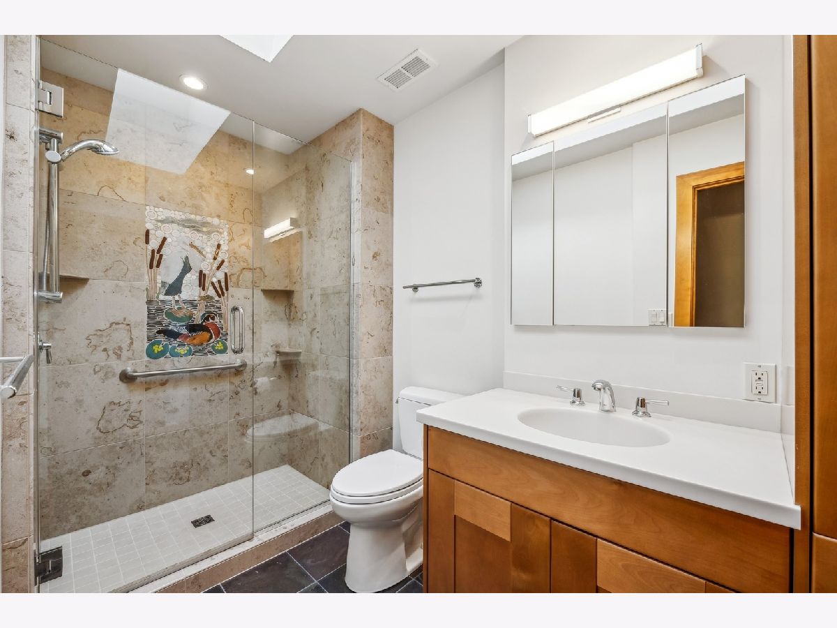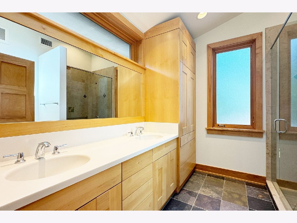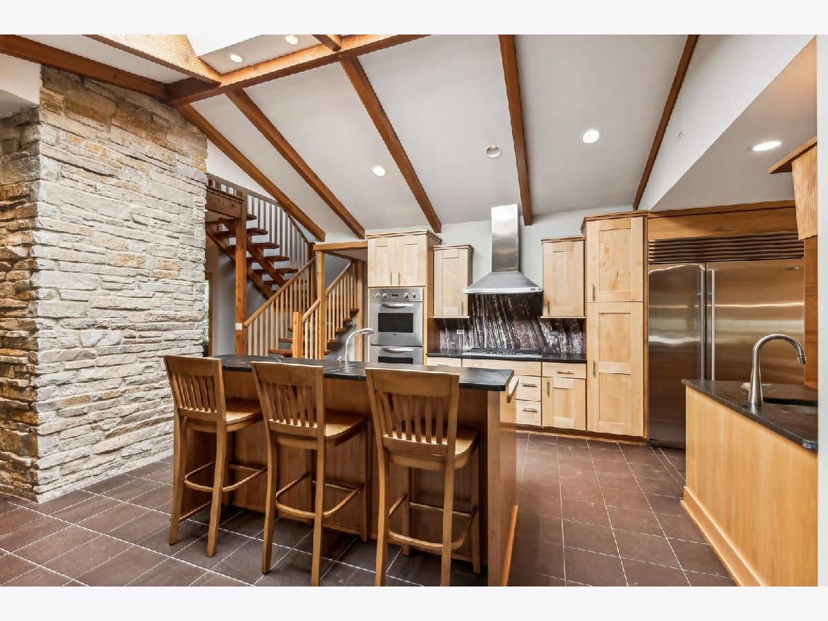 Stunning 4 BR 4 BA Mid-Century Modern Home in the heart of River Forest is completely updated and expanded. Sensitive but creative design by Tom Bassett-Dilley Architects and build-out by the craftsman at Von Dreele Freerksen. The updates included Marvin Windows, Kitchen, bathrooms, roof in addition to geothermal heating and cooling plus solar for total energy efficiency! Sought after open floor plan is accentuated with big windows, skylights, a huge crab orchard stone fireplace and Vermont slate in the main part of the 1st floor. Enjoy the open kitchen layout with island seating. The kitchen flows into the breakfast room with additional cabinetry and patio door for easy access to the BBQ. Large Laundry/Utility room off this space for total convenience. The first floor also features an extra large family room and full bath, which if needed could be used as a first-floor bedroom. The top-floor primary bedroom addition has a walk-in closet, en suite bath, and an office with treetop views. Off the main floor up 4 stairs find three more bedrooms, which include a second primary bedroom with an en suite bath plus a full hall bath, with artful tile. Head downstairs to the partially finished, dugout basement, which awaits your creative ideas. Stubbed for an extra bath this space could be an additional family room, game room, bedroom or two, 2nd home office, or gym. This huge space has ample large windows and ceiling height. There is also a door to the outside. This house can live like a ranch, a big or small home, and is absolutely ideal for entertaining!