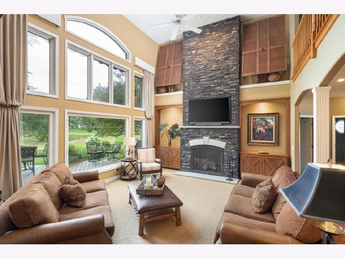 CAPTIVATING from the curb and STUNNING the moment you open the door! This IMPRESSIVE executive home on the golf course in Stonebridge offers EXQUISITE architectural details and fine craftsmanship throughout! Exterior front offers a blue stone sitting area as well as a blue stone covered porch entry, 3 car garage and a lift for a fourth. The two-story foyer has a split Y staircase and leads you to a wide open kitchen/family room/sun room space, the ideal floor plan for entertaining that everyone is looking for! The two-story family room has a GORGEOUS wall of windows that looks out to golf course views and a visually stunning fireplace that has been redone with grey brick front flanked by cabinetry and cypress shutters. All granite and stainless kitchen offers a butler pantry, new coffee station, spacious island, Subzero cabinet front fridge and KitchenAid appliances with cook top and hood, updated walk-in pantry, filtered and chilled water dispenser, and loads of soft close cabinetry. Main level private office has golf course views, coffered ceiling, built-in desk for two, and closet (could serve as a 5th bedroom if needed as it is adjacent to a full bath.) Living room, dining room (currently set up as a lounge room), and laundry room are all on the main level. Elegant master suite offers more SOARING fairway views, a tray ceiling, and an elegant travertine and stacked limestone wall with TV, fireplace and coffee bar. Barn doors lead you to the redone master bath with its jetted corner tub, dual vanity, shower with side jets, vaulted ceiling and skylight, plus an absolutely amazing walk-in closet with loads of drawers, shoe space and two-tier hanging space throughout. Walk-in attic space off the master closet plus an ultra quiet attic fan in the master bedroom. Bedrooms 2 and 3 have tray ceilings and ample closet space, both served by an updated Jack and Jill bath. 4th guest bedroom has a cathedral ceiling, huge walk-in closet, hickory floors, barn door covering for the window and a built-in queen size Murphy bed with drawers and lights that come on when it is pulled from the wall (bed stays.) The basement is the perfect finish with a projection television/theater area, granite bar with mini-fridge and microwave, large rec area with room for both a ping pong and pool table, large steam shower with granite bench, and loads of storage. Outdoor eating space beneath the pergola features a fieldstone floor. Priceless views from the patio and deck spaces that line the rear of this home, enjoy all of the perennial plantings that surround! The endless updates include: Steam room shower (2019) Custom master closet, kitchen pantry, coffee station, garage doors, handcrafted barn doors (2018), Jack and Jill bath upgrade, outdoor dining area, whole house fan, furnace & AC (2017), Built-in Murphy bed, home theater, custom garage with race tech flooring/cabinets and 3rd car garage lift (2016) giving this 4 spaces for cars, new roof (2014) and so much more! Enjoy all this amazing property has to offer and a lifestyle of living in the highly coveted Brookside section of Stonebridge. Just footsteps from the award-winning elementary and middle schools as well as easy access to shopping, freeway, and the train! Simply METICULOUS, this one is a change from the ordinary and is not to be missed!