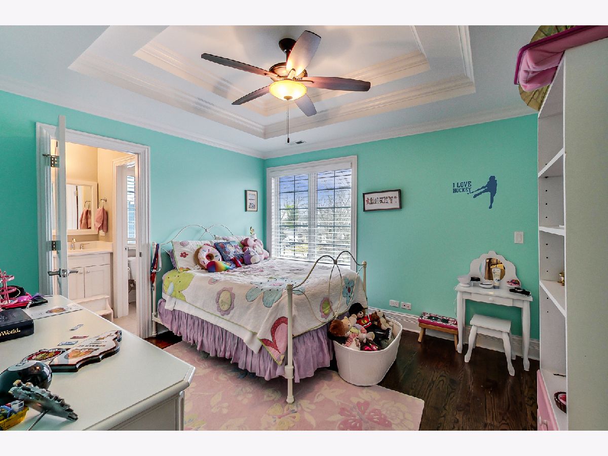 Prepare to be impressed by this timelessly elegant home. This 2014 new construction home has gorgeous millwork & trim and amazing attention to detail. Fantastic neighborhood full of newer construction homes. First floor boasts an open layout with sweeping staircase in the foyer, spacious family room with coffered ceilings and a corner fireplace, spacious kitchen with high end cabinetry and appliances, first floor office with full bath could also work as a bedroom. Master suite has gorgeous bathroom with his/her vanities, a spacious walk in shower with body sprays, rainshower and steam element. Ensuite bedroom plus two bedrooms that share a conjoined bathroom. Basement finished with high ceilings, a refrigerated wine cellar/tasting room, bedroom with a full bath, exercise room and massive recreation space. Backyard makes entertaining easy - brick paver patio with space for large dining table plus a firepit area, large play set plus playhouse included with the sale of the home. Homeowners are sad to leave this fun and social neighborhood. Close to town, parks, the train and highway access. Walden Elementary, Shepard Middle & Deerfield High - top rated schools. View the 3D Tour and Floorplans under Virtual Tour! Just move in!