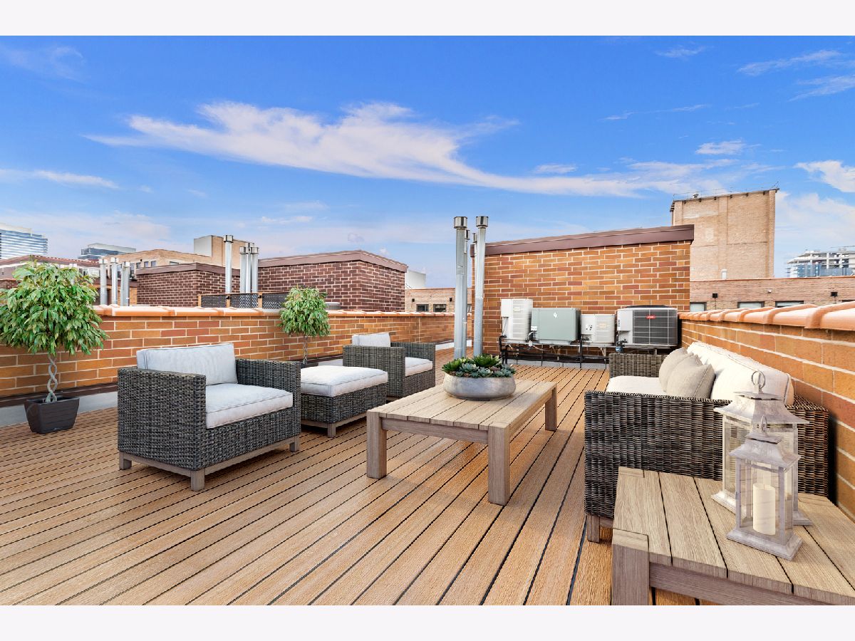 Click on Virtual Tour for video walkthrough. Welcome home to your almost 1,600SF Penthouse oasis in Chicago's flourishing West Loop that lives like a single family home. Rarely available, this elegant home is upgraded with superior craftsmanship and luxurious finishes. Nestled at the top of an intimate 4 condominium building, it is the most coveted 2 bed 2 bath residence with its sprawling rooftop deck overlooking quiet, tree-lined Monroe St as the piece de resistance. Enjoy being sun kissed while taking in the beautiful skyline views as you entertain with style and an abundance of space or simply enjoy some privacy and solitude. Wolf and GE Monogram High End Stainless Steel Appliances, Granite countertops and beautiful 42" Maple Cabinetry are featured in this chef's kitchen. High end details include gorgeous Crown Molding, Wainscoting and 6" baseboards. Walnut stained Hardwood Floors throughout. Gas Fireplace and private and secure bricked front balcony attached to Living Room. Lives like a Single Family Home! Primary Bedroom Ensuite features a Steam Shower with beautiful stone mosaic detail, oversized jetted tub, Grohe fixtures and Radiant Heated Floors! Garage Parking spot included in price! Steps away from the beautiful Mary Bartelme Park, SoHo, Nobu, Ace Hotels, Target, Mariano's, Whole Foods, the Morgan (Pink/Green) 'L' stop or the UIC Halsted (Blue) 'L' stop and West Loop's famous Restaurant Row on Randolph! Within Skinner Elementary School boundaries. Nothing to do here but move in!