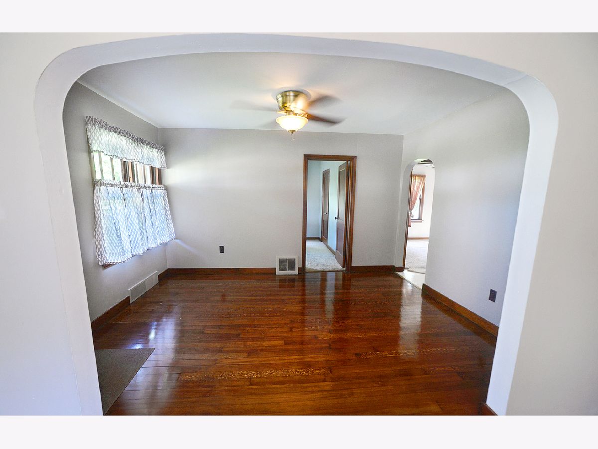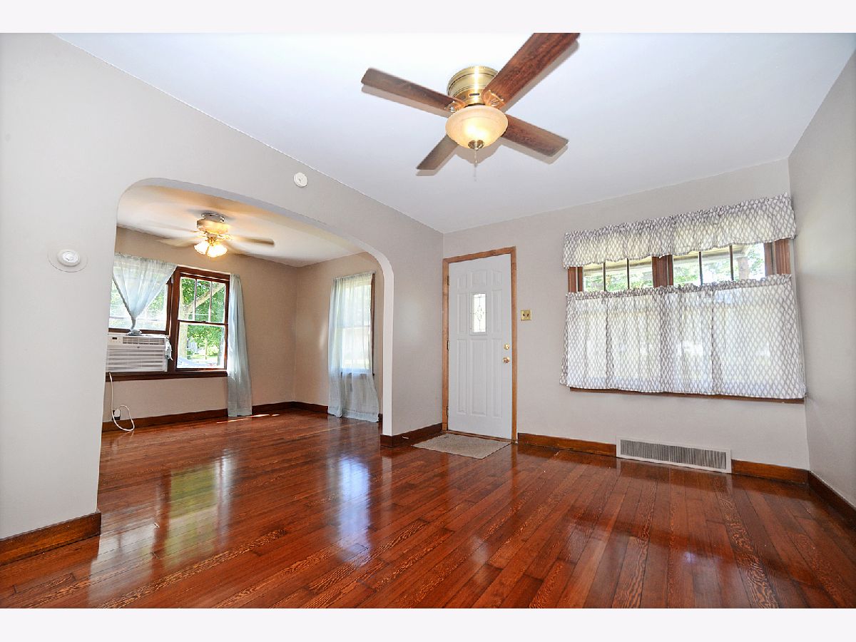 Recently updated 2 bedroom, one bathroom, one story home. Features include a large living room with original, refinished hardwood floors, dining room, eat-in kitchen with white wood cabinets and include appliances. Two main floor bedrooms with closets. Full basement with laundry. Two window AC units are included and ample for cooling. Covered front porch and 1-car detached garage.