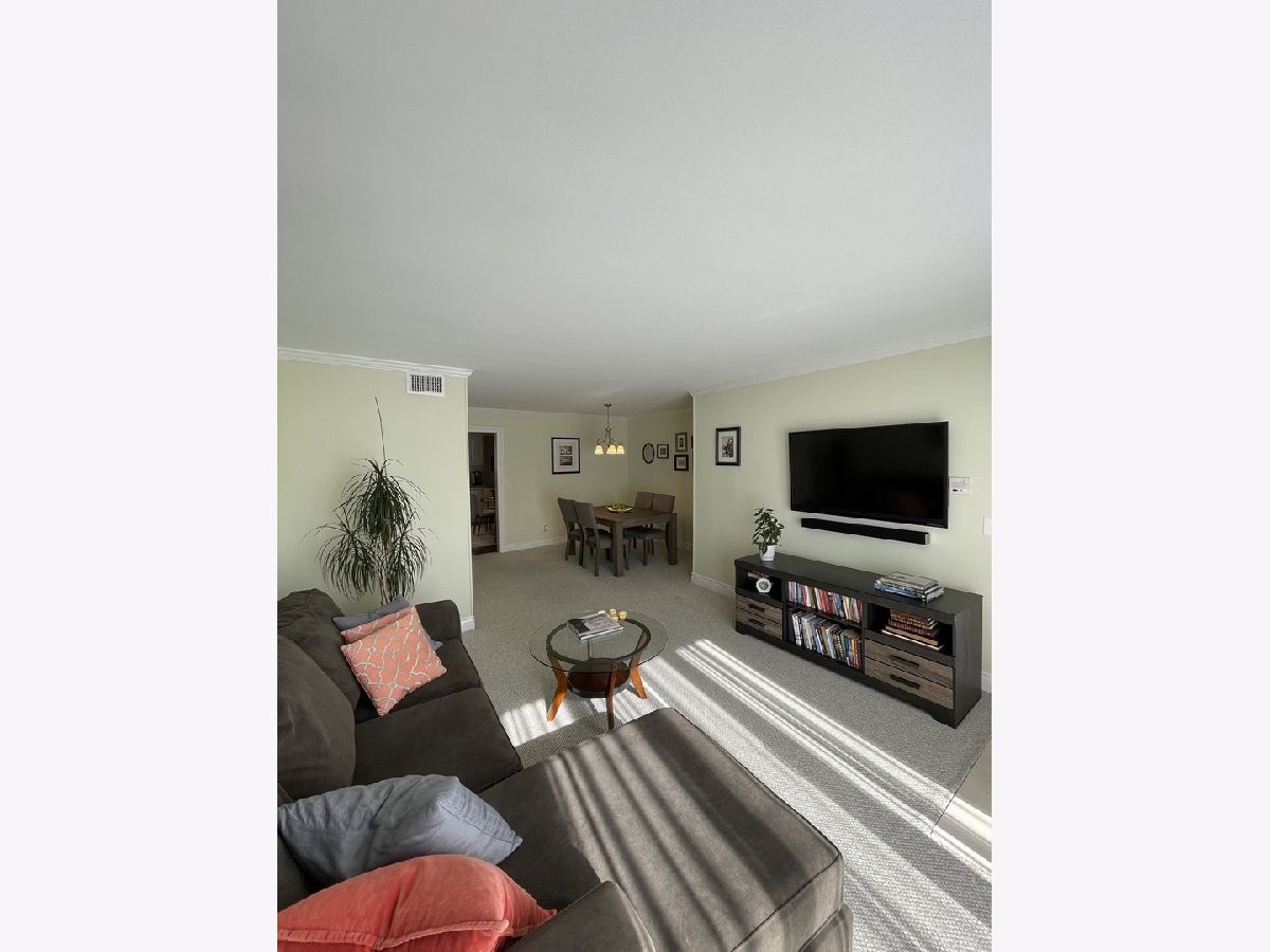 **Steepleview Gem: Spacious Top-Floor End Unit**Welcome to this stunning top-floor end unit in the highly sought-after Steepleview community. As you step inside, you'll immediately feel at home. Let's explore the features:**Light-Filled Living Space**Recessed lighting creates a warm and inviting ambiance. The ceramic tile entry sets the tone for elegance and durability.**Entertainer's Dream**: The spacious living room, wired for speakers, opens up to a private balcony-a perfect spot for relaxation with an awning that shades the interior if desired. Nice wooden molding and trim throughout provide craftsmanship and elegance. The formal dining room seamlessly connects to the oversized kitchen with a dinette area or a breakfast table nook. The kitchen boasts Pergo flooring, all appliances, and ample cabinet space.**Luxurious Main Bath**: The ceramic and marble baths have been tastefully updated, adding a touch of sophistication. The lovely master suite features a ceiling fan, a convenient half bath, and dual closets with organizers. The second bedroom also provides great amount of natural light, large closet, ceiling fan- calming nice breeze.**Thoughtful Details**: Crown molding, wide custom trim, and baseboards enhance the overall aesthetic. Laundry facilities and extra storage are available in the basement. Central air ensures comfort year-round. **Maintenance and Upgrades**Newer windows, furnace, water heater, and A/C provide peace of mind. The secure building adds an extra layer of security. **Prime Location**: Conveniently situated near trains, shopping centers, schools, dining options, and parks. **AWARD-WINNING Stevenson High School District**-a great perk for families. Own parking space right in front and ample visitor parking nearby. This property truly stands out as a one-of-a-kind gem. Don't miss the opportunity to make it your own!